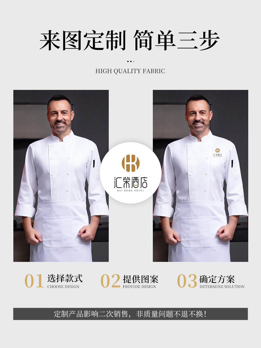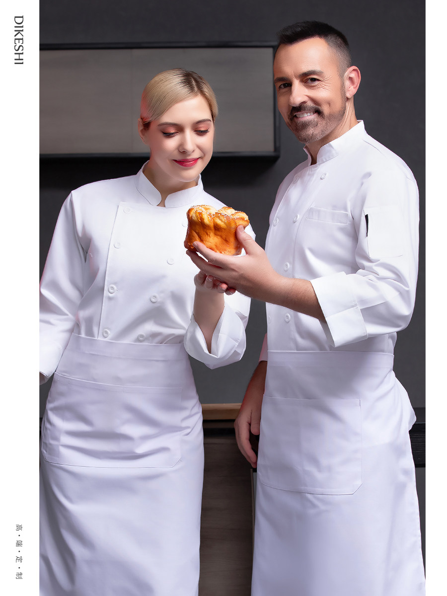 高端厨师工作服男白色长袖酒店西餐厅烘焙餐饮女厨房衣服套装定制