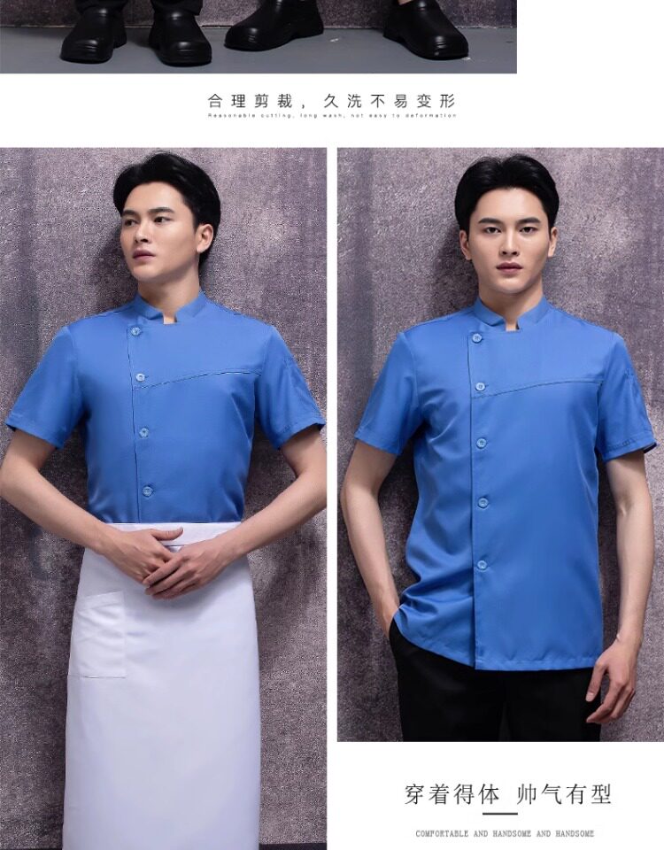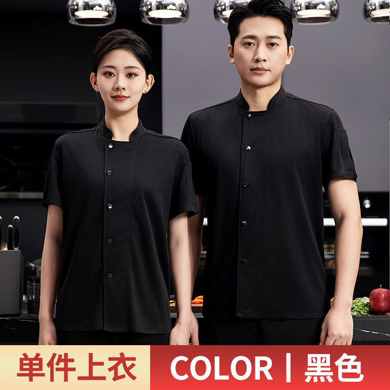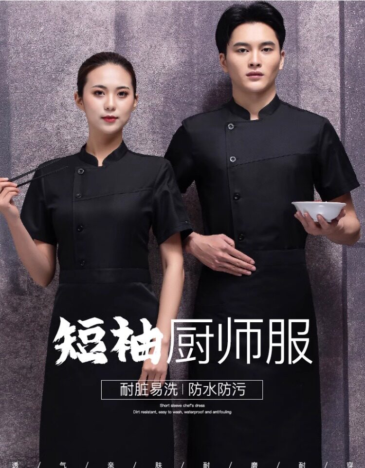 夏季厨师工作服短袖餐饮专用酒店早餐饭店后厨房薄款透气速干工装