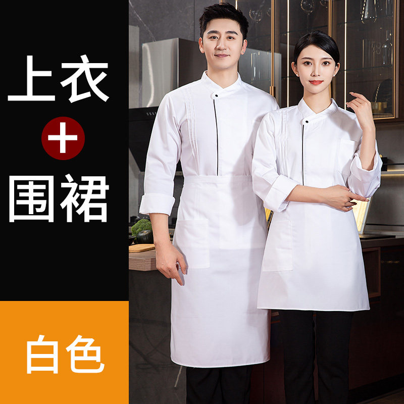 高端厨师工作服男白色长袖酒店西餐厅烘焙餐饮女厨房衣服套装定制