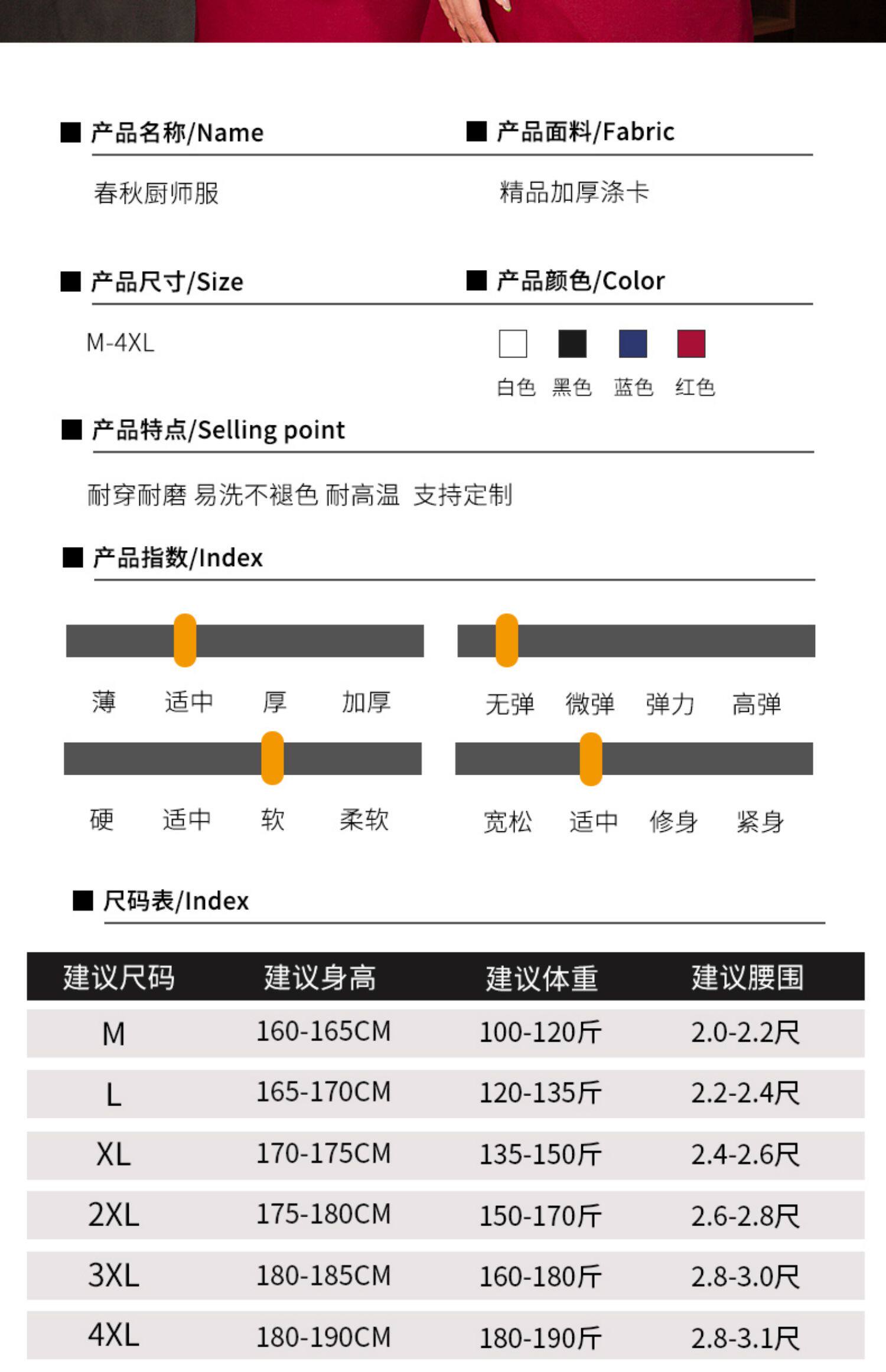 防水厨师工作服厨房餐饮后厨餐厅食堂糕点师工衣服装男长袖秋冬季