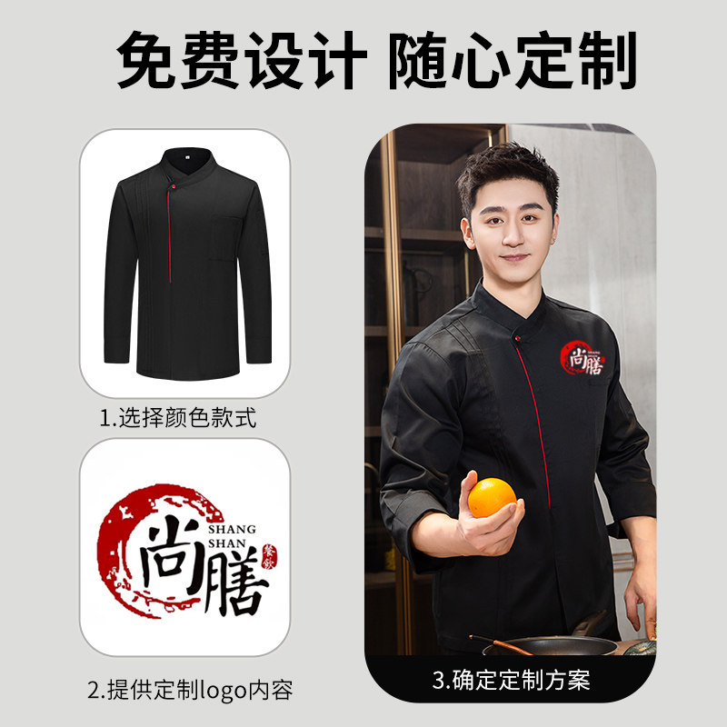 厨师工作服长袖秋冬男餐饮酒店餐厅烧烤火锅店饭店后厨房定制中式