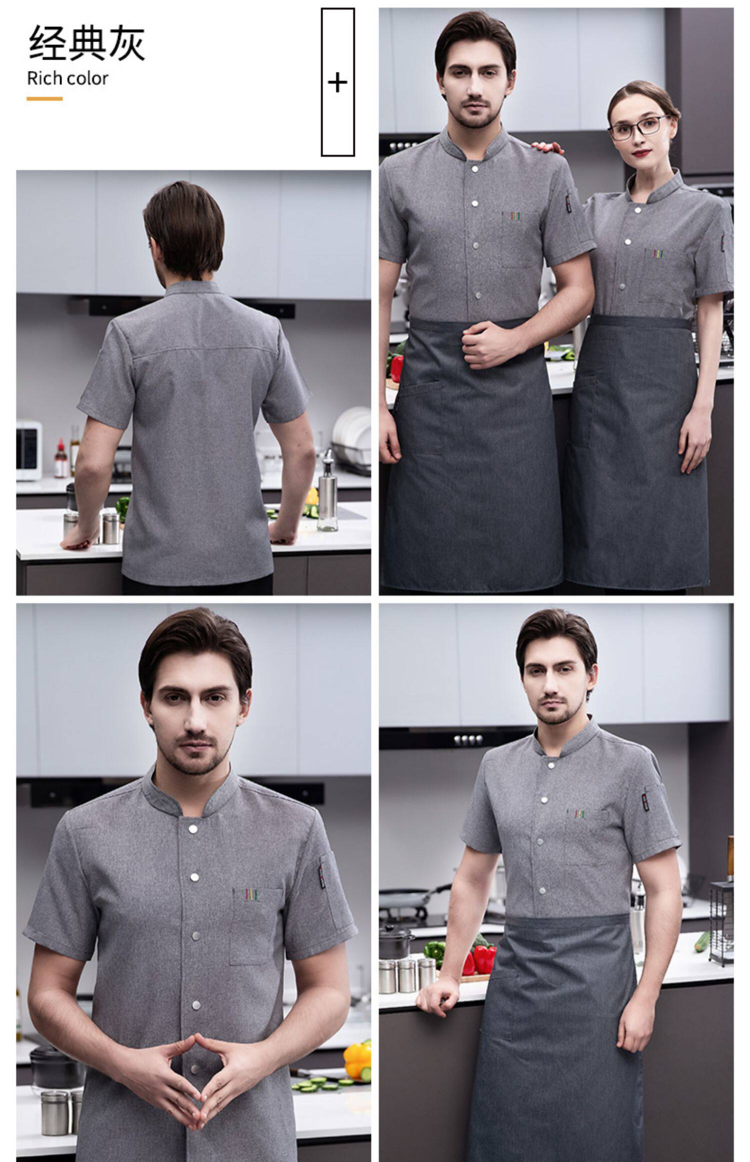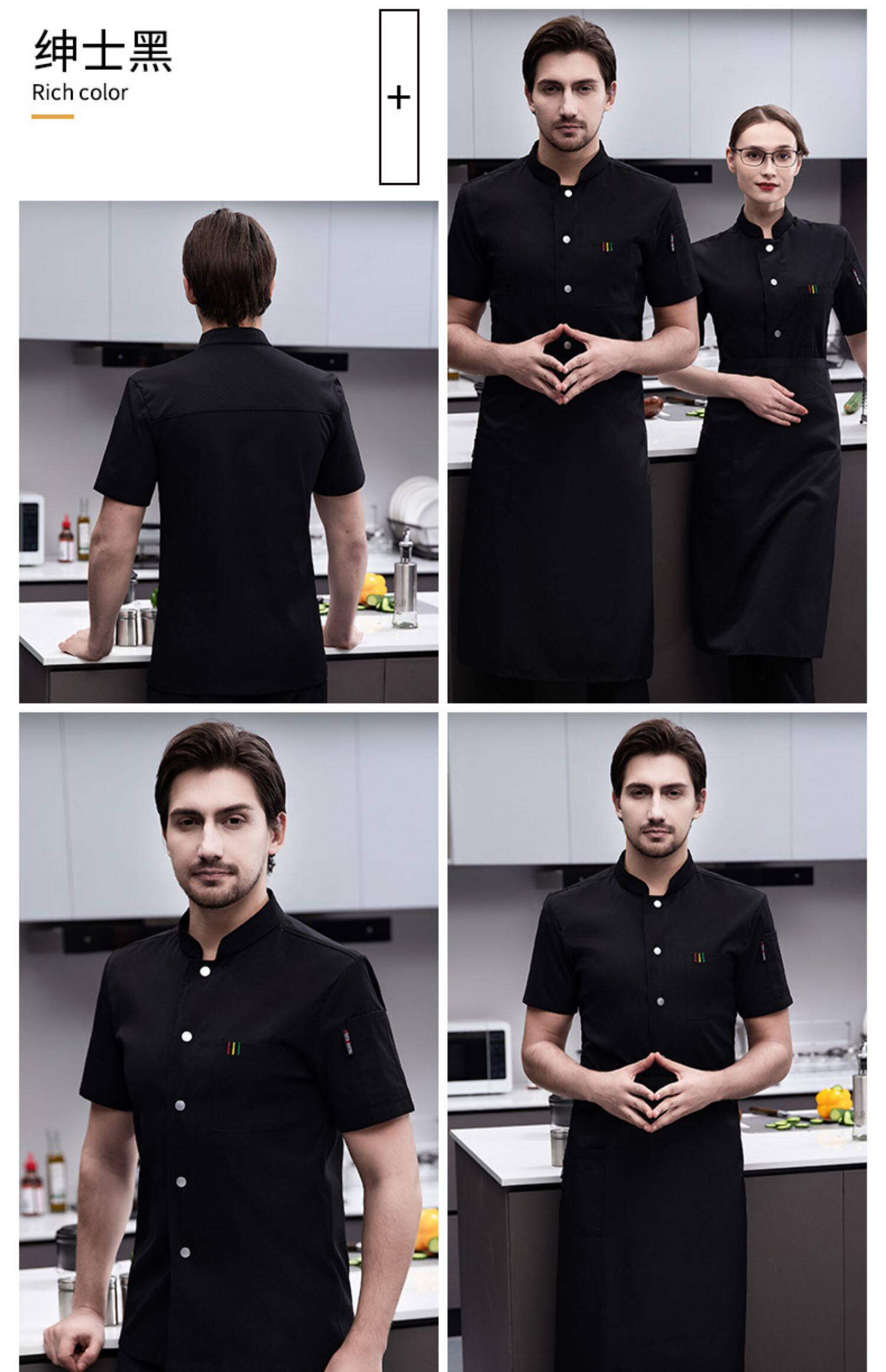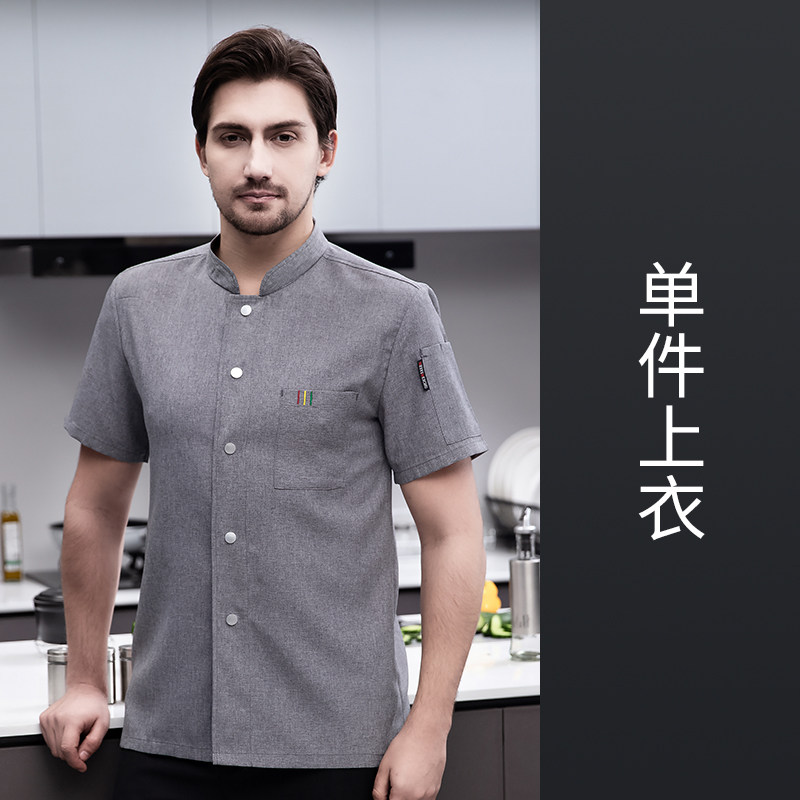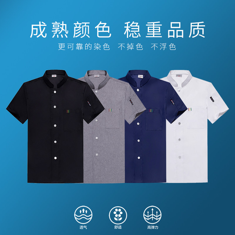 厨师工作服弹力短袖夏季男酒店餐厅火锅烧烤饭店中式透气定制工衣