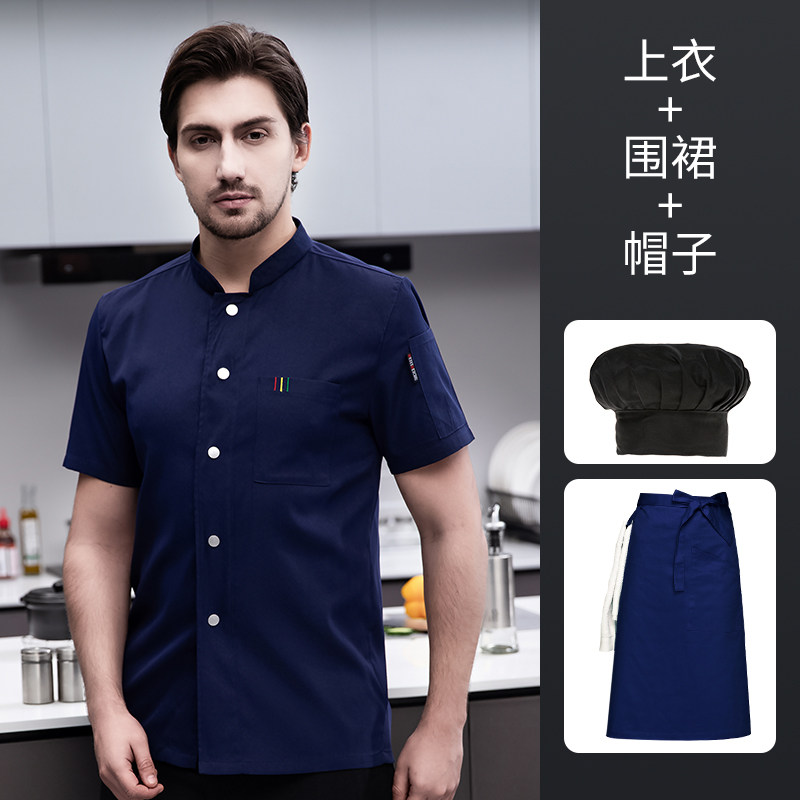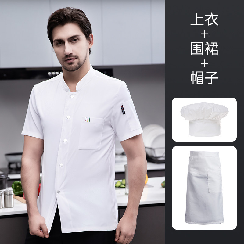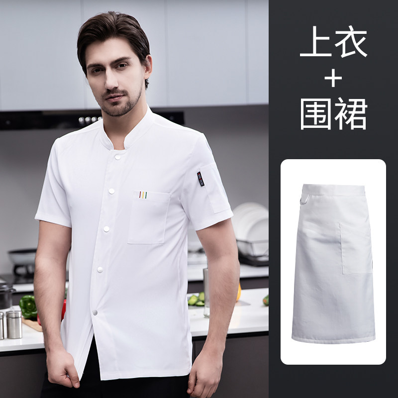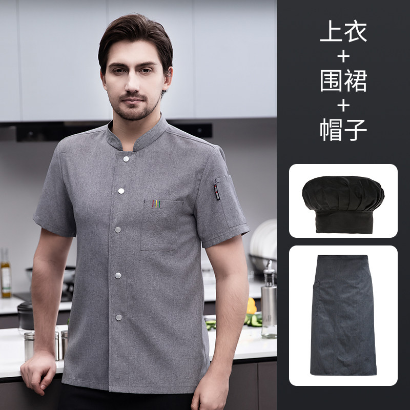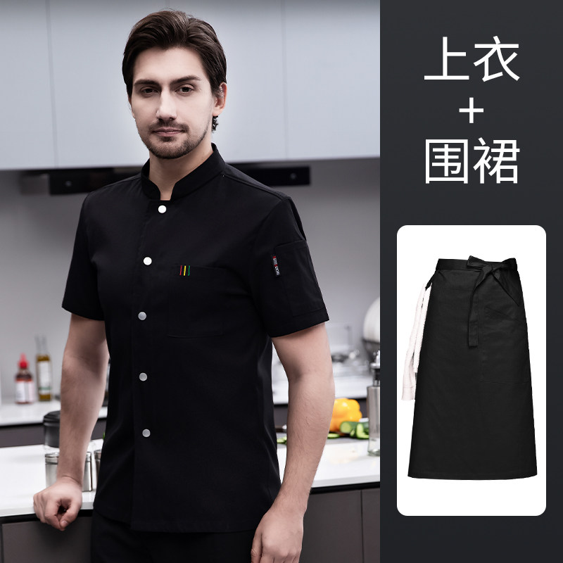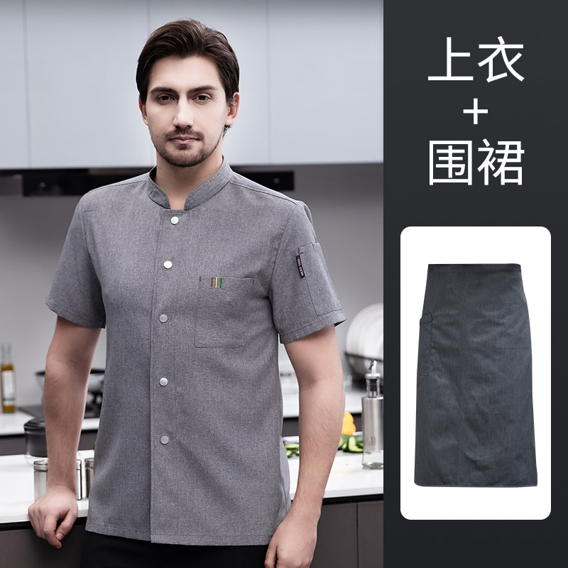 厨师工作服弹力短袖夏季男酒店餐厅火锅烧烤饭店中式透气定制工衣