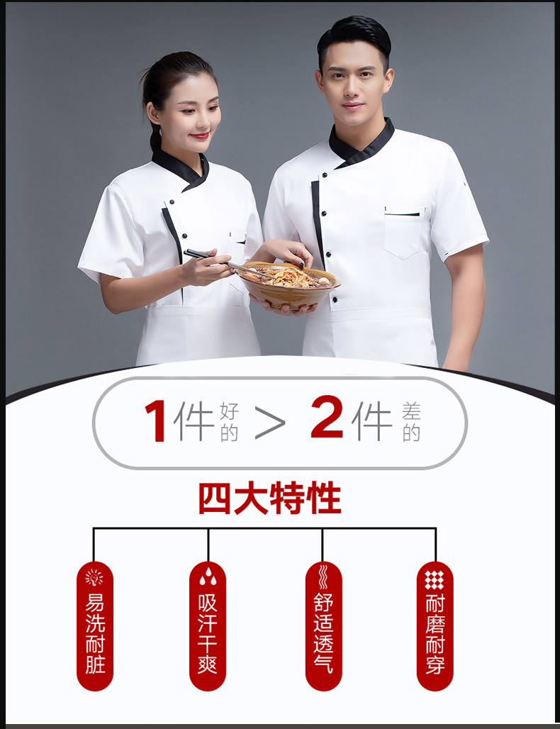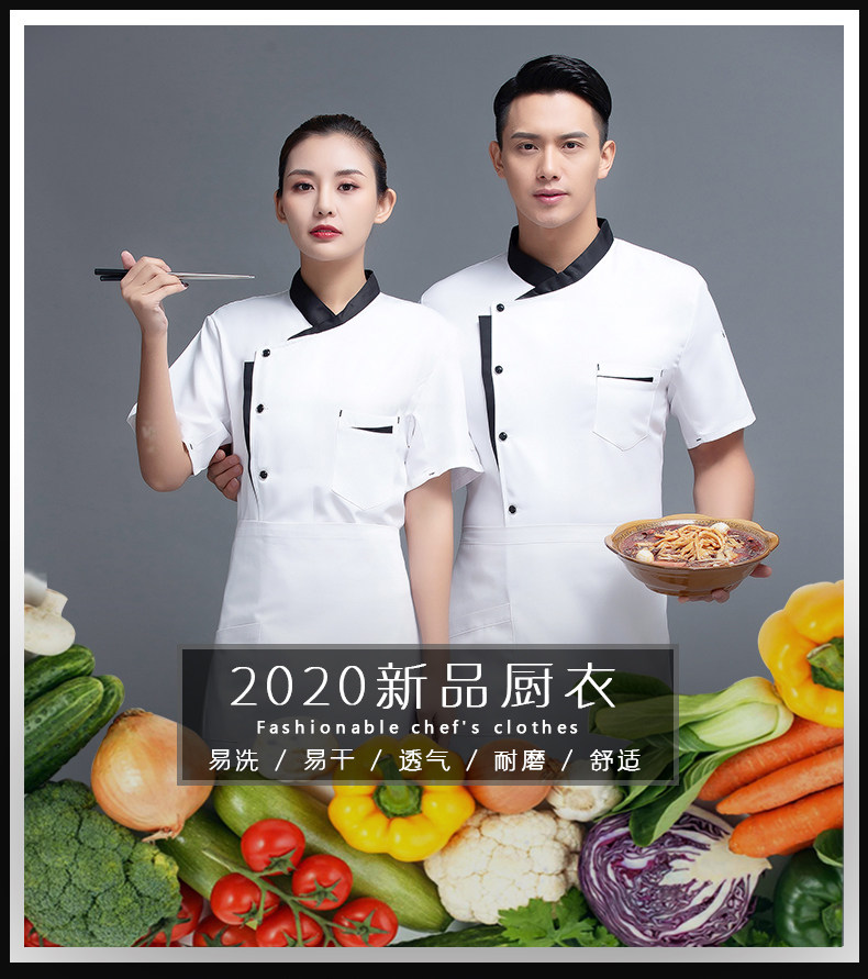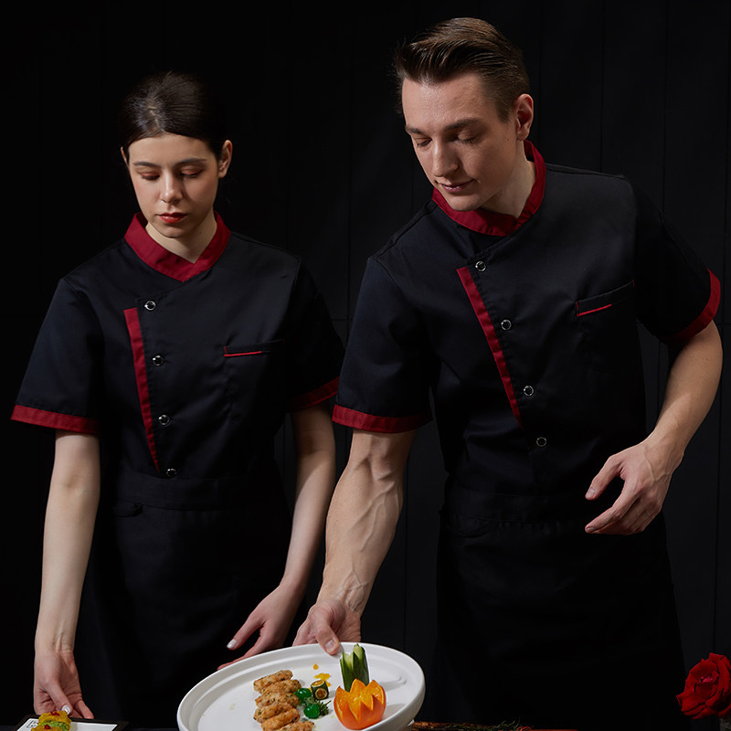 高端厨师工作服短袖透气工装男夏季餐饮酒店早点西餐厅后厨房厨衣