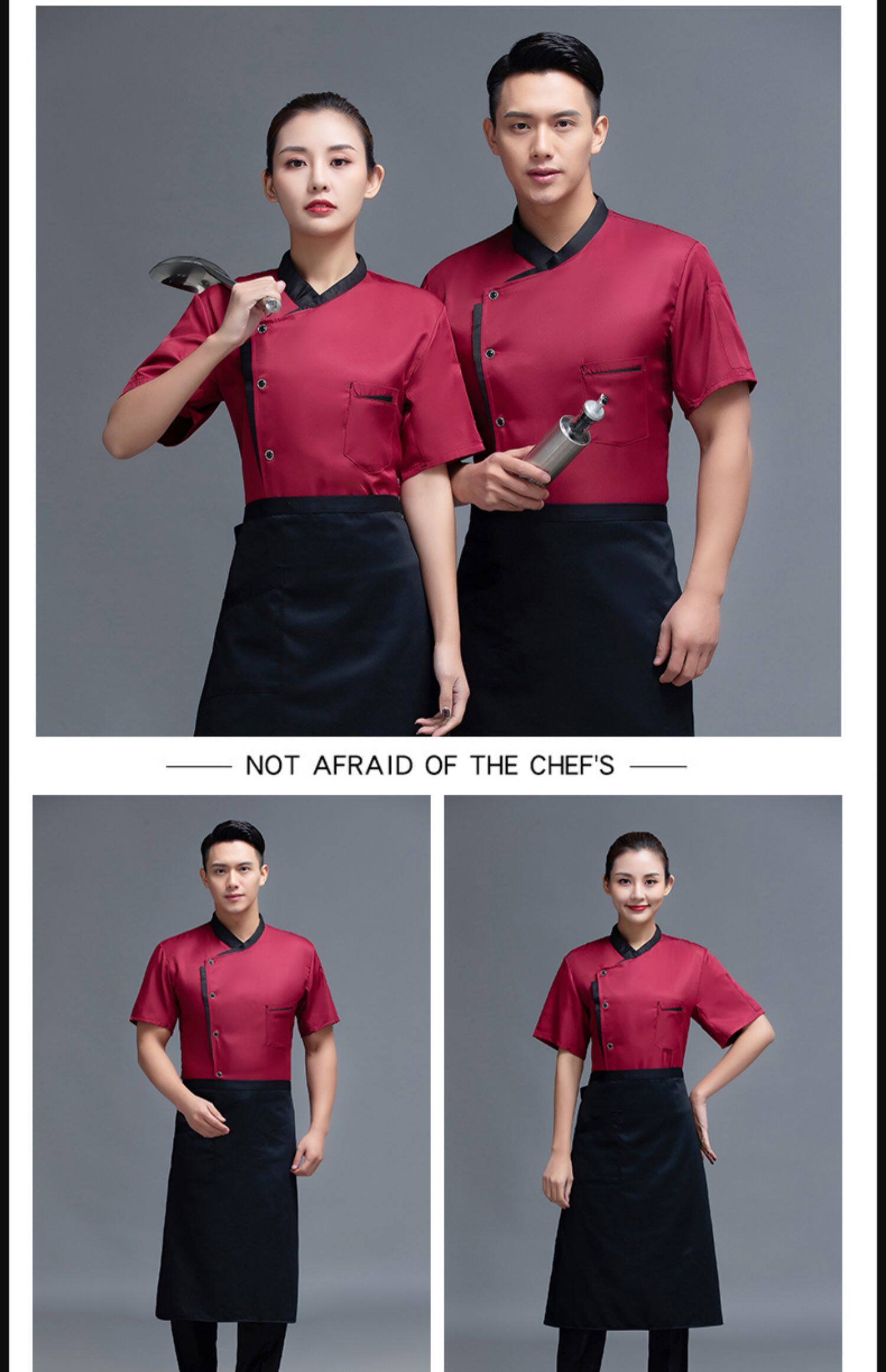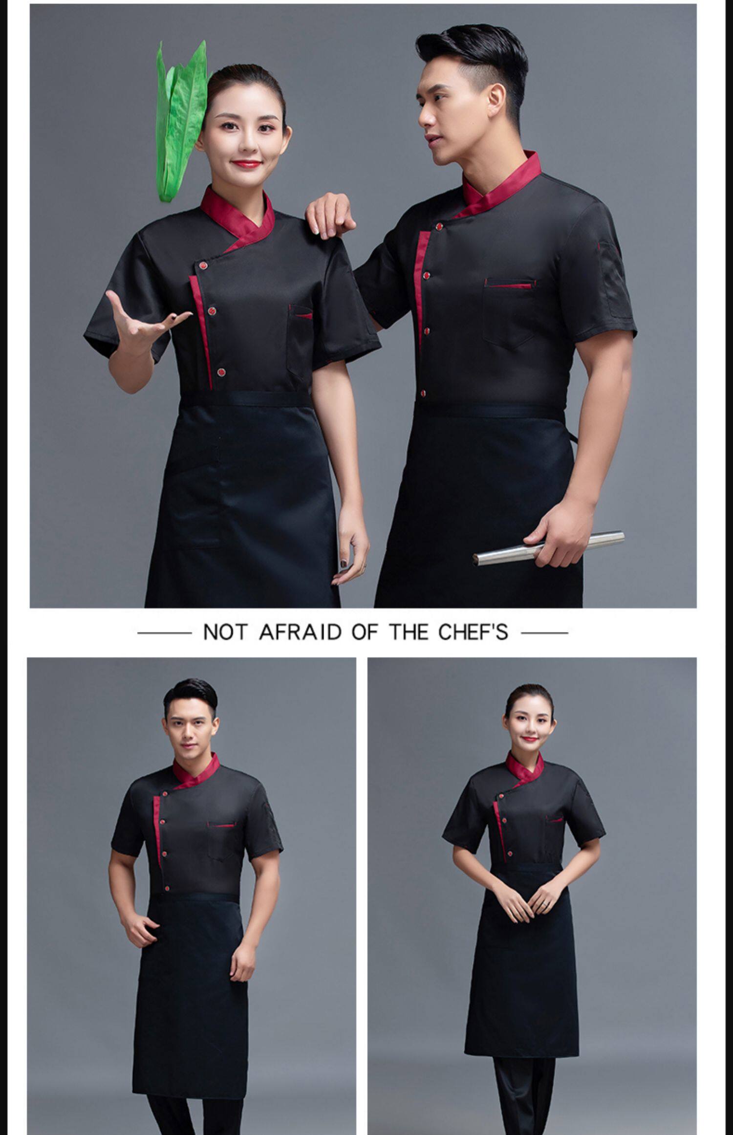 夏季餐饮厨师服短袖薄款透气餐厅酒店饭店厨房食堂后厨工作服定制