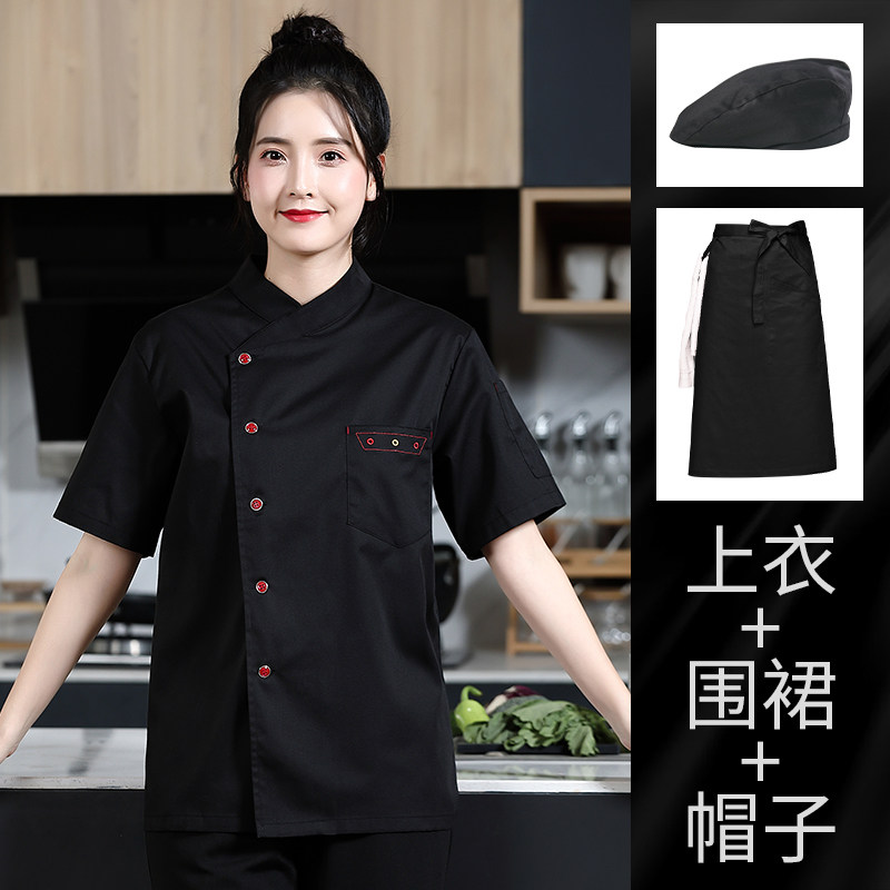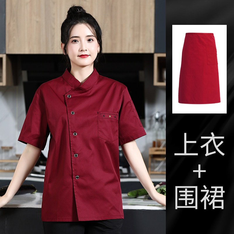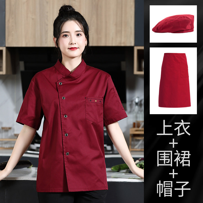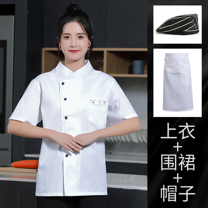 高级厨师工作服短袖女夏季西餐厅幼儿园厨房服装烘培店面点师衣服