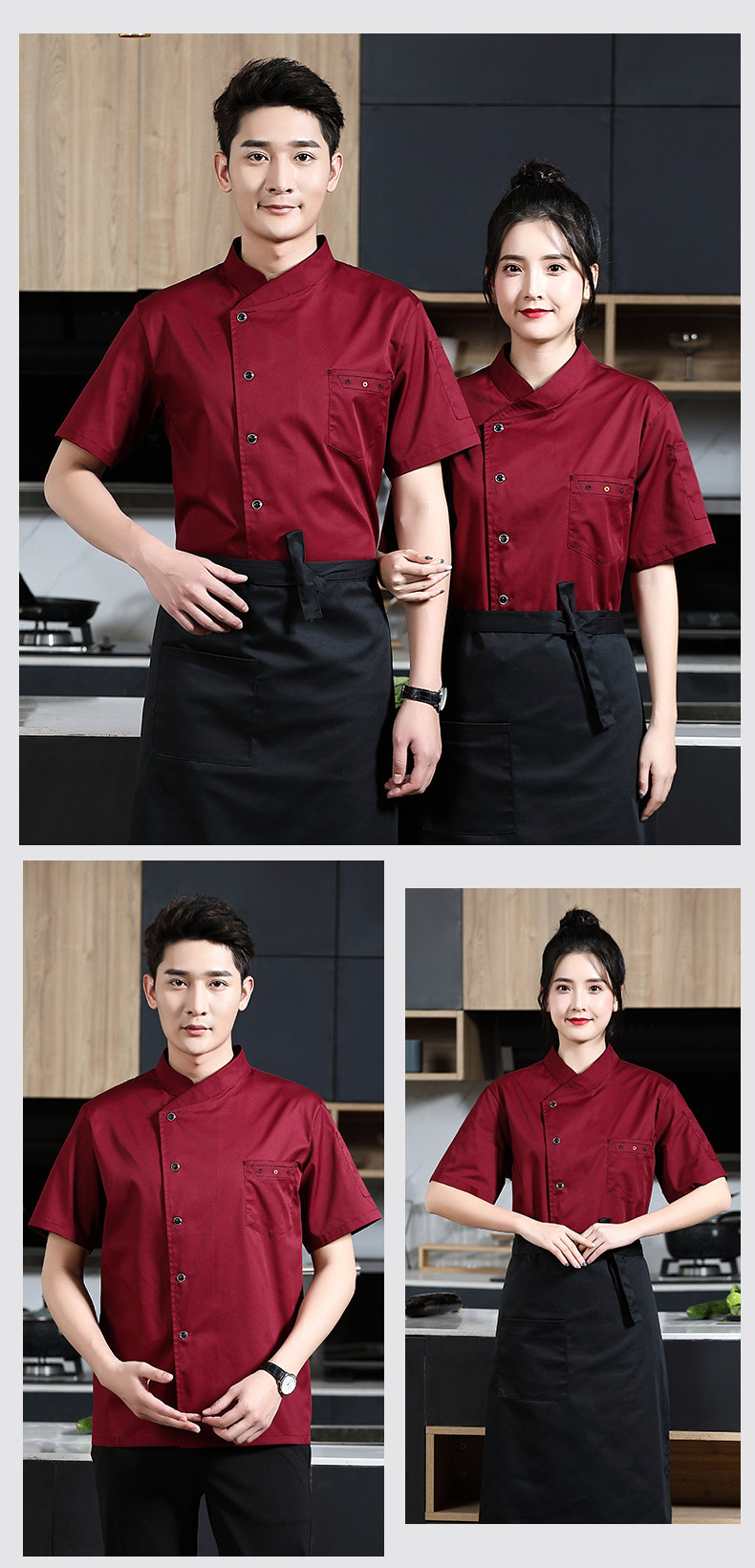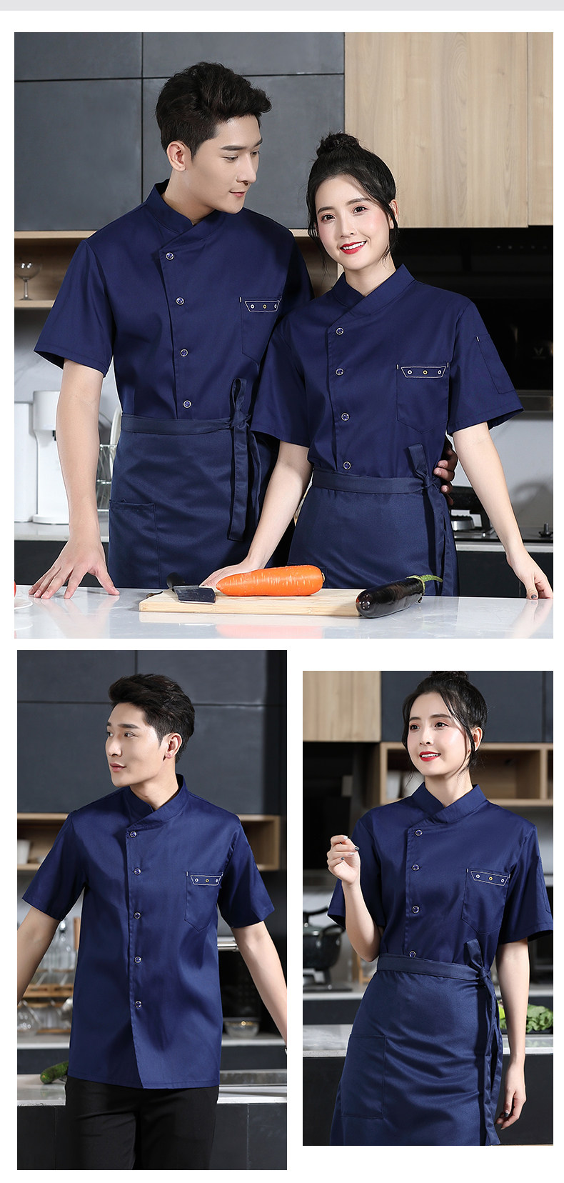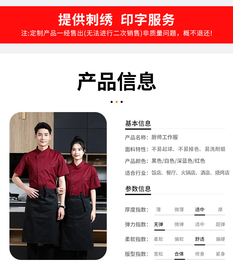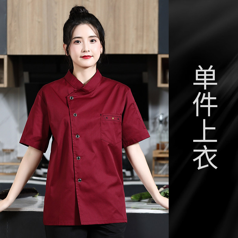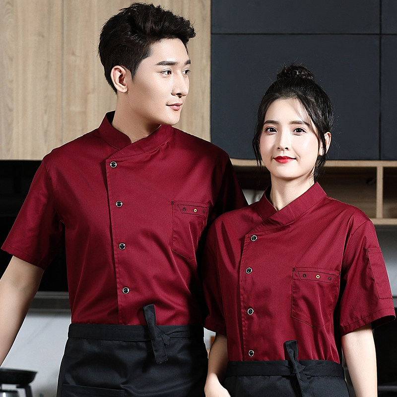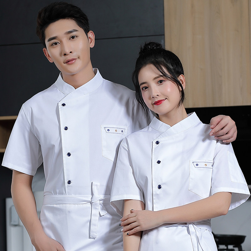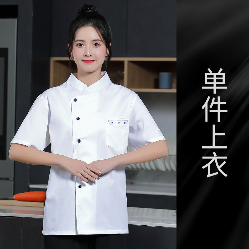 夏季餐饮厨师服短袖薄款透气餐厅酒店饭店厨房食堂后厨工作服定制
