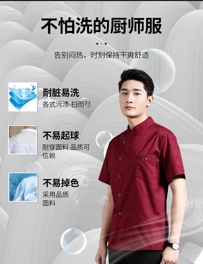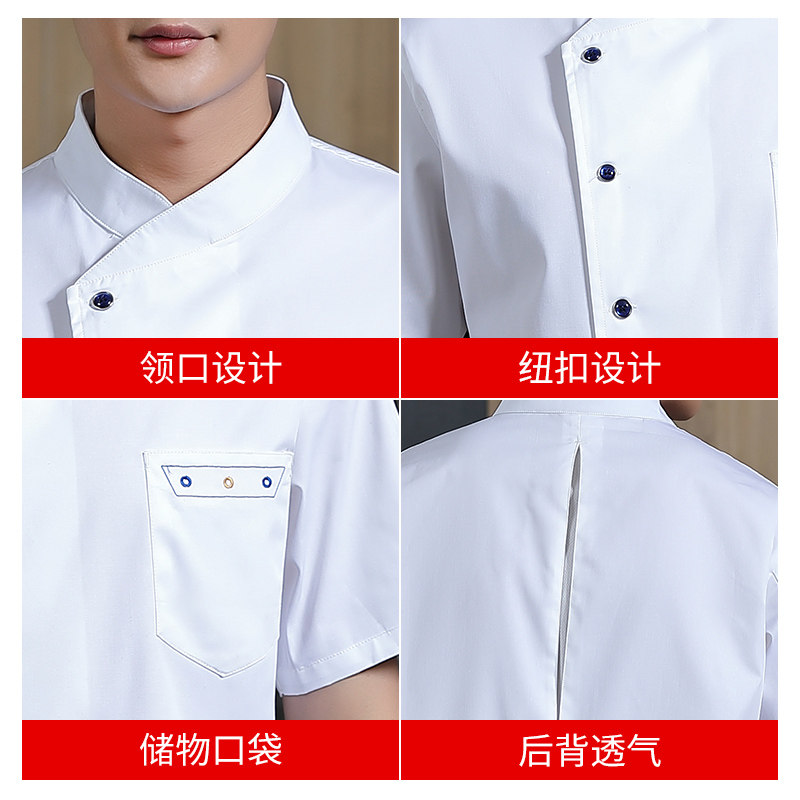 高端厨师工作服短袖透气工装男夏季餐饮酒店早点西餐厅后厨房厨衣
