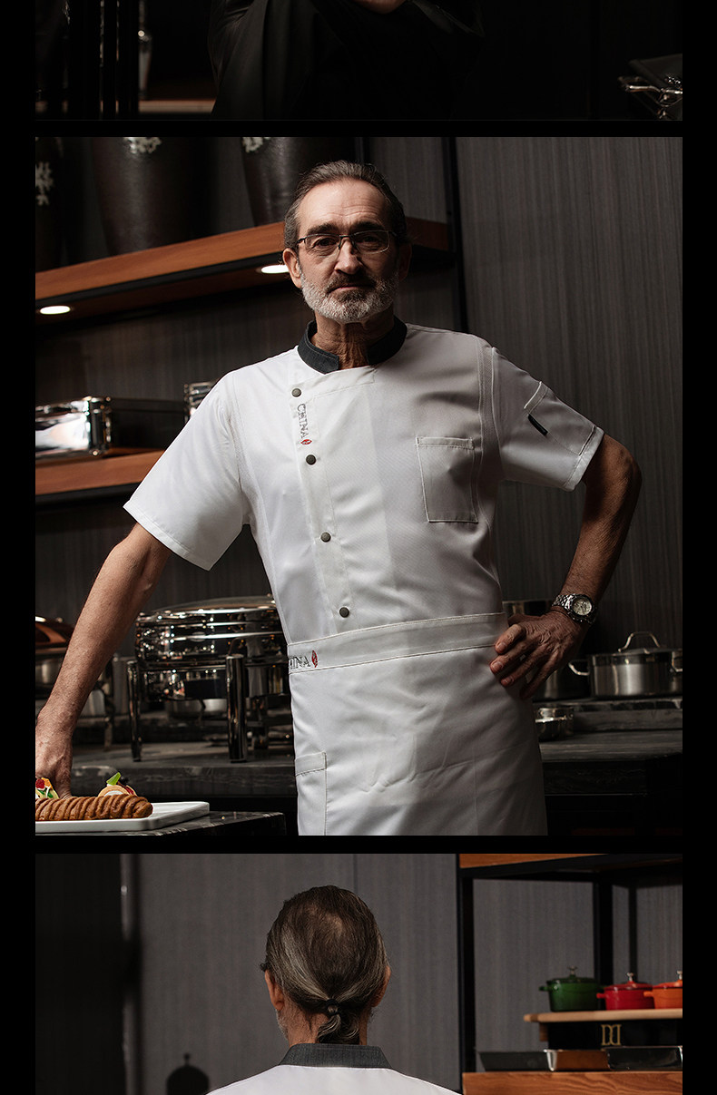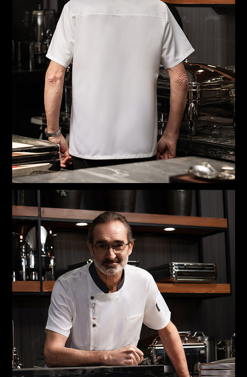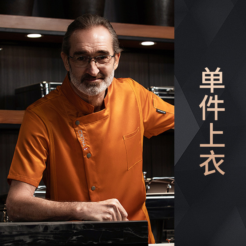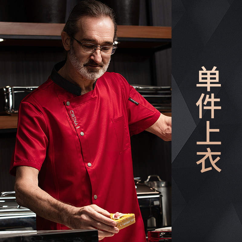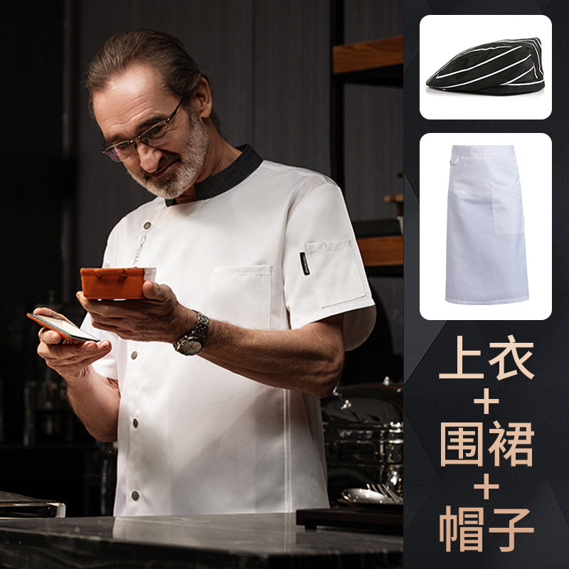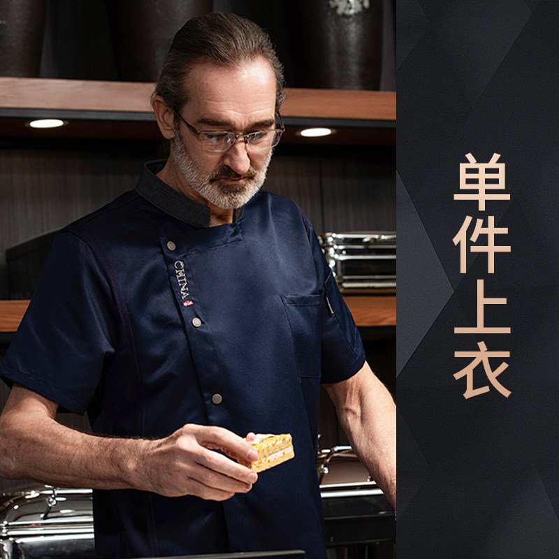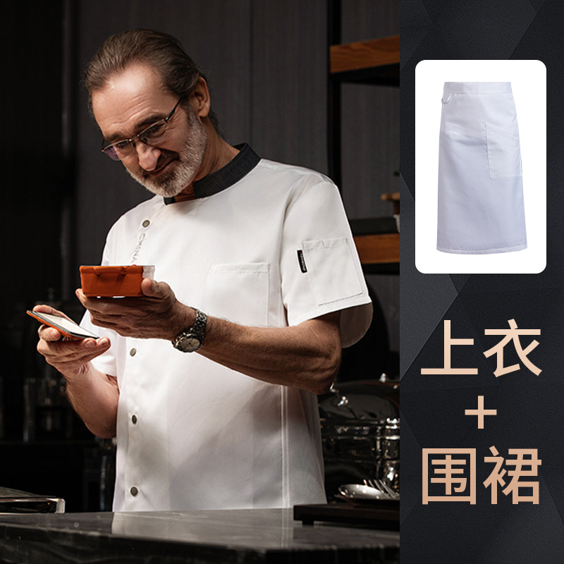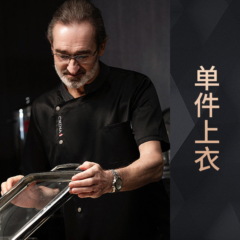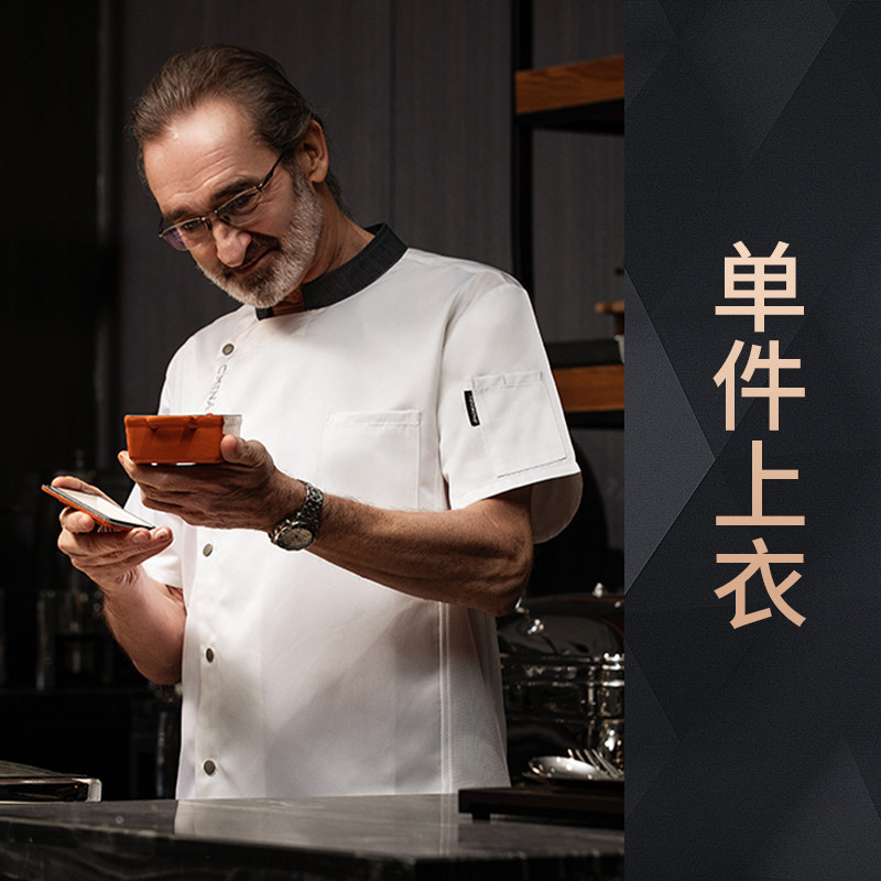 高端厨师工作服短袖透气工装男夏季餐饮酒店早点西餐厅后厨房厨衣