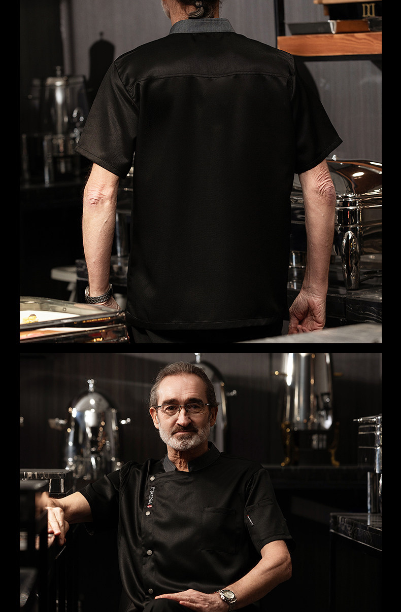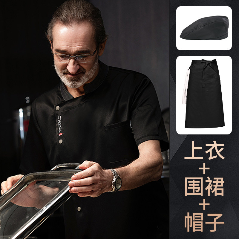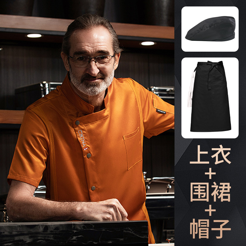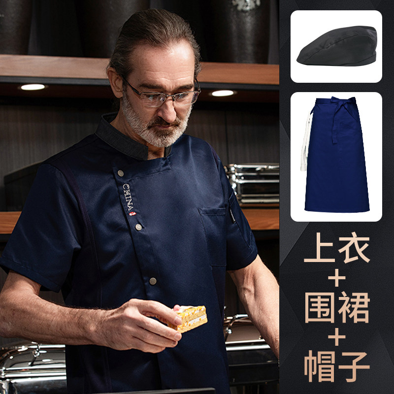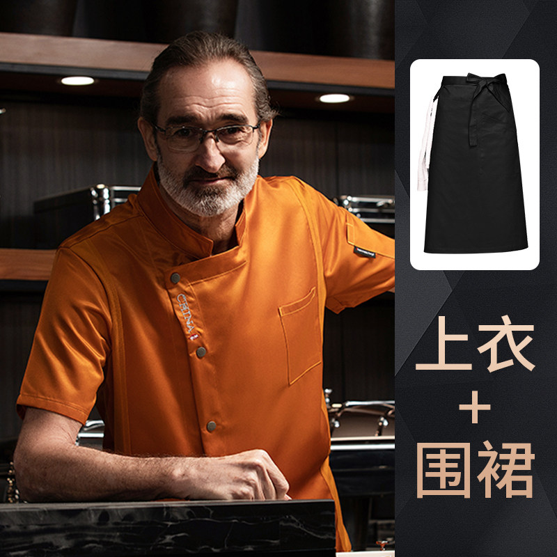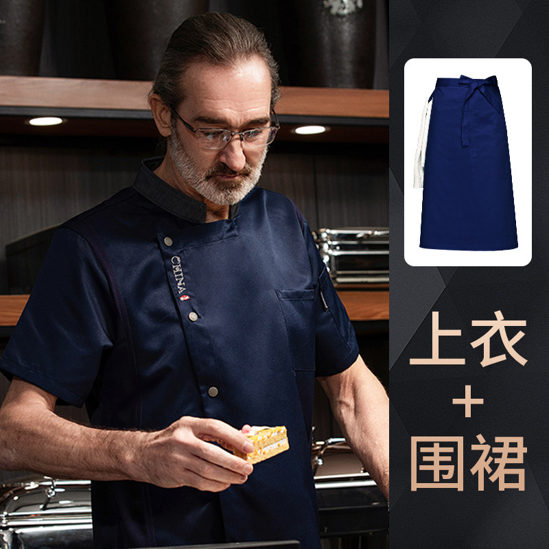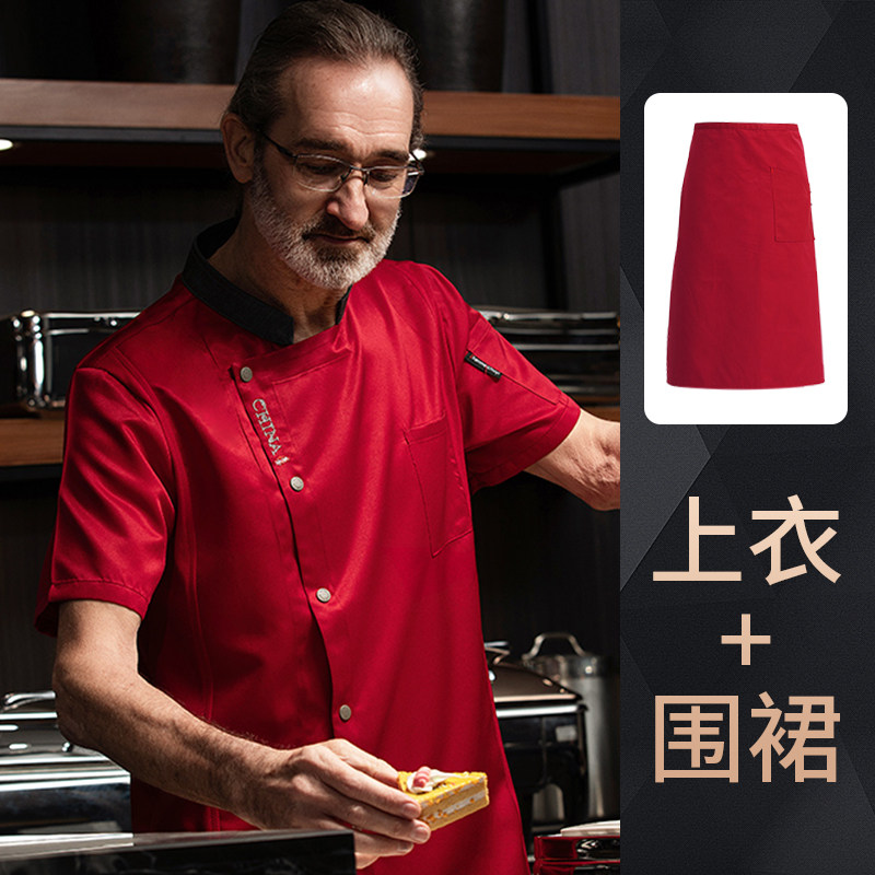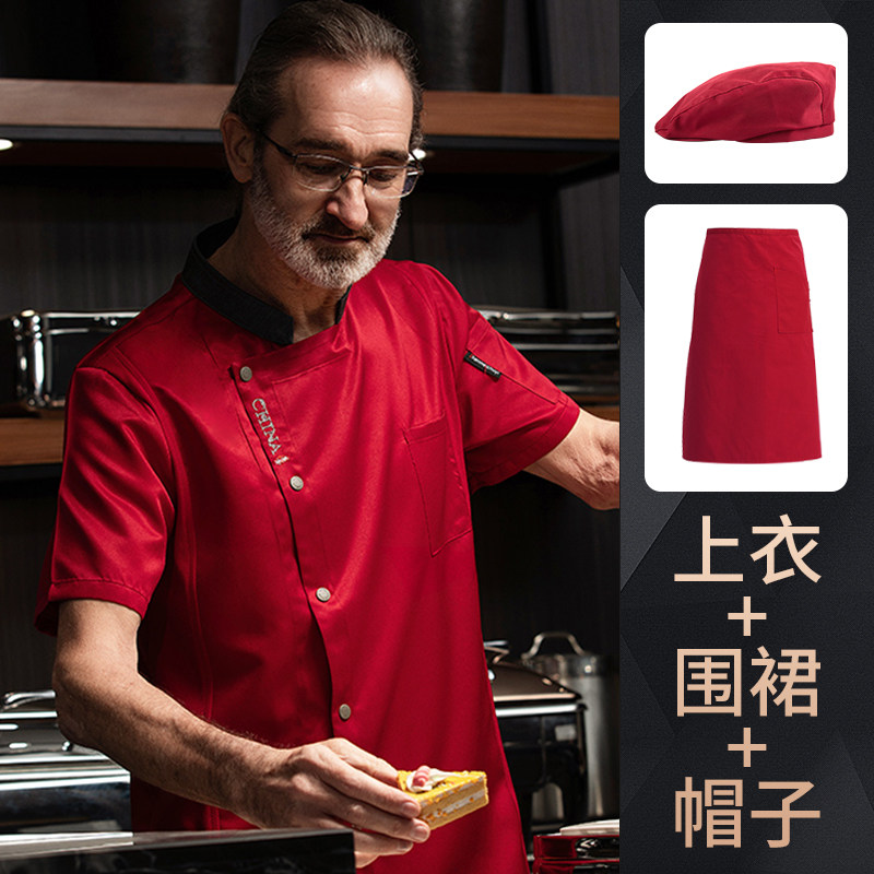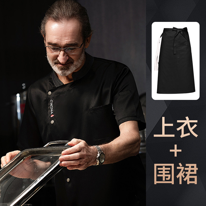 高端厨师工作服短袖透气工装男夏季餐饮酒店早点西餐厅后厨房厨衣