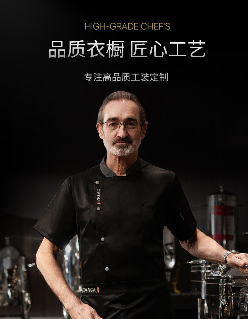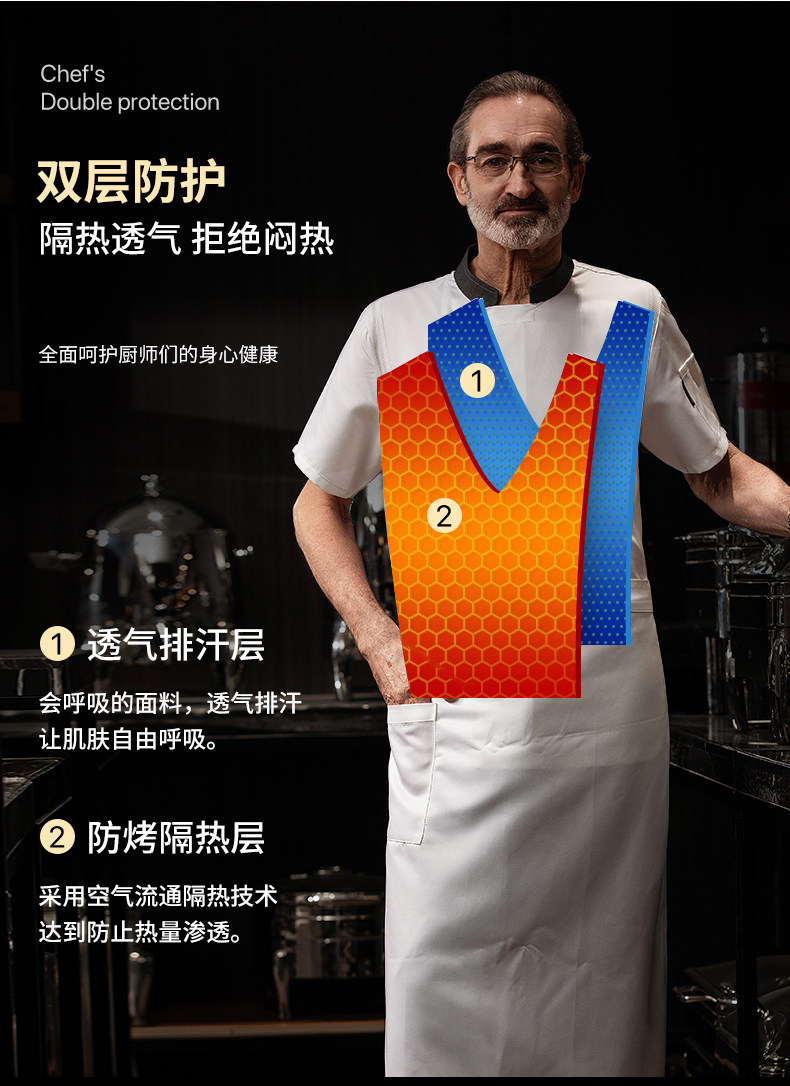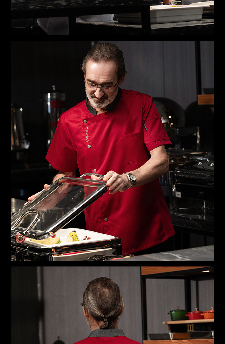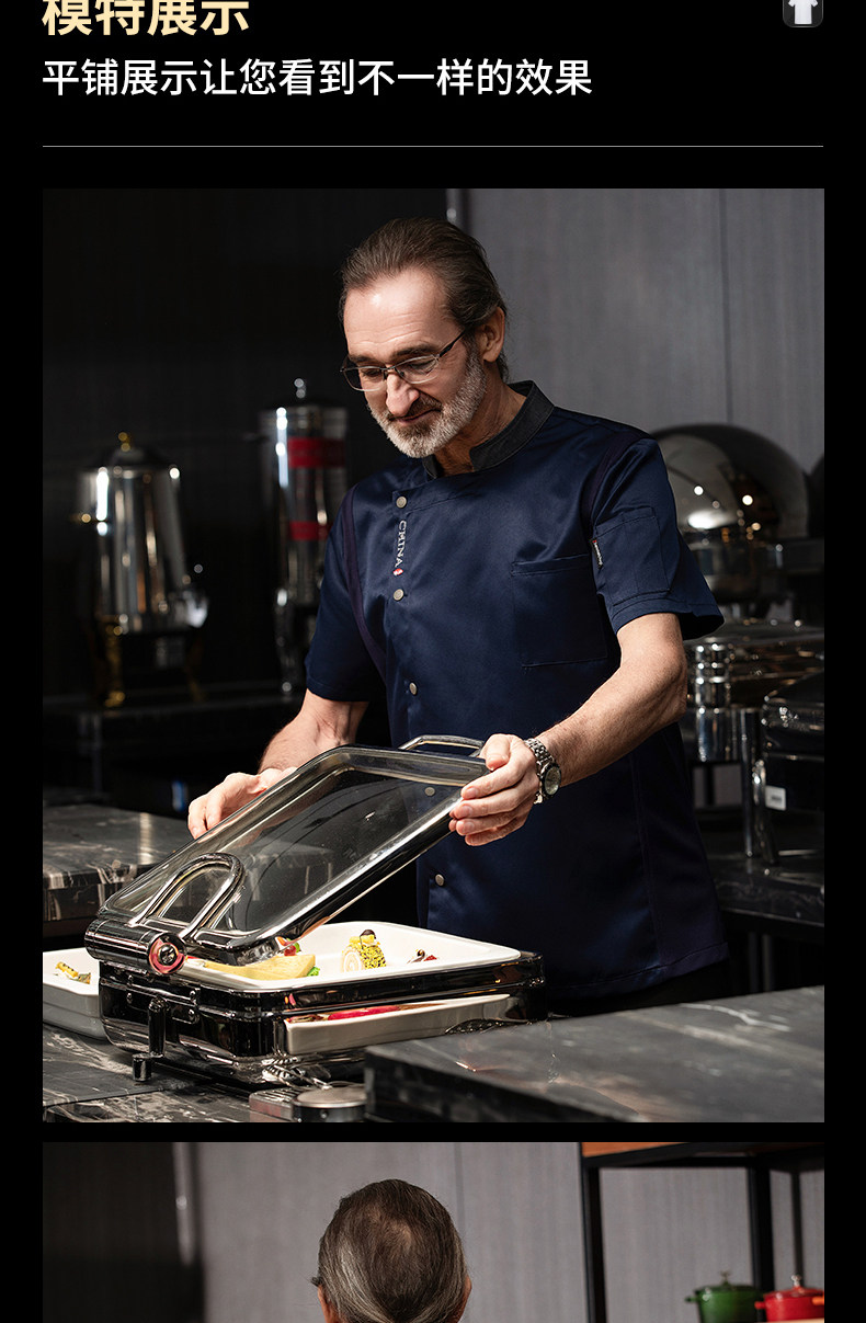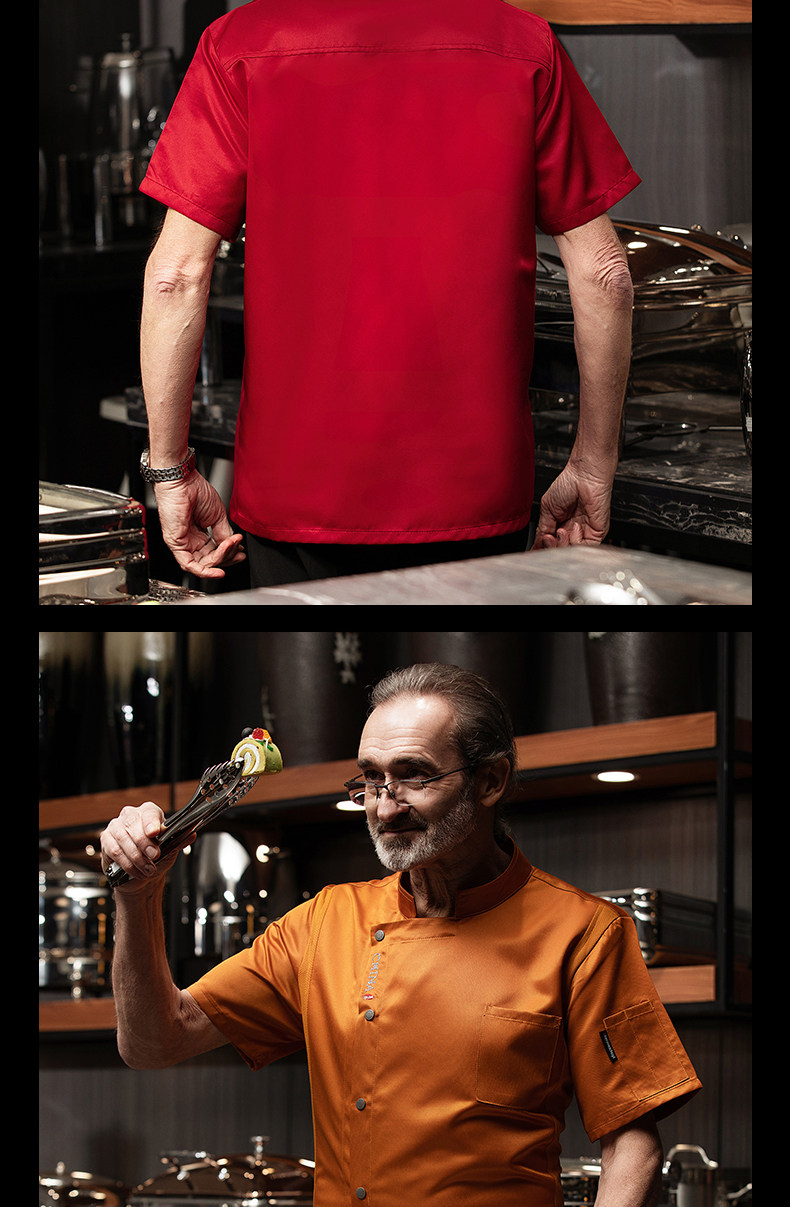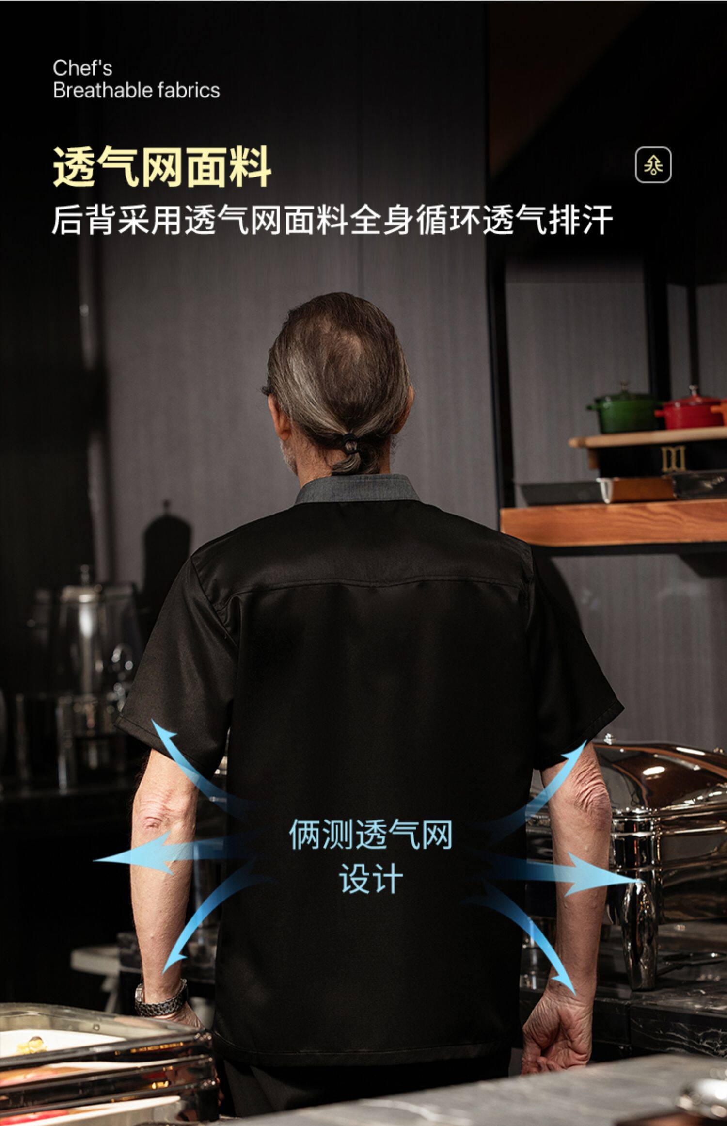 高端厨师工作服短袖透气工装男夏季餐饮酒店早点西餐厅后厨房厨衣