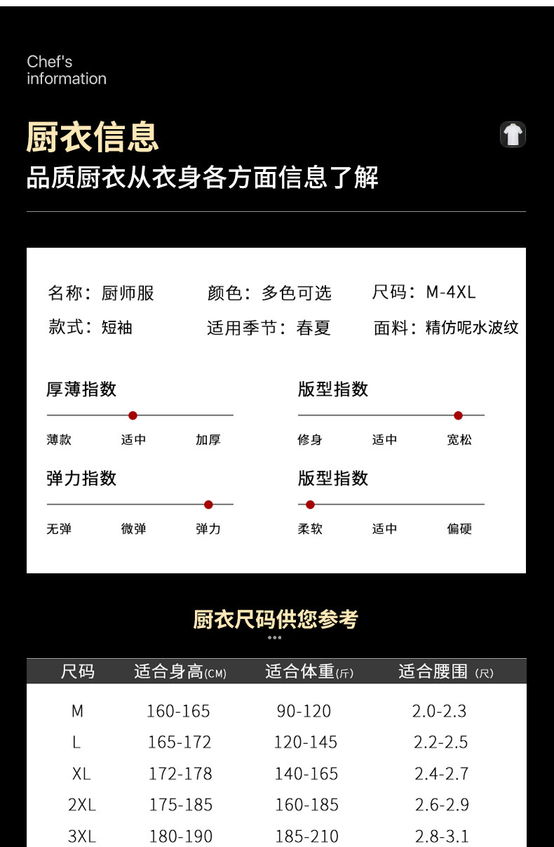 特大加大码厨师工作服定制酒店饭店食堂厨房衣服短袖餐饮胖子套装