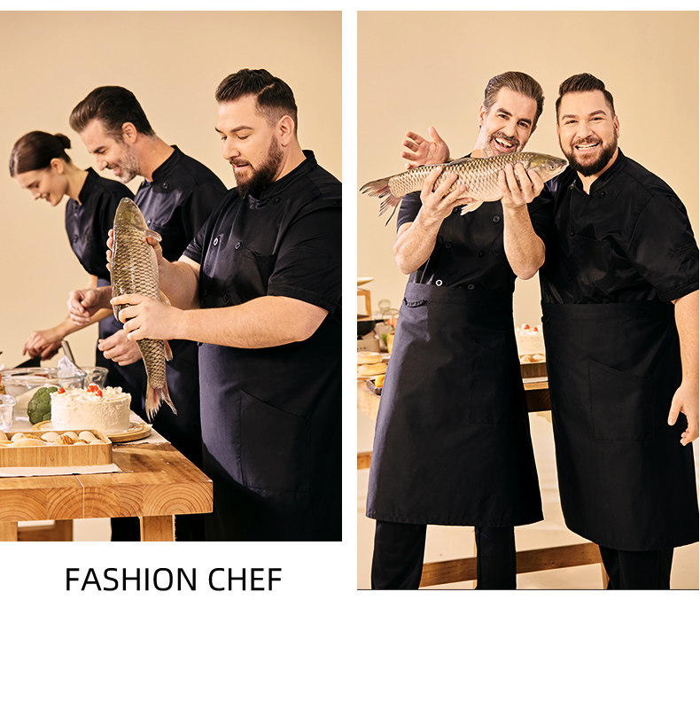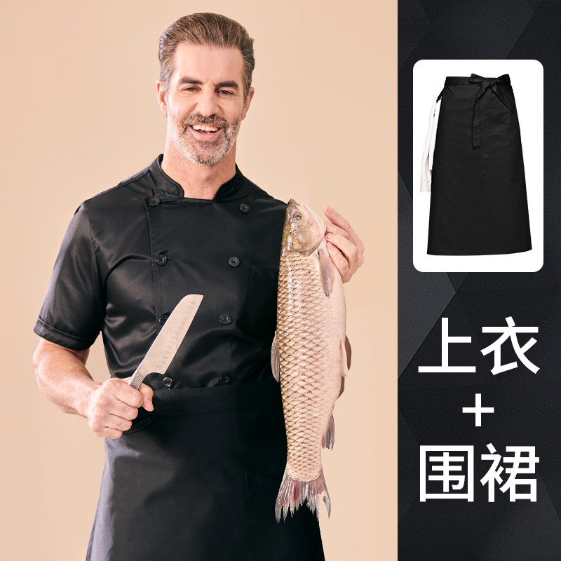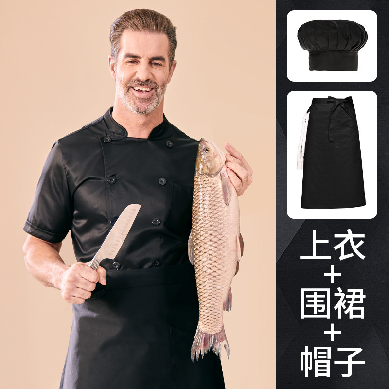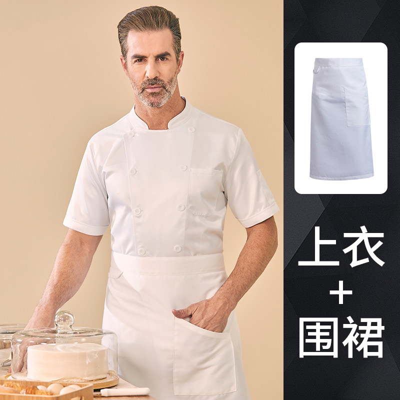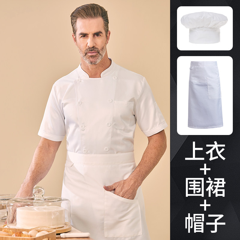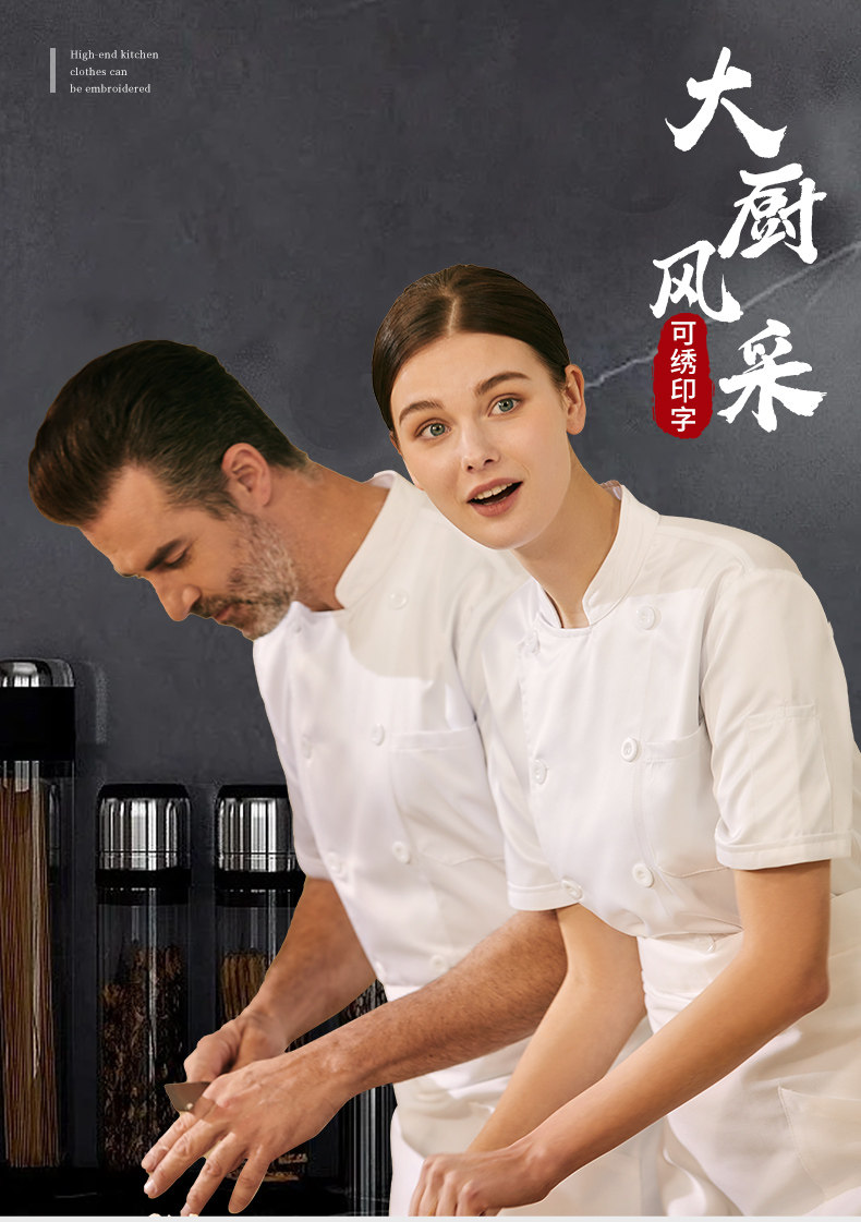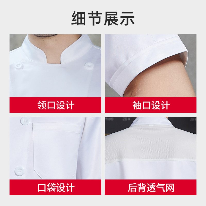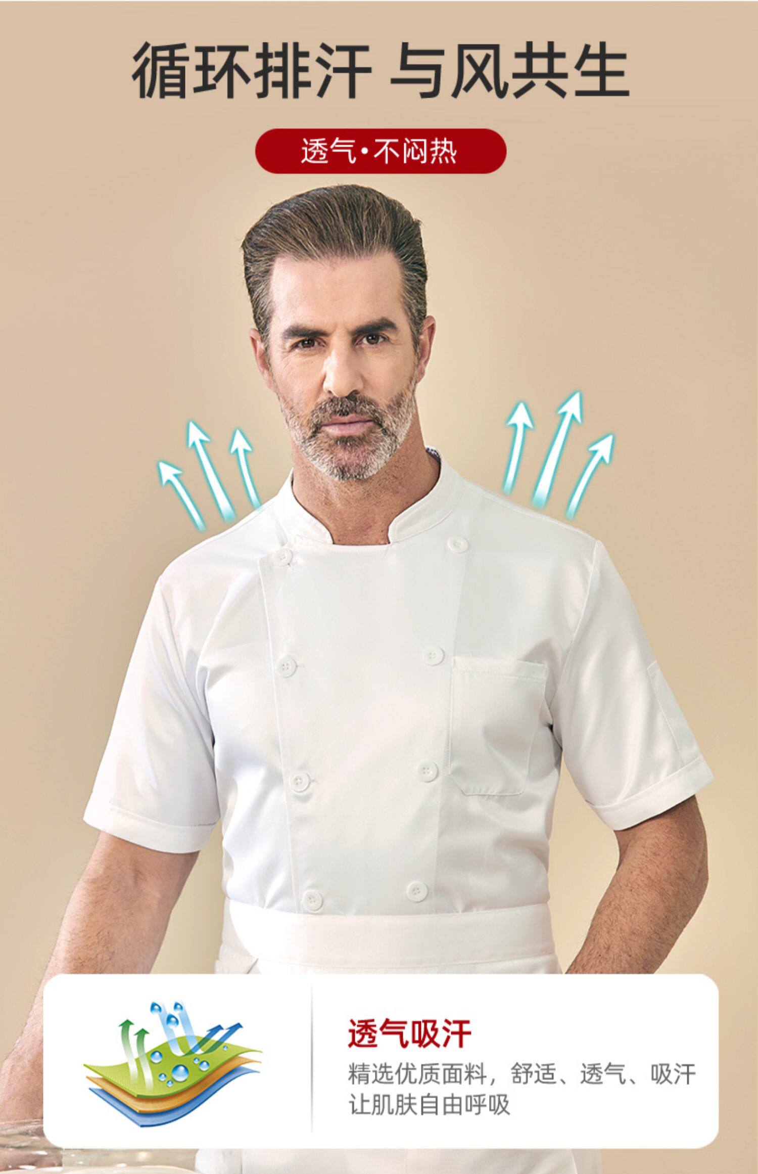 高端厨师工作服短袖透气工装男夏季餐饮酒店早点西餐厅后厨房厨衣