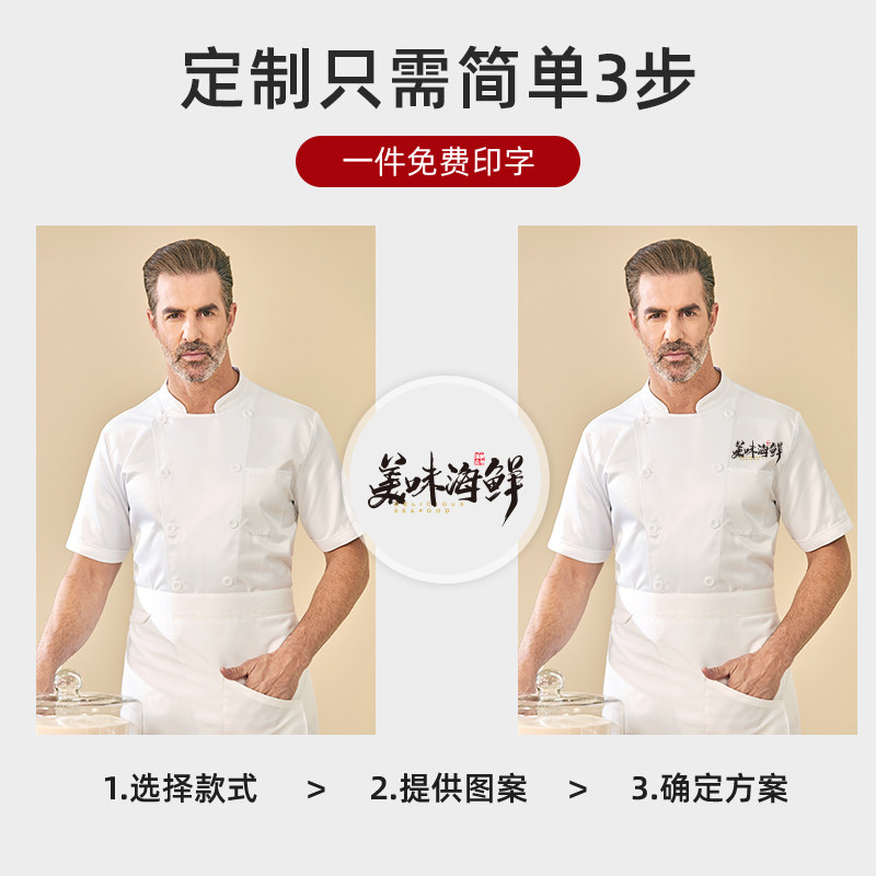 冰丝厨师服工作服短袖男餐饮烘焙饭店厨房面点透气定制厨衣印logo