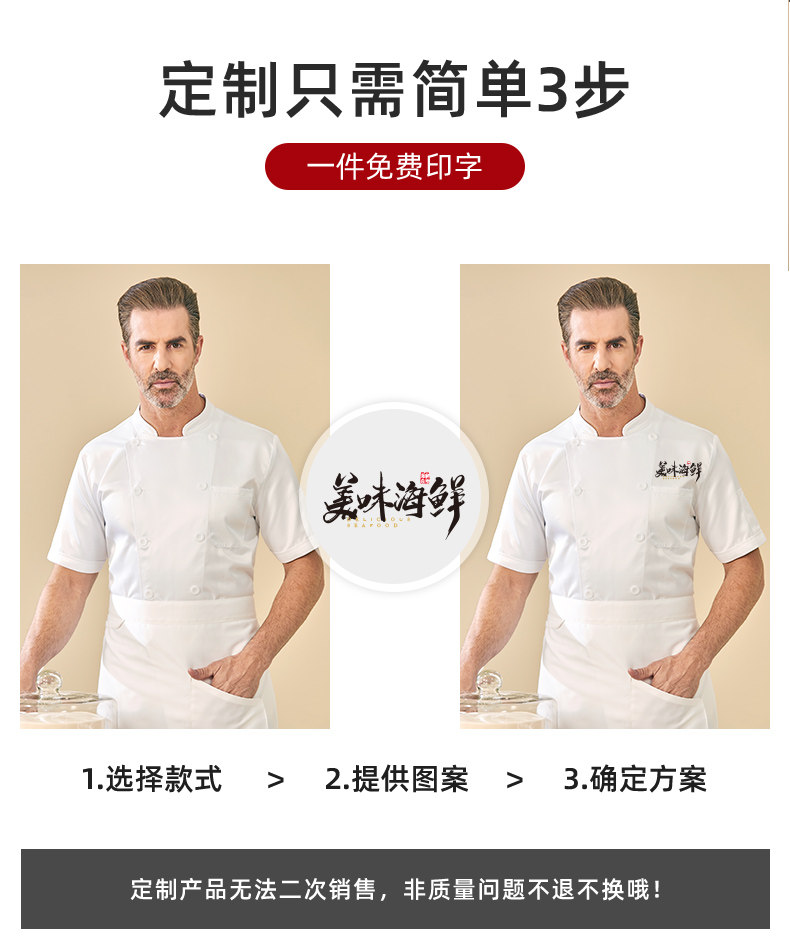 凉感透气厨师工作服短袖男夏季餐厅饭店酒店后厨工装定制logo印字