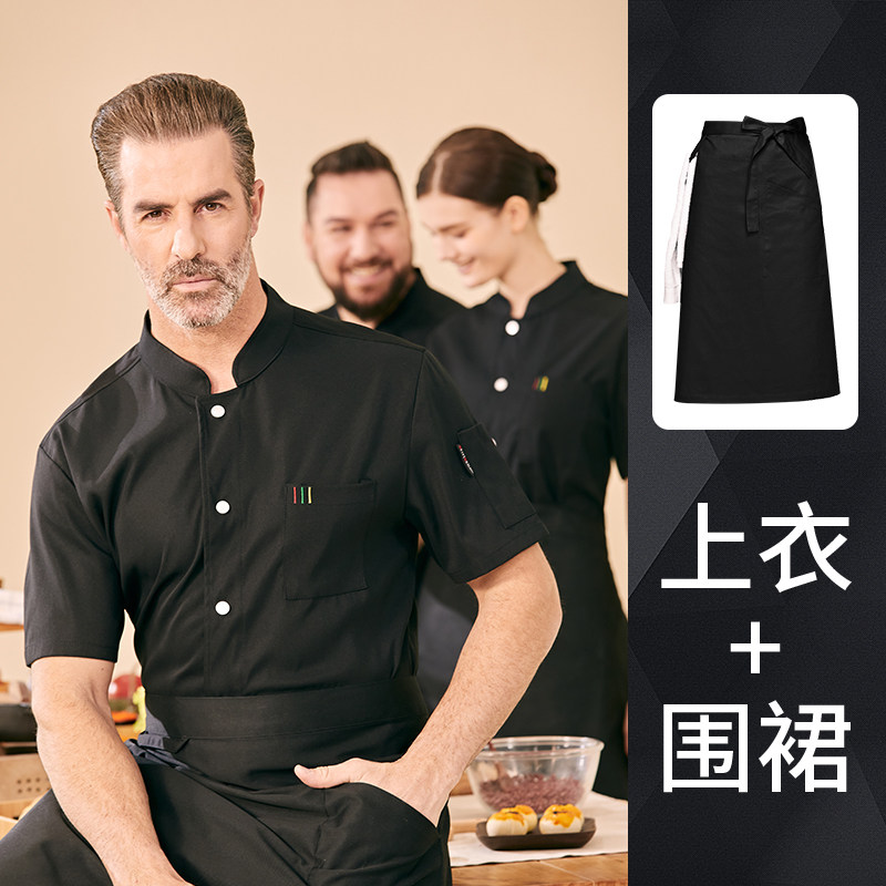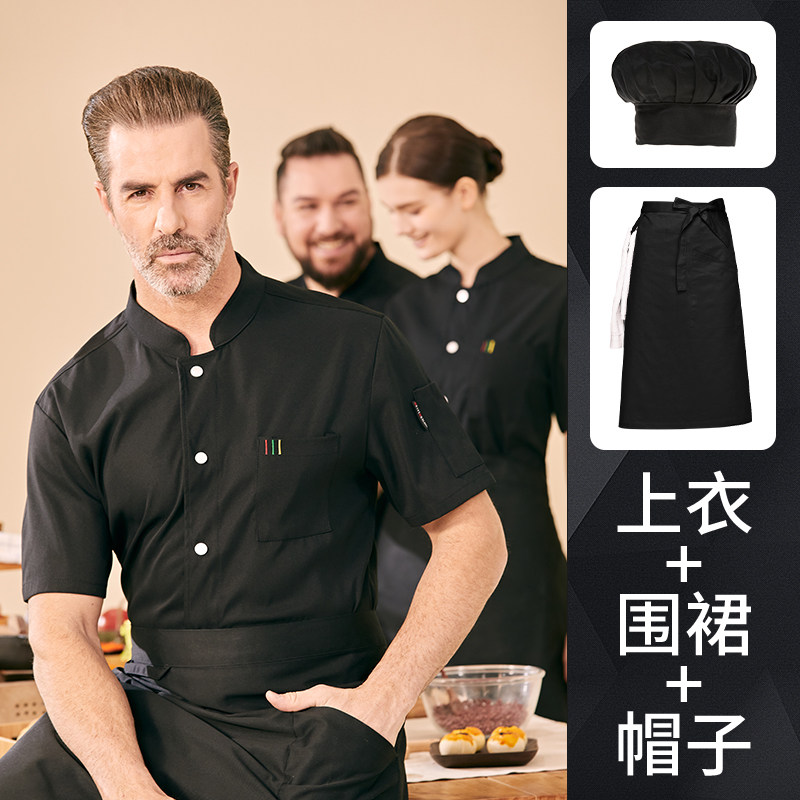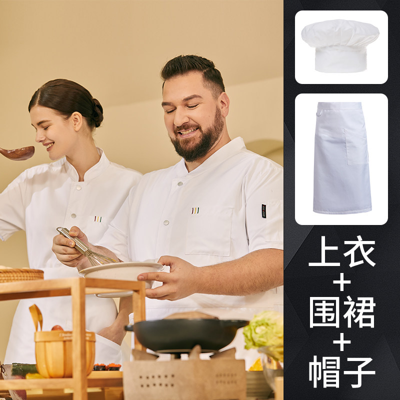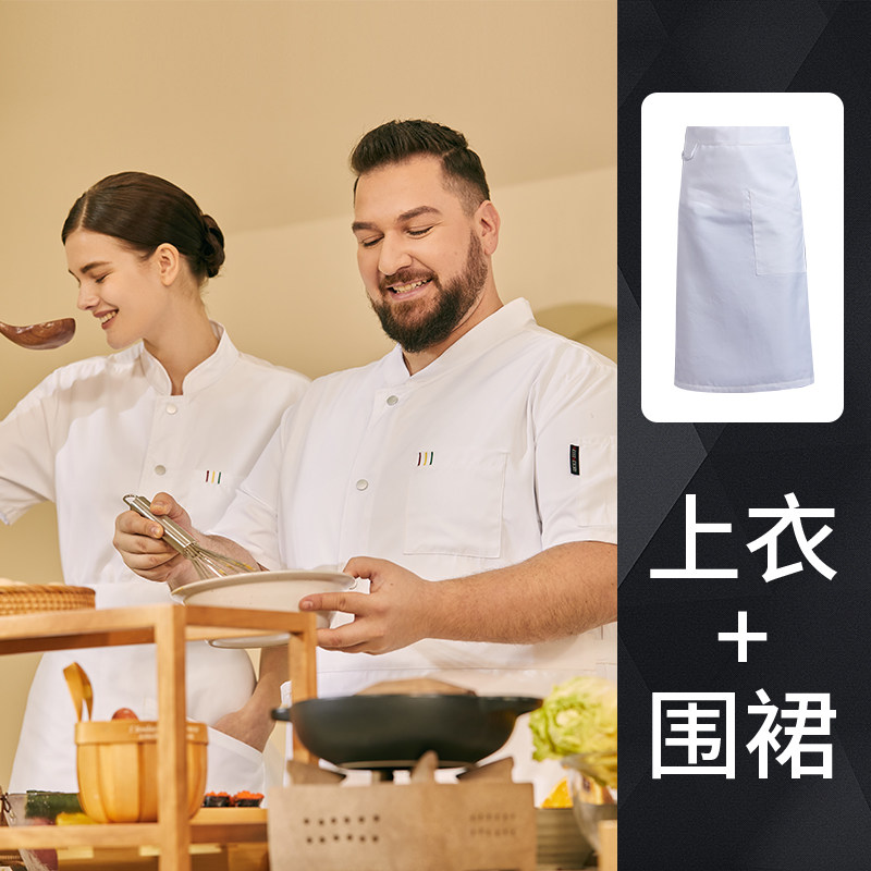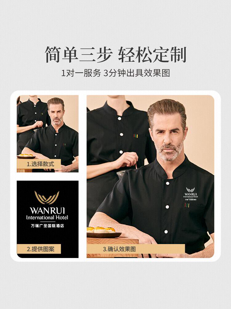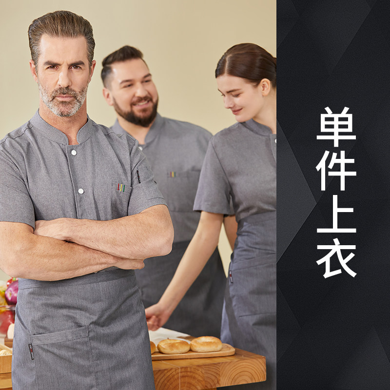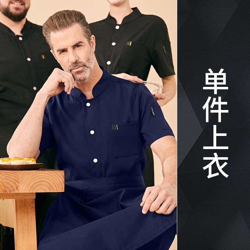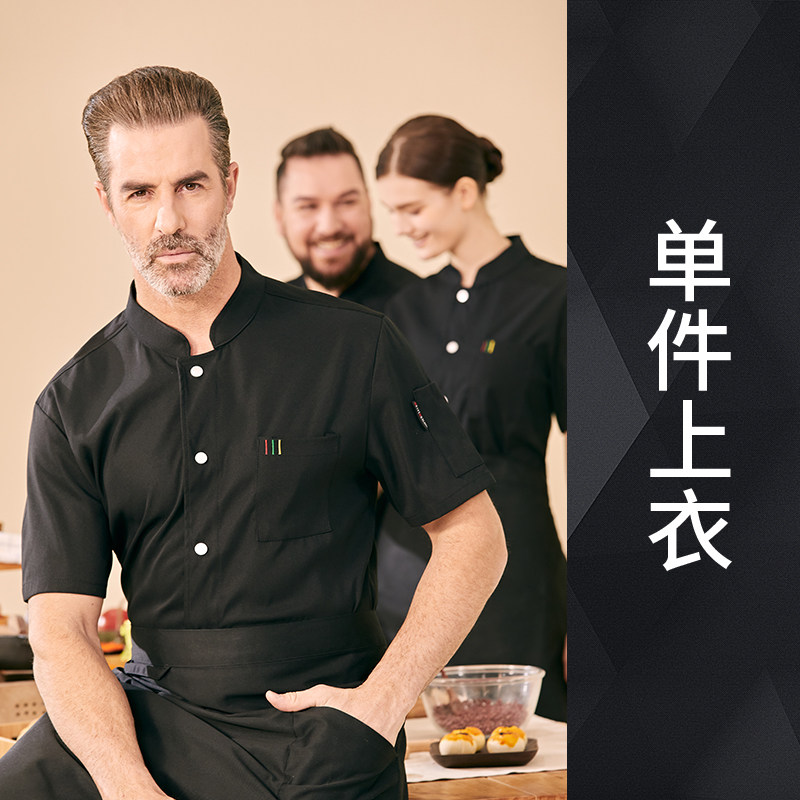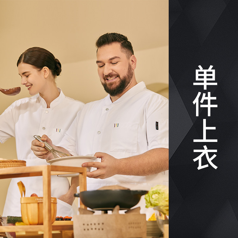 高端厨师工作服短袖透气工装男夏季餐饮酒店早点西餐厅后厨房厨衣