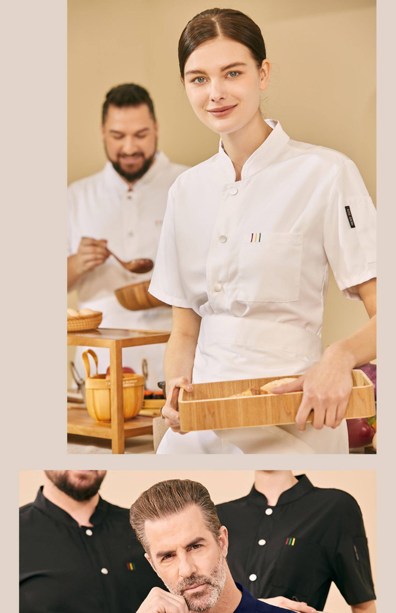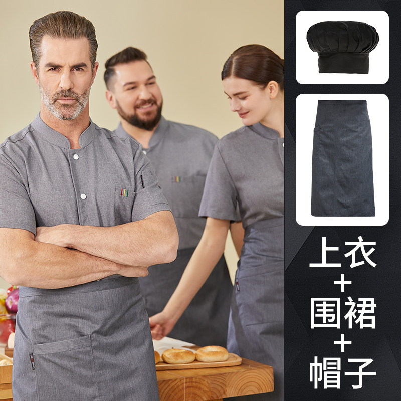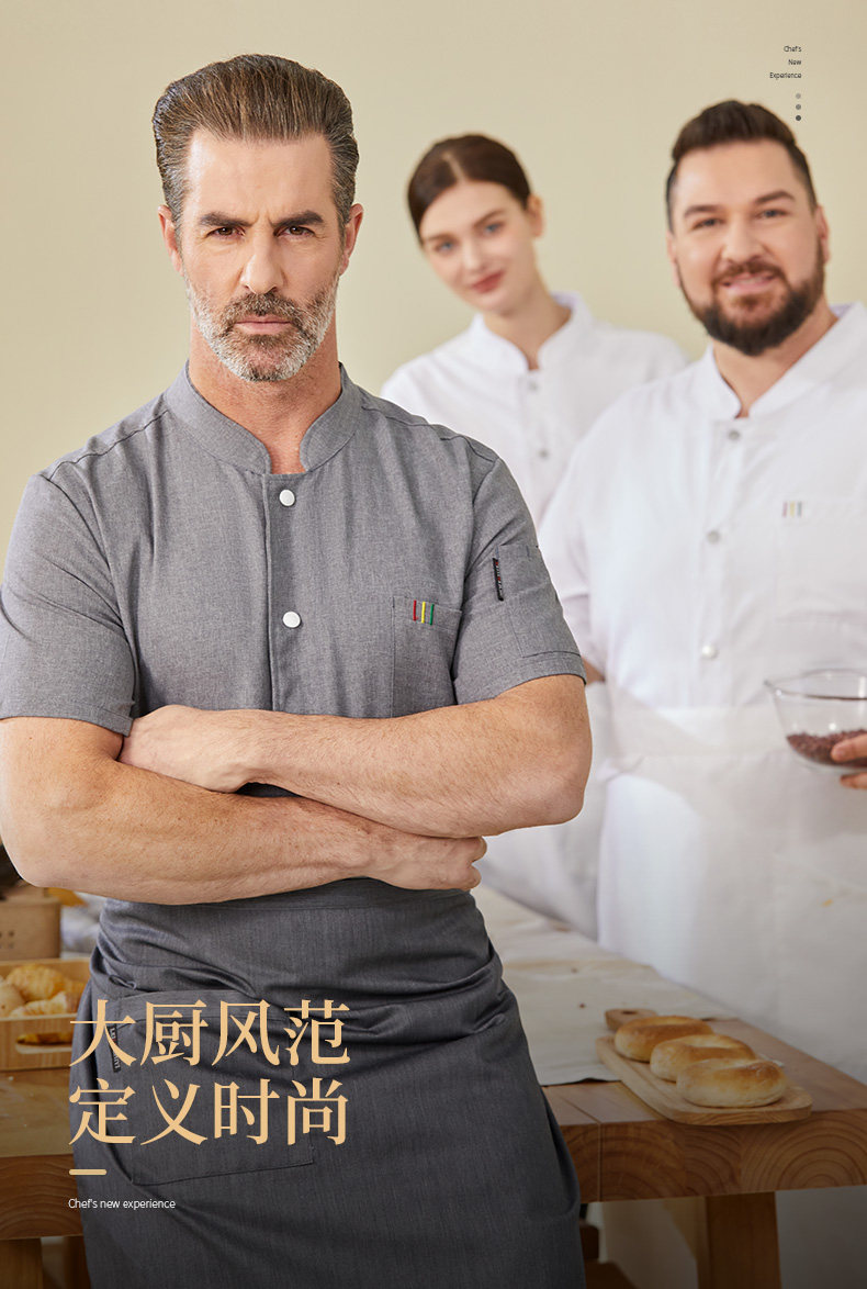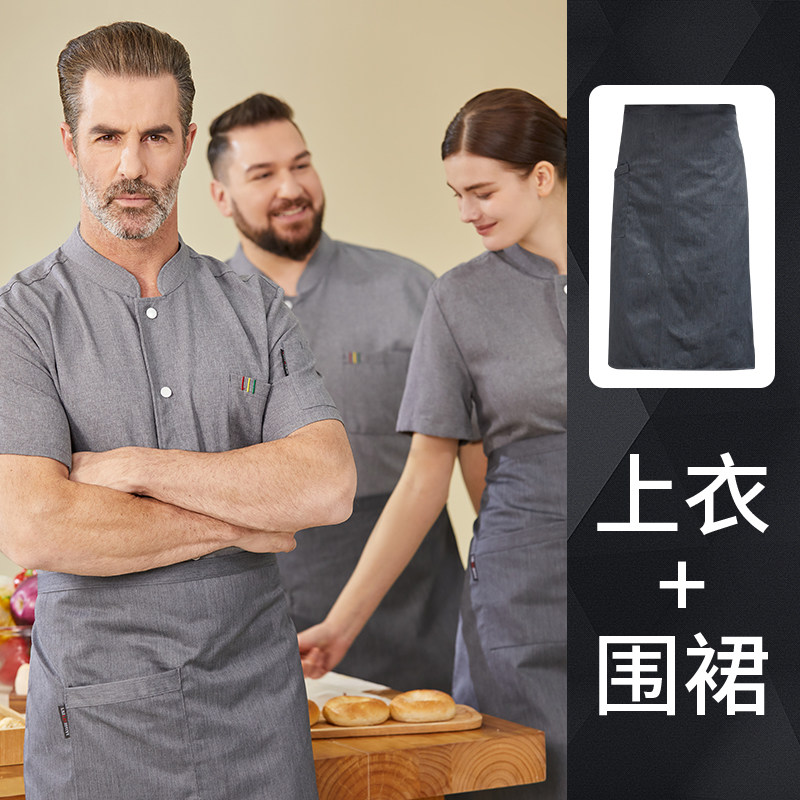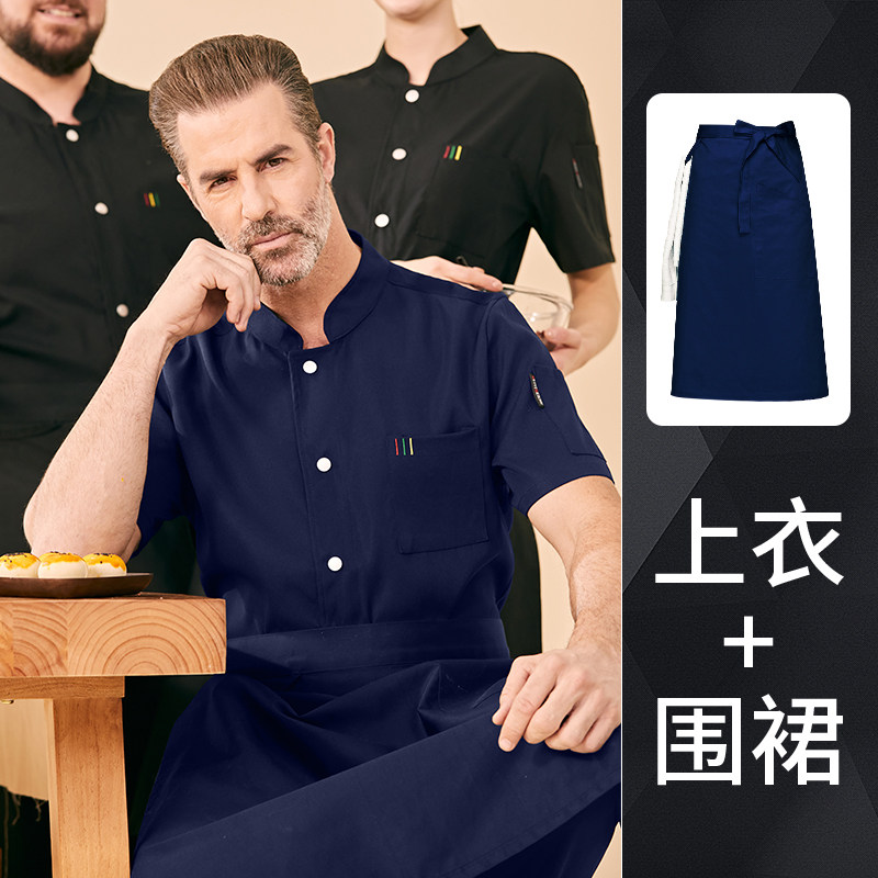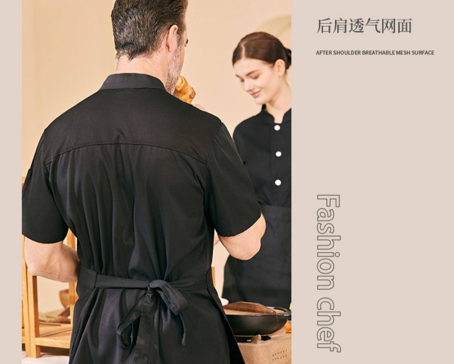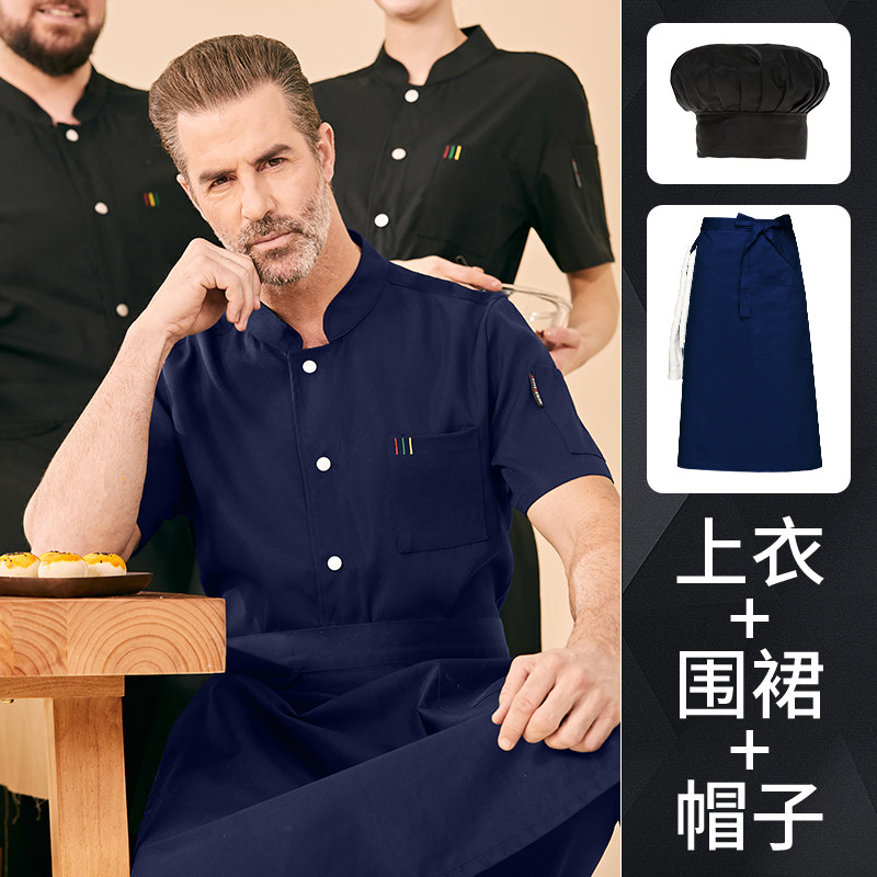 高端厨师工作服短袖透气工装男夏季餐饮酒店早点西餐厅后厨房厨衣