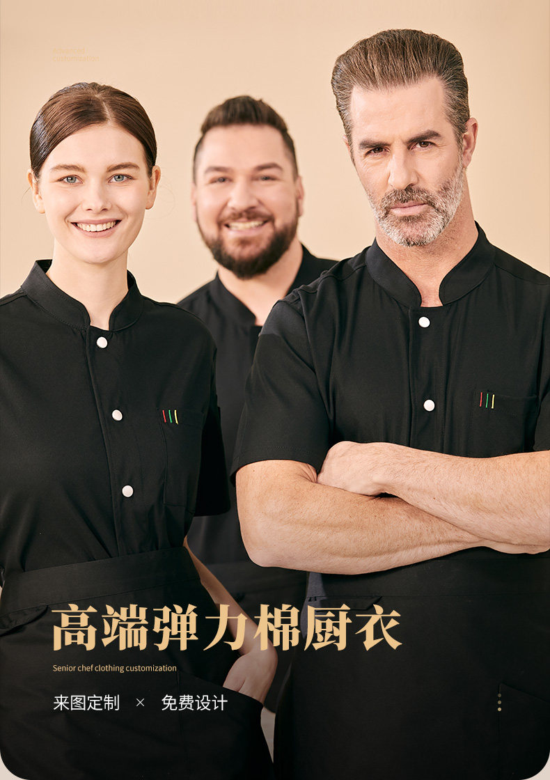 高档透气厨师工作服短袖服装男餐饮餐厅厨房后厨面点师弹力半袖女