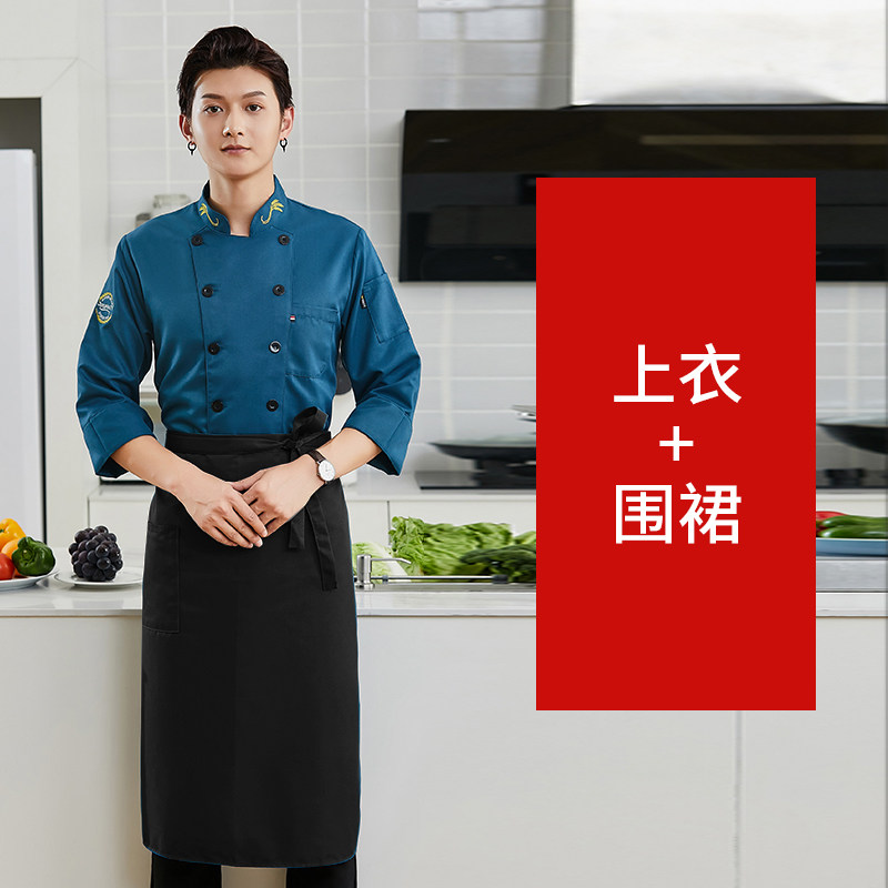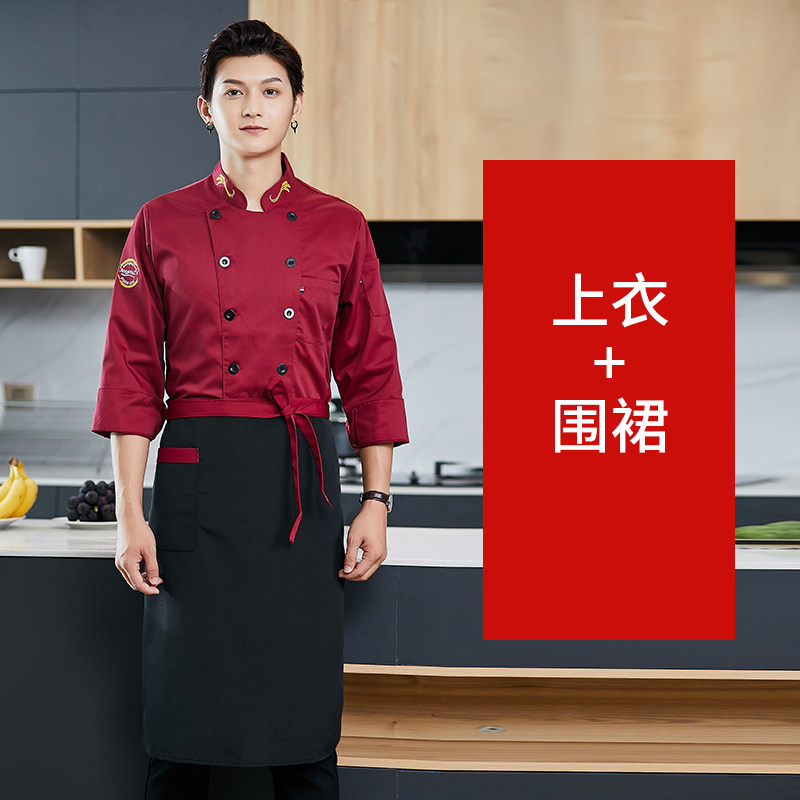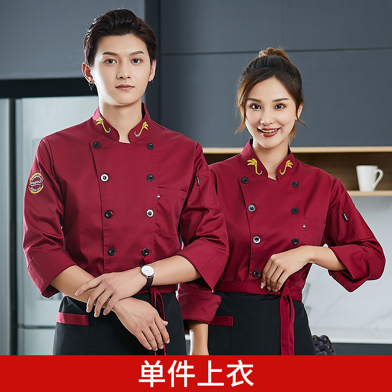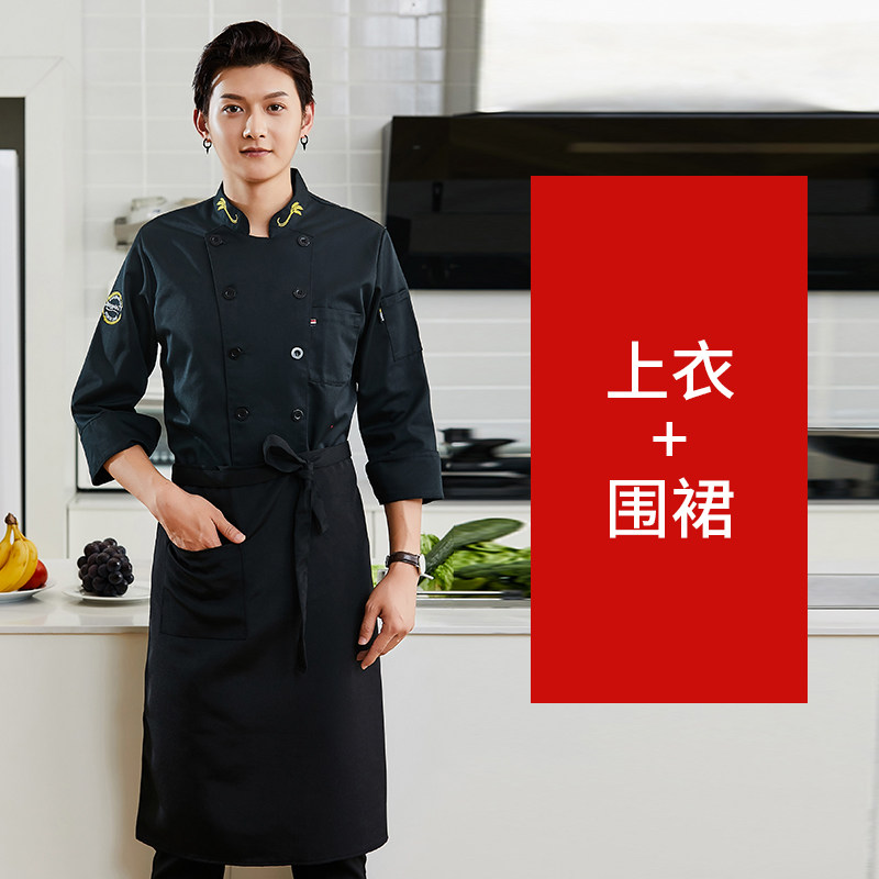 新式厨师工作服秋冬装长袖高端酒店餐饮饭店农家乐厨房短袖衣服男