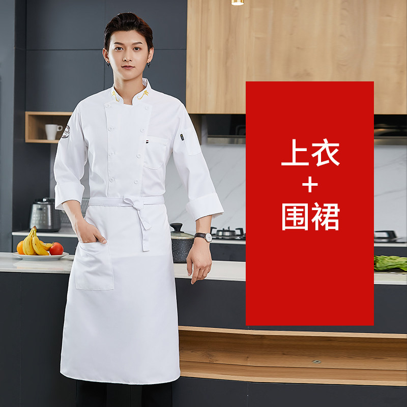 白色厨师工作服长袖秋冬款餐饮酒店饭店食堂后厨房服装男定制套装