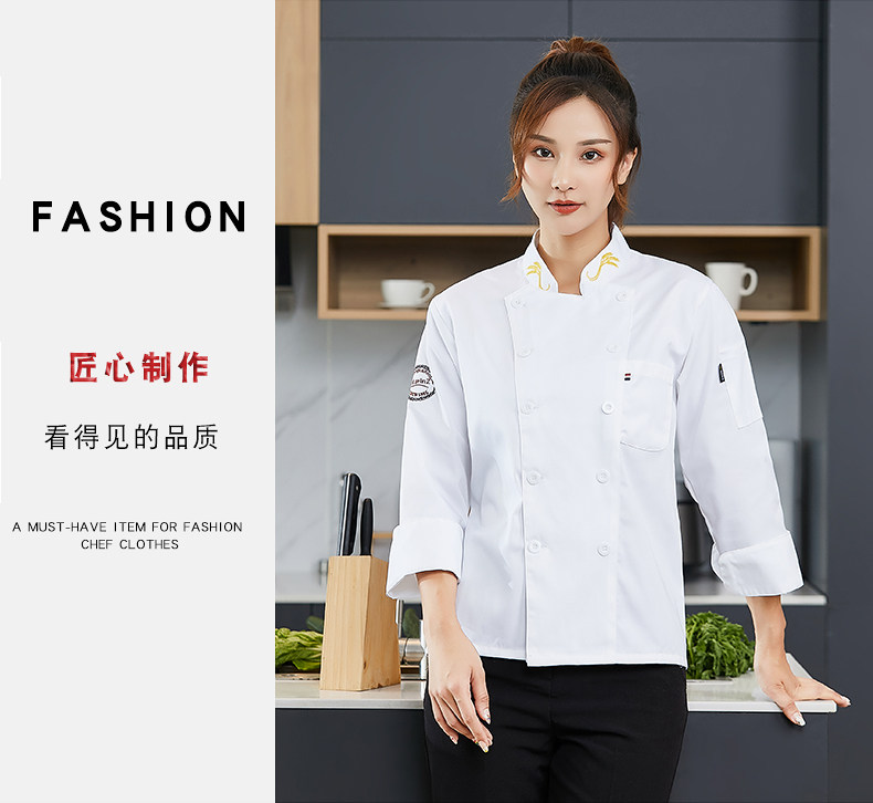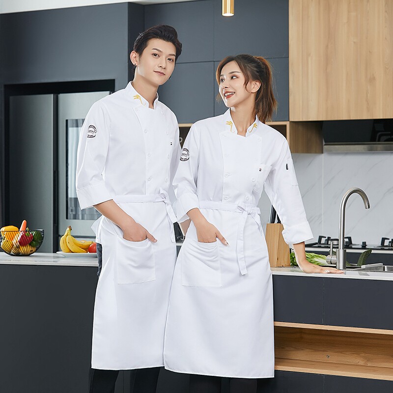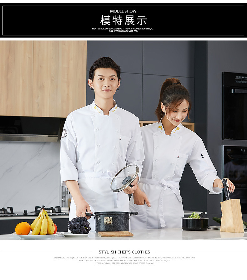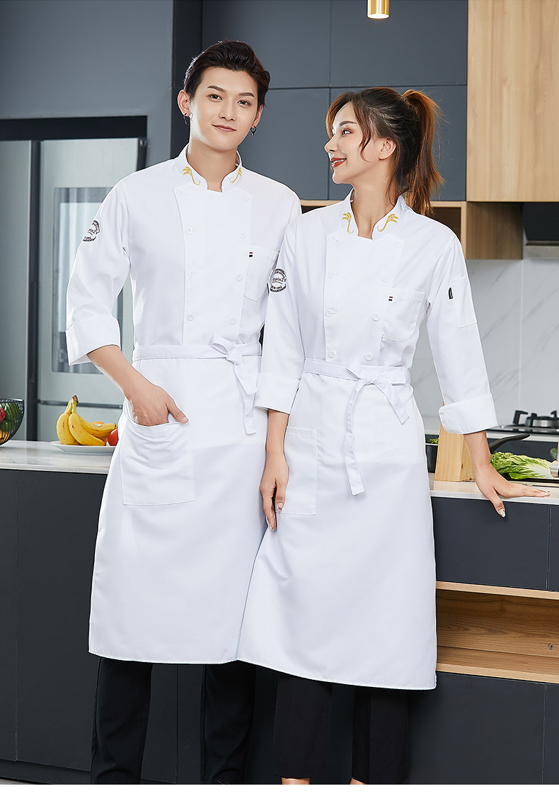高端厨师工作服男白色长袖酒店西餐厅烘焙餐饮女厨房衣服套装定制
