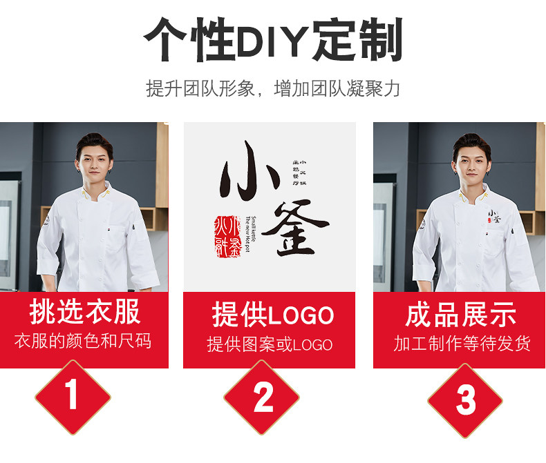 餐饮厨师工作服定制印LOGO男春夏短袖餐厅饭店后厨房烘焙套装长袖