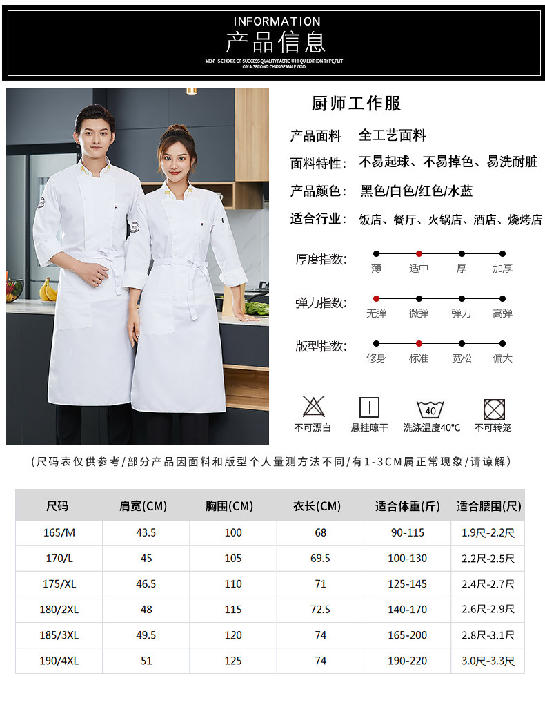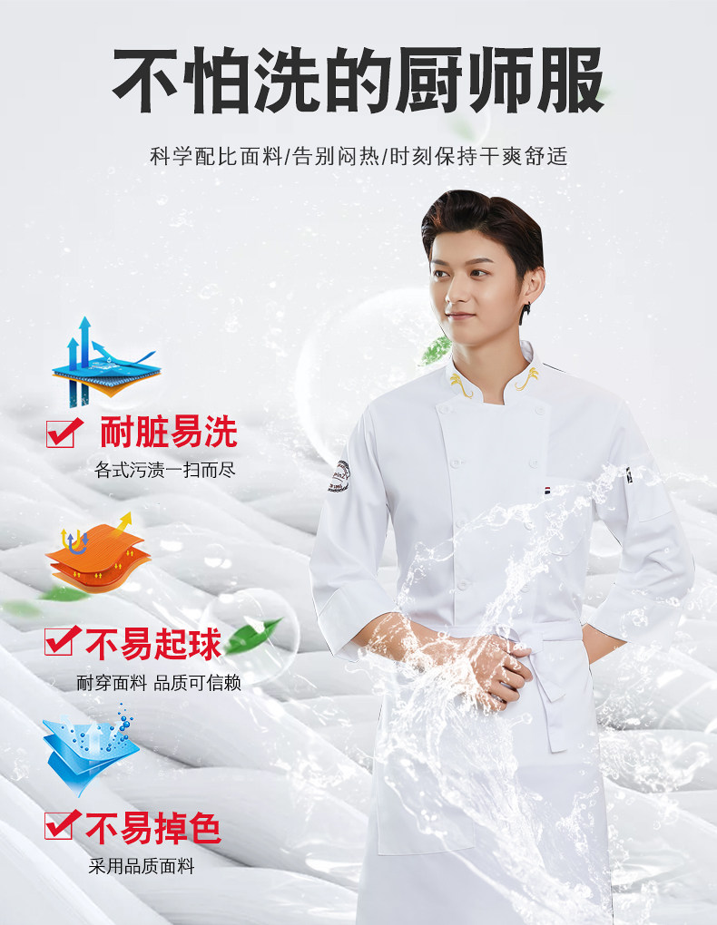 防水厨师工作服厨房餐饮后厨餐厅食堂糕点师工衣服装男长袖秋冬季