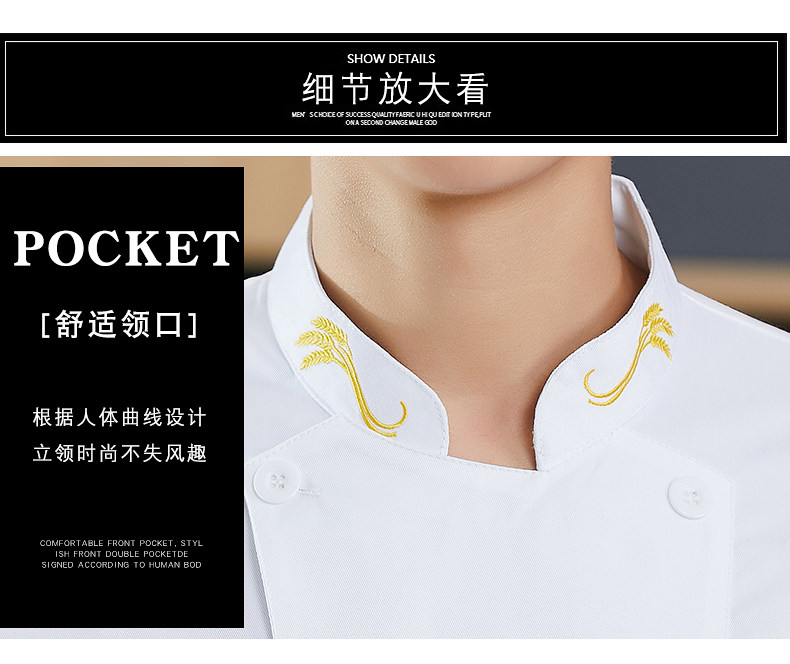 新式厨师工作服男长袖高档酒店西餐厅烘焙餐饮主厨房服装短袖上衣