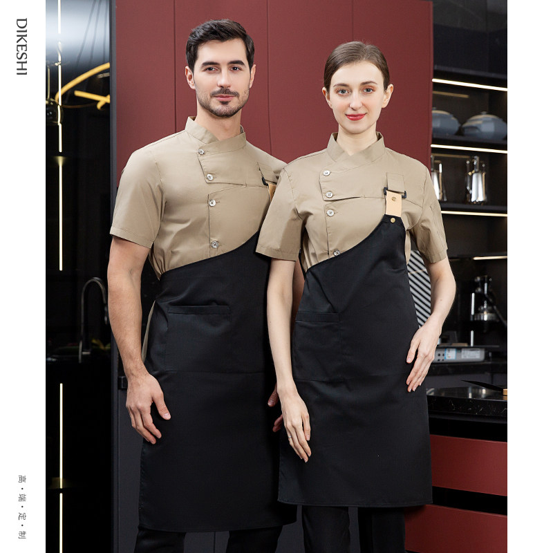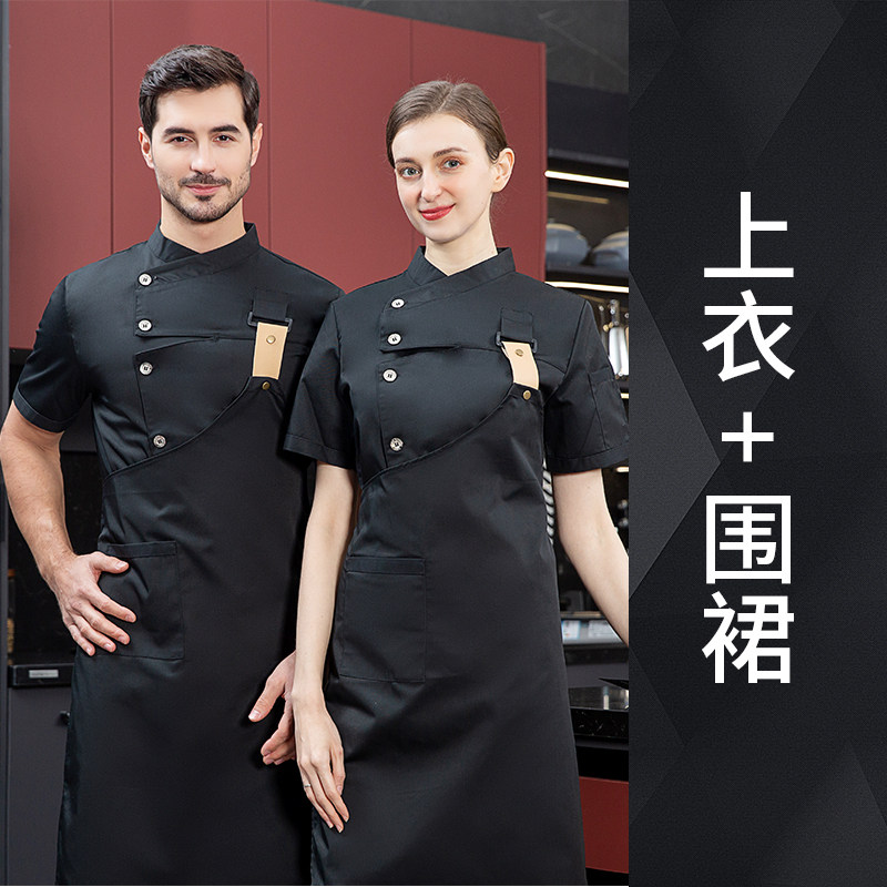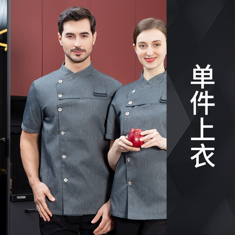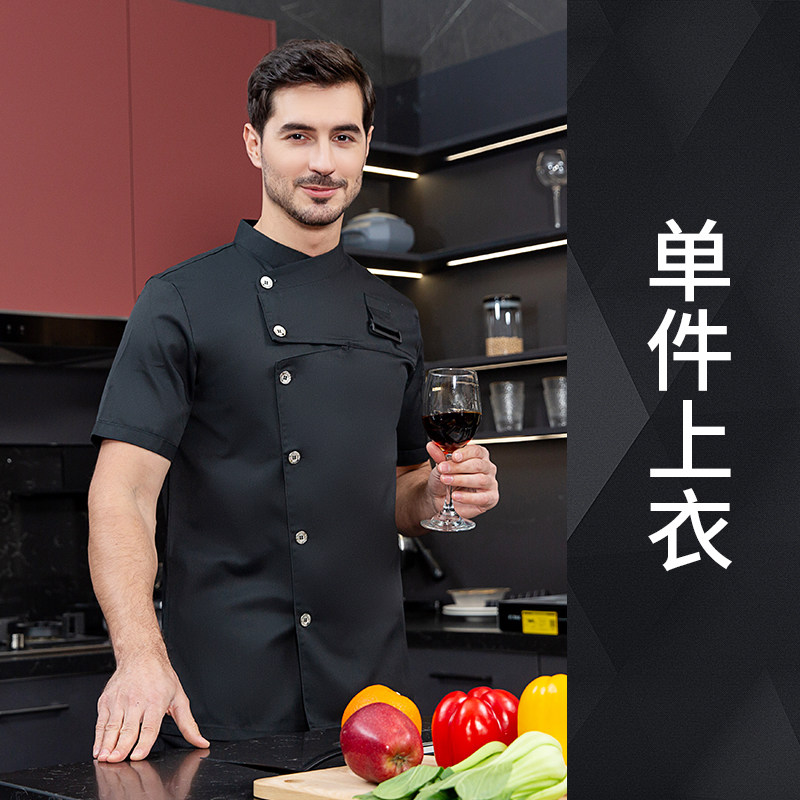 高端厨师工作服短袖透气工装男夏季餐饮酒店早点西餐厅后厨房厨衣