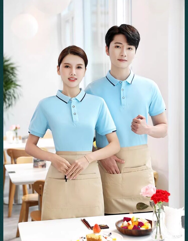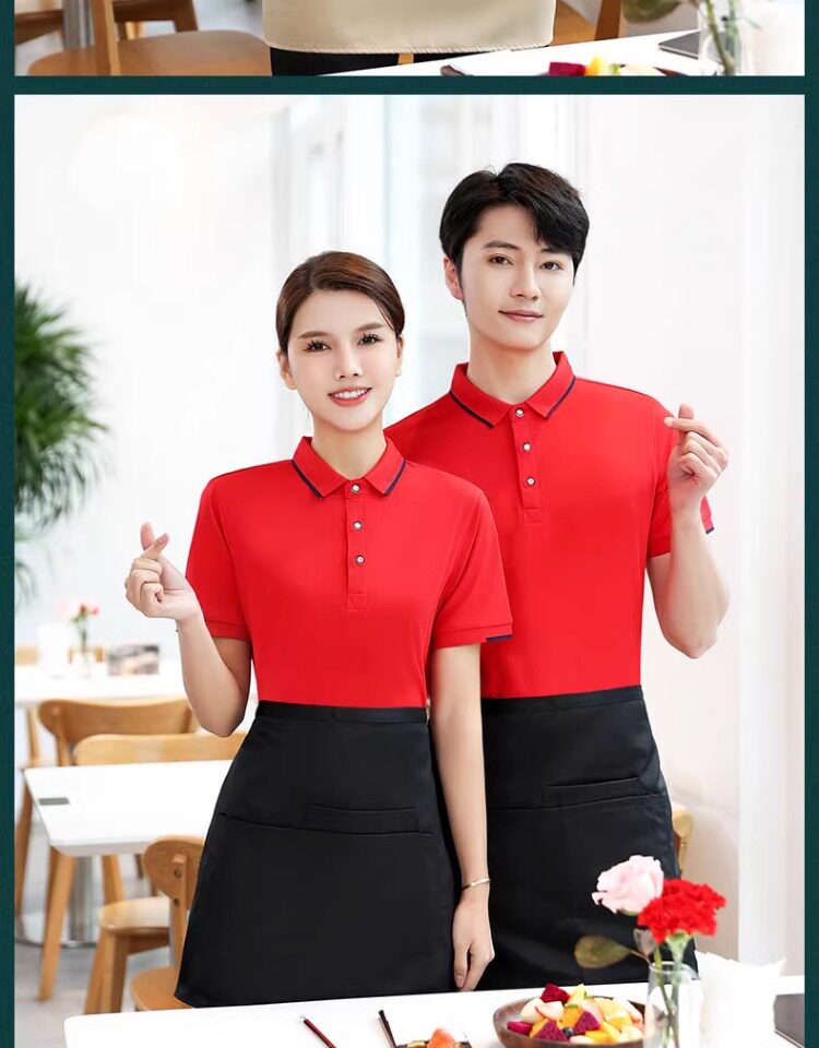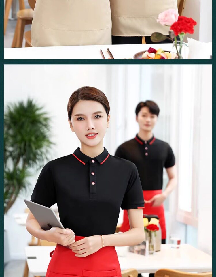 纯棉夏季餐饮奶茶定制LOGO工作服咖啡火锅服务员烧烤t恤短袖女装