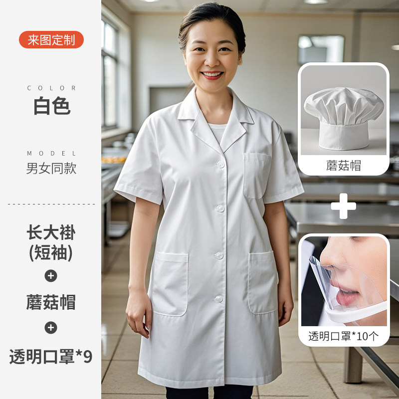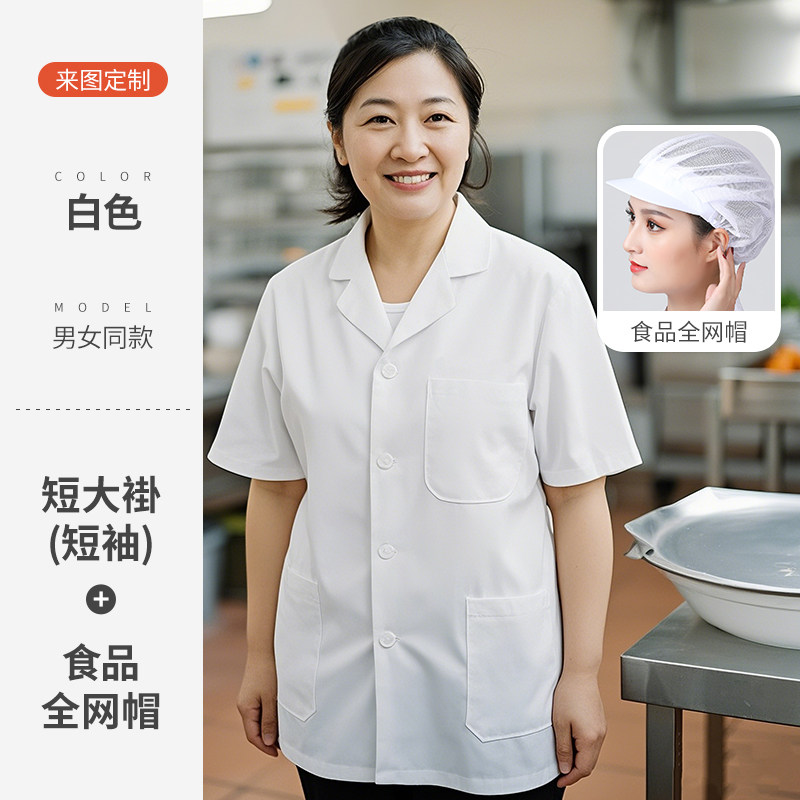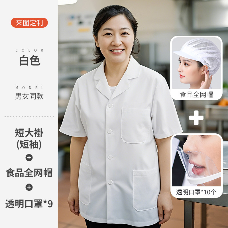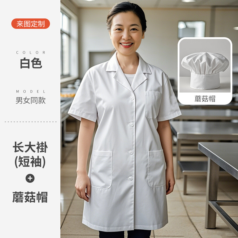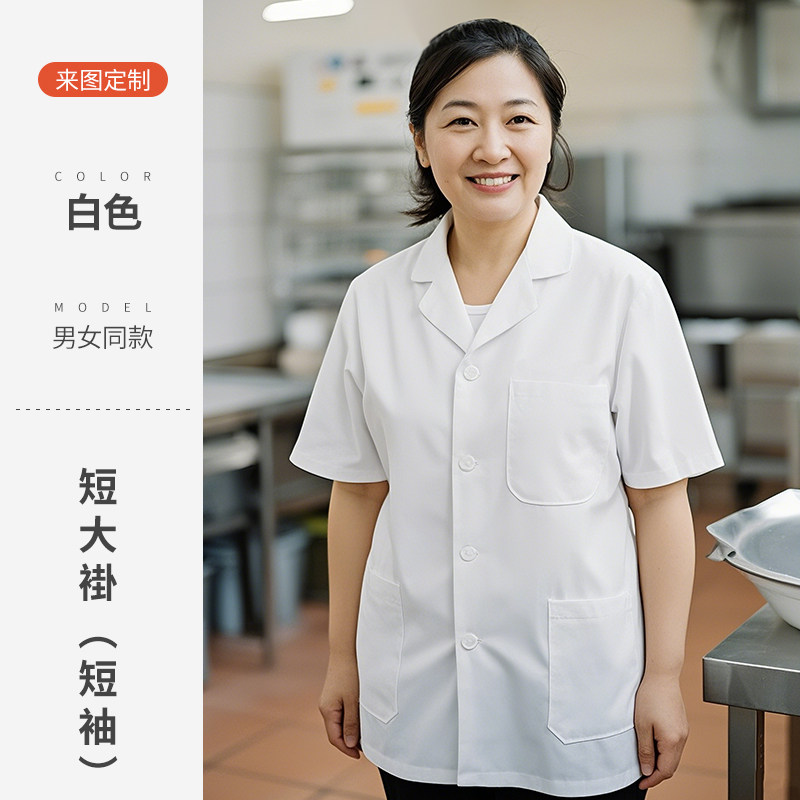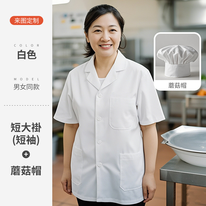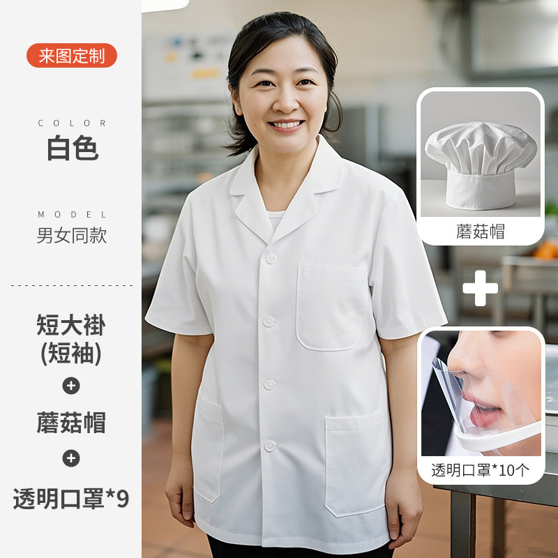 白色厨师工作服短袖薄款透气夏季酒店饭店幼儿园食堂厨房定制套装