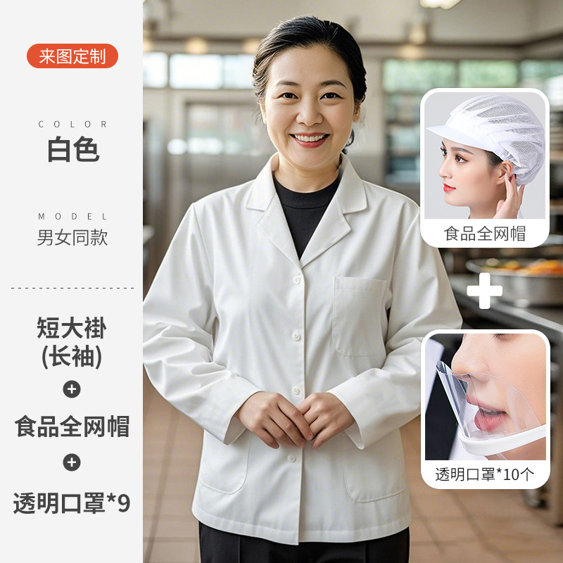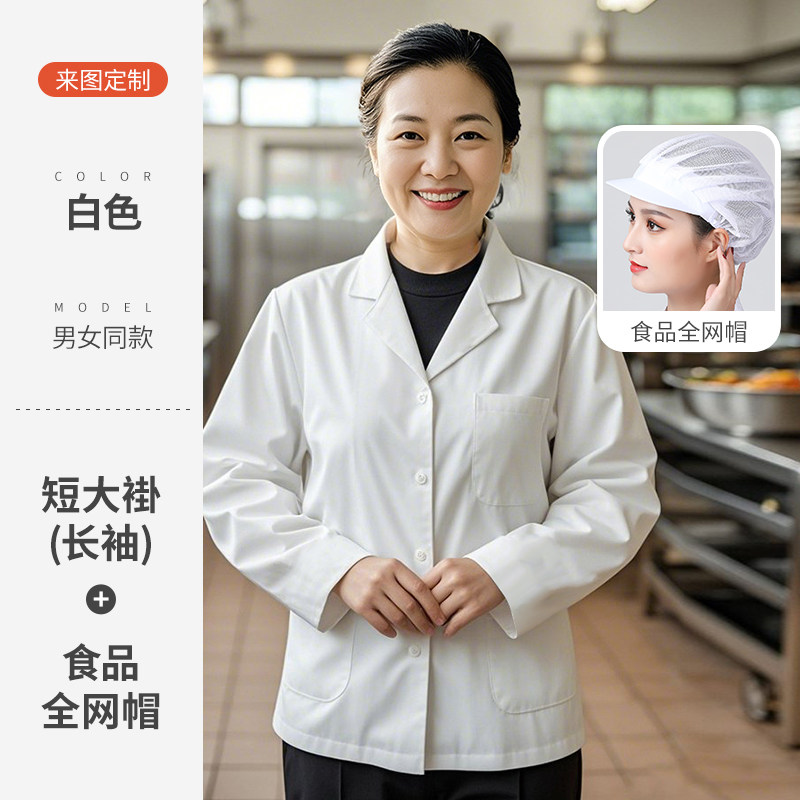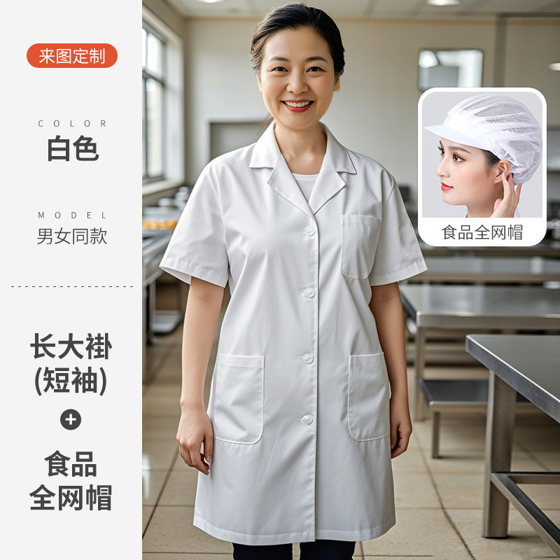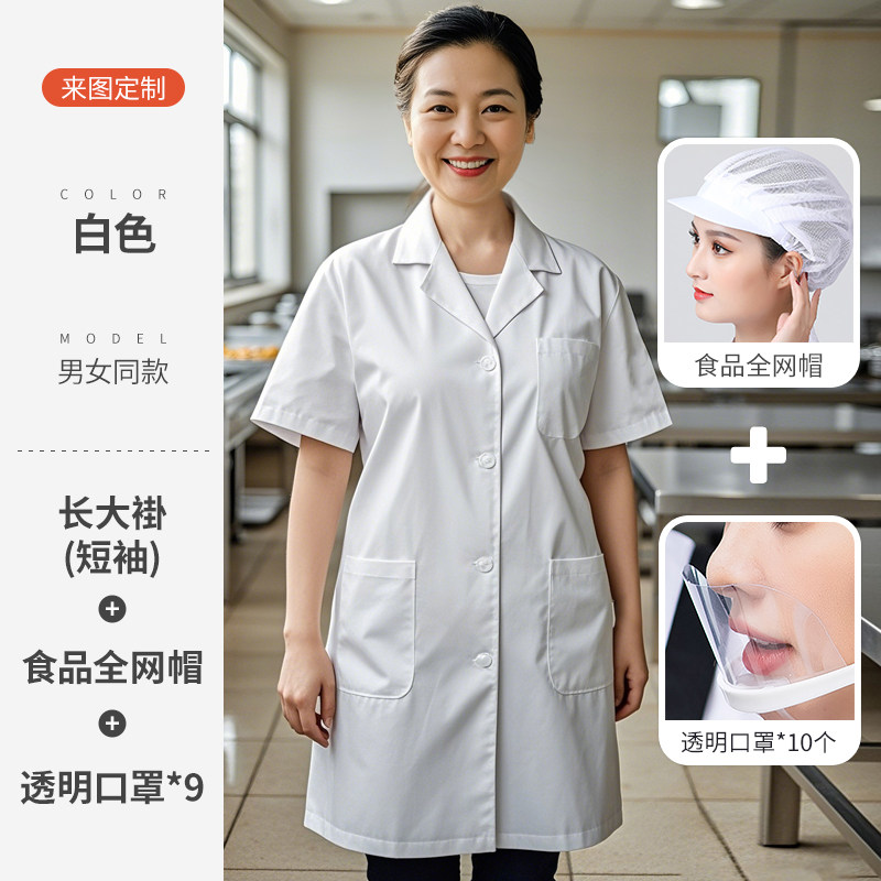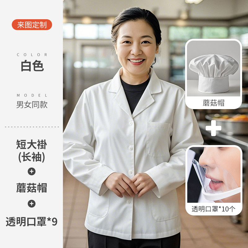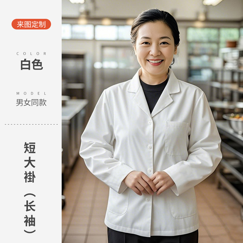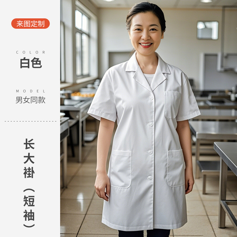 白色厨师工作服短袖薄款透气夏季酒店饭店幼儿园食堂厨房定制套装