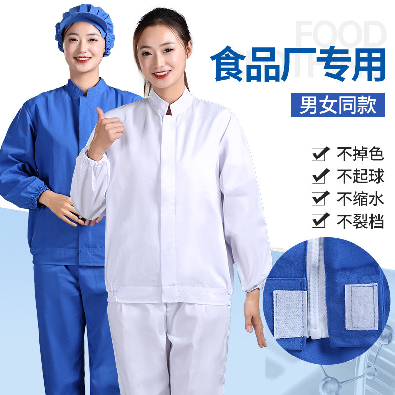 防尘工作服男女秋冬季白色大褂食品工厂车间生产加工分体套装定制