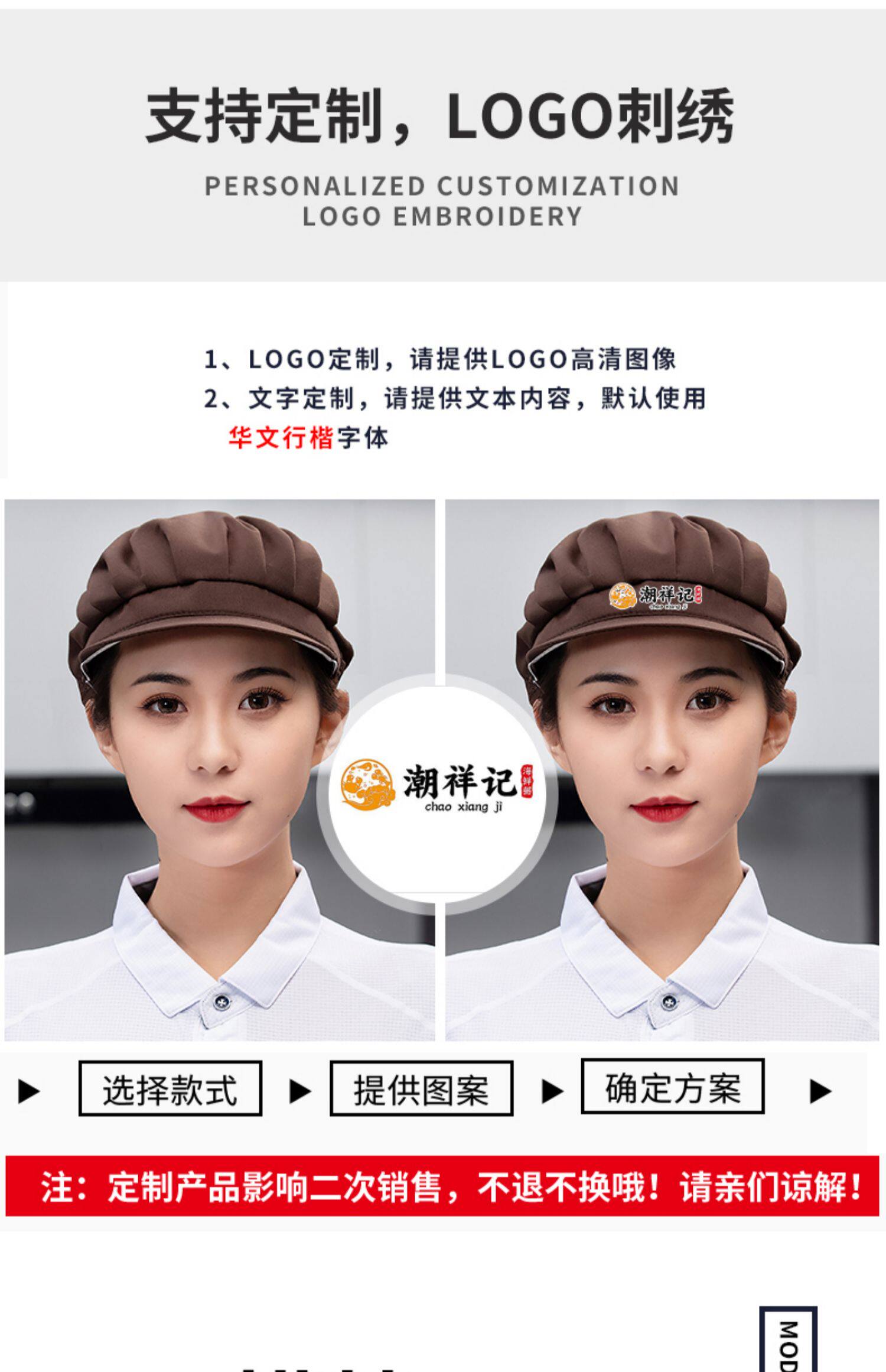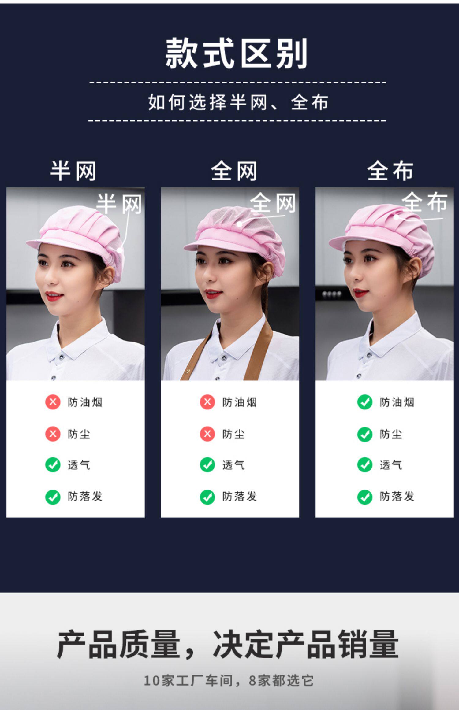 厨师帽子定制食堂餐饮防油烟防掉发食品厂无尘车间专用透气工作帽