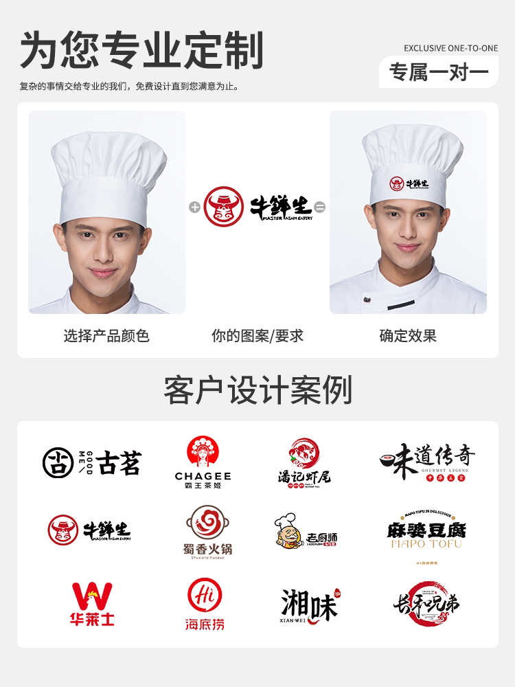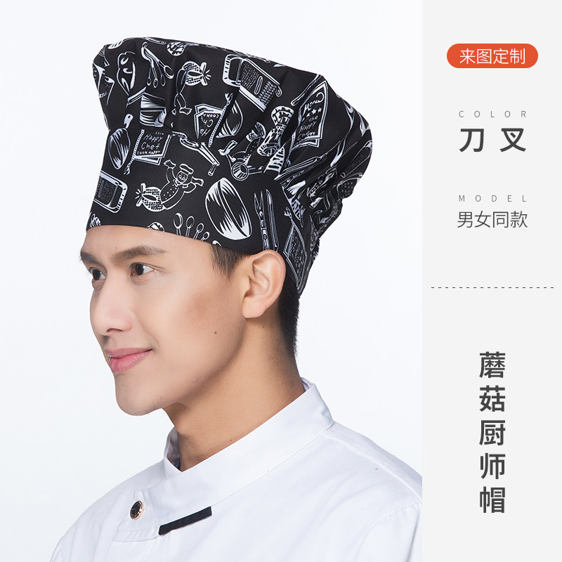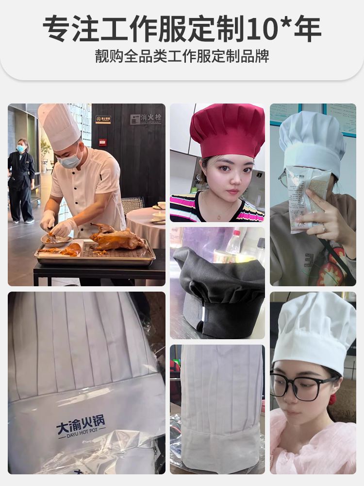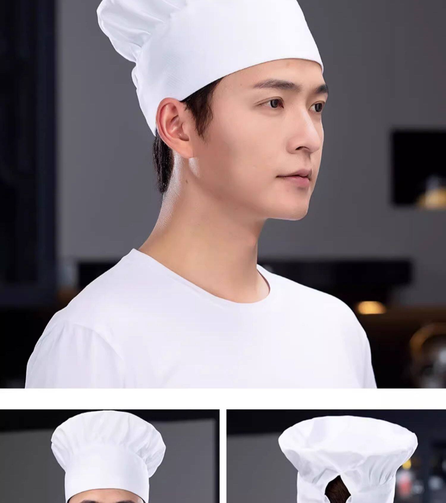 厨师工作帽子定制夏季食品厂防尘防掉发烘焙食堂白色透气蘑菇帽女