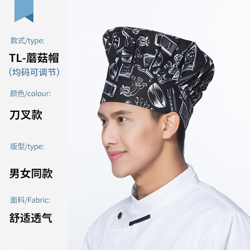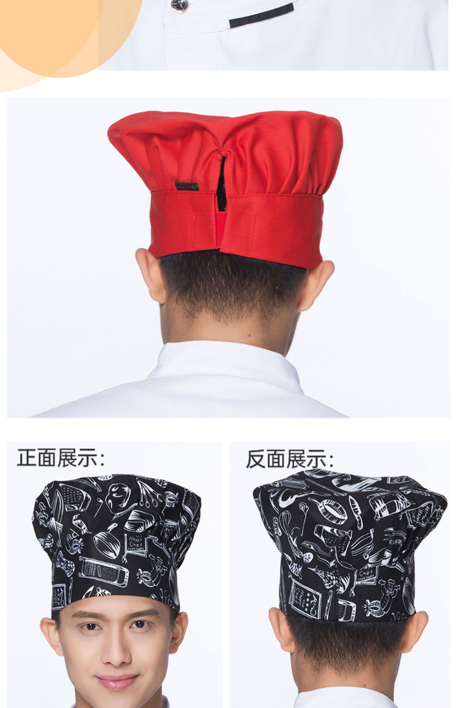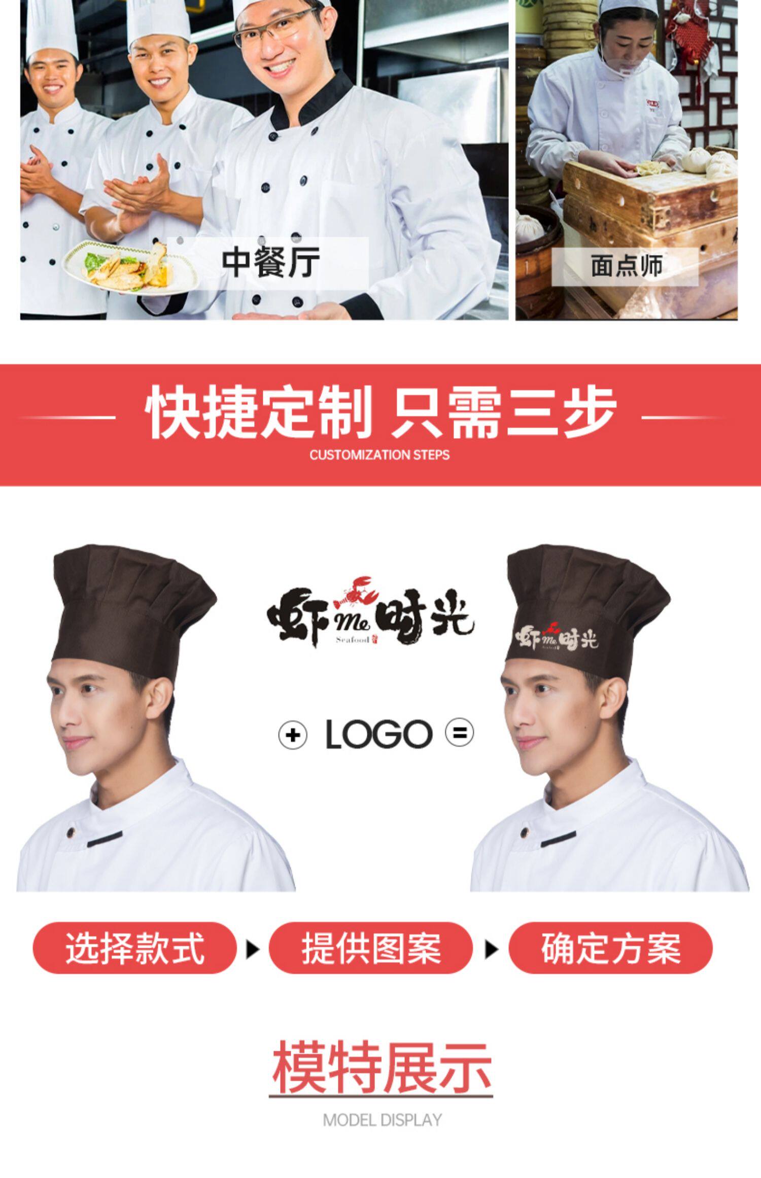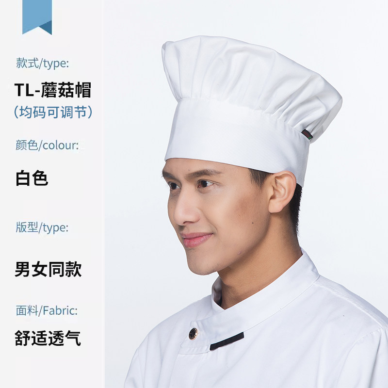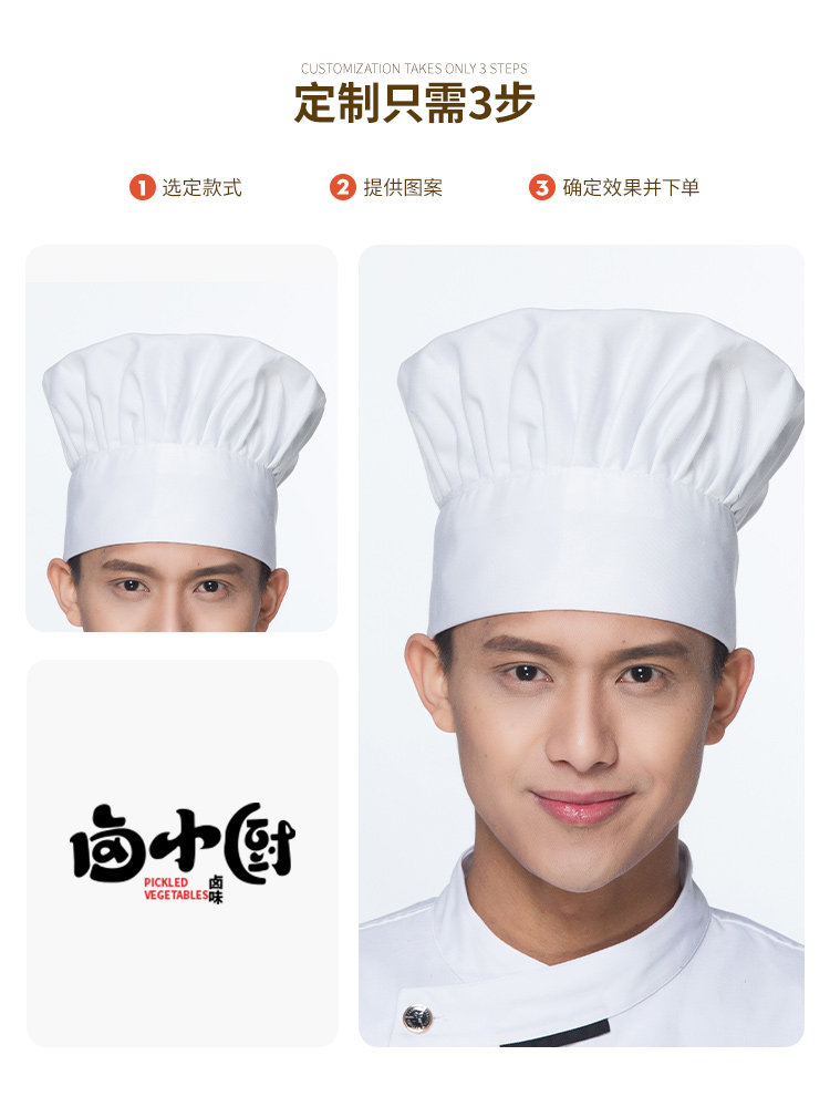 厨师工作帽定制印字餐饮厨房饭酒店食堂工厂专用蘑菇帽高帽logo男