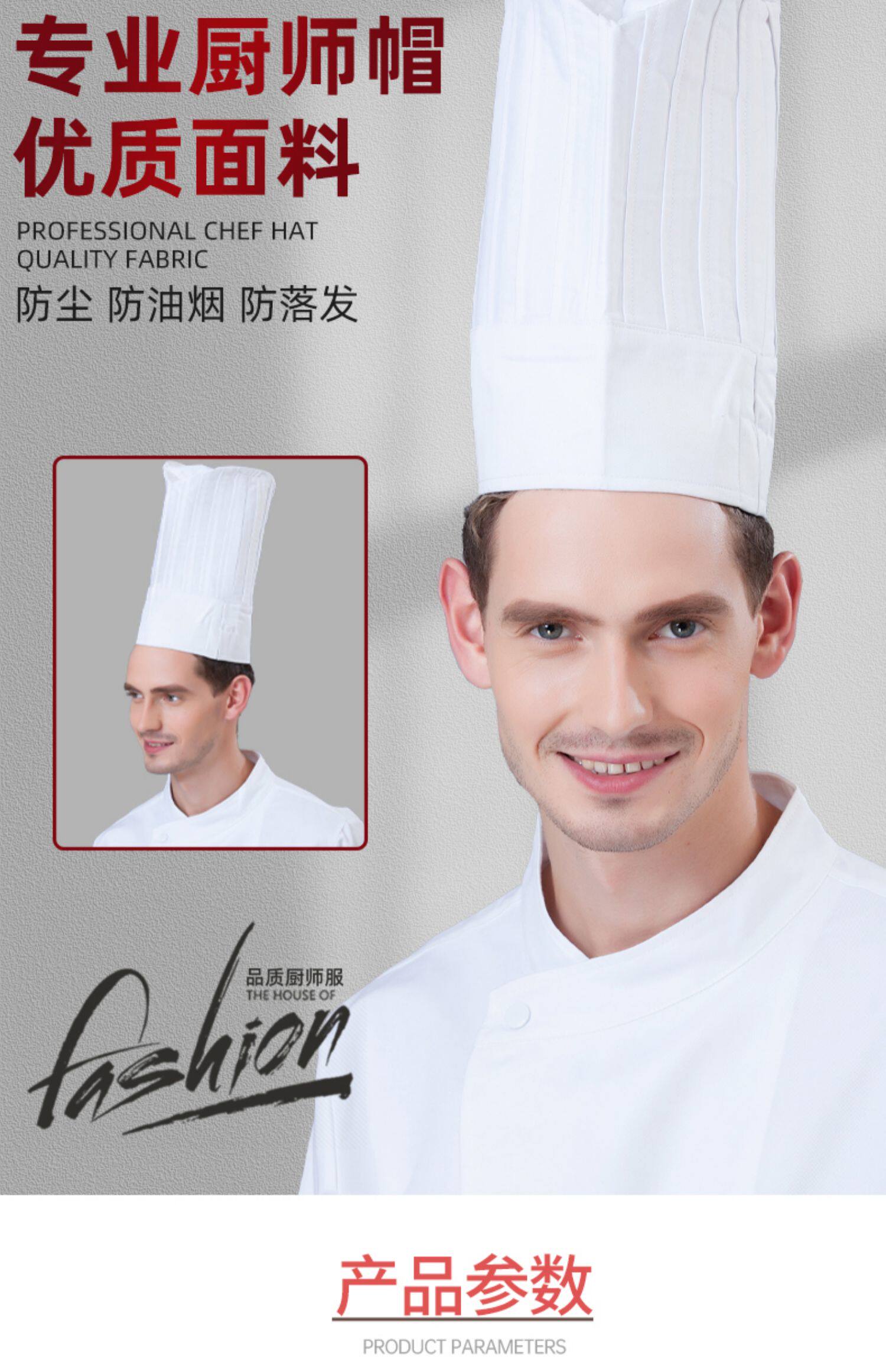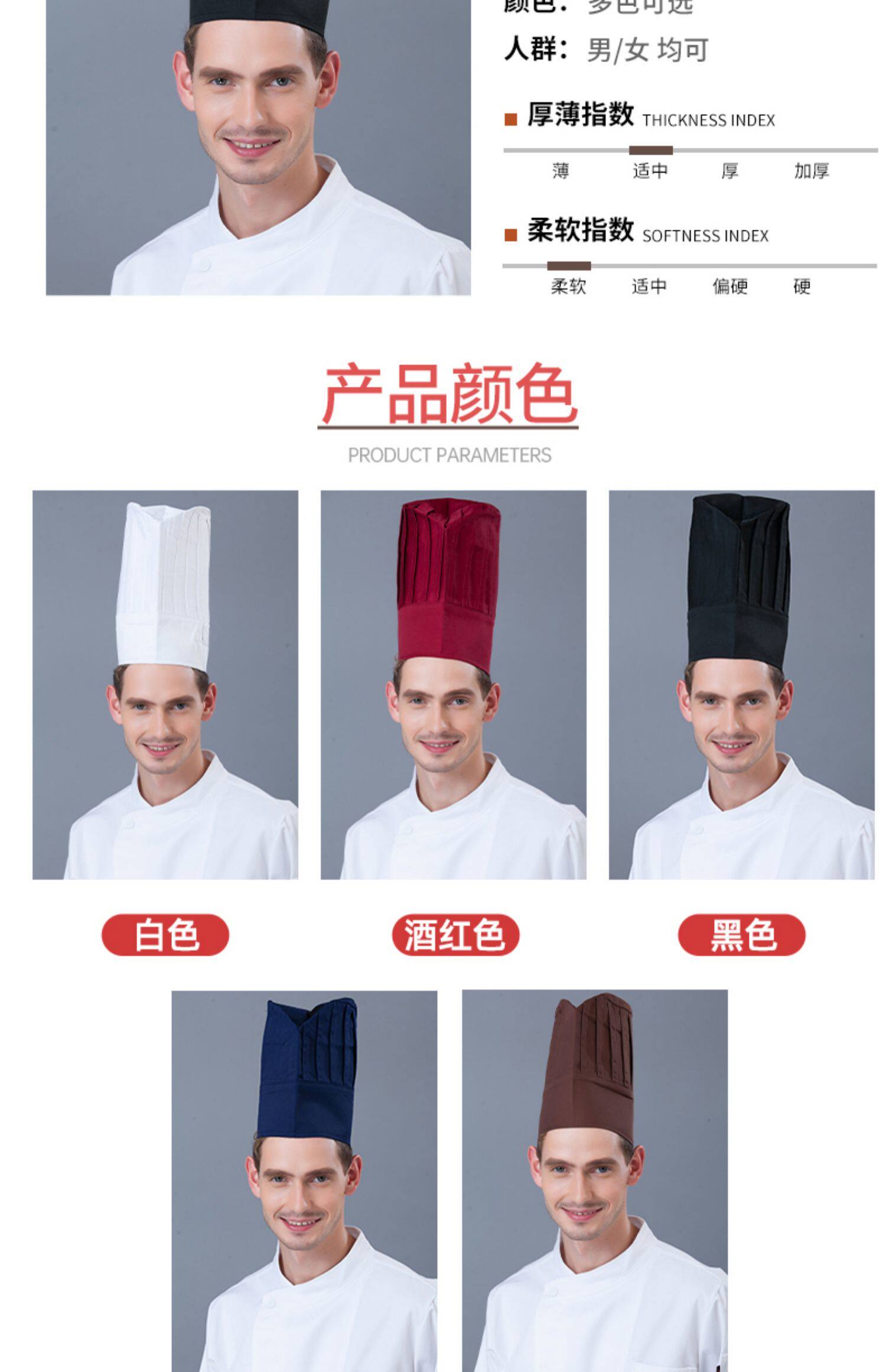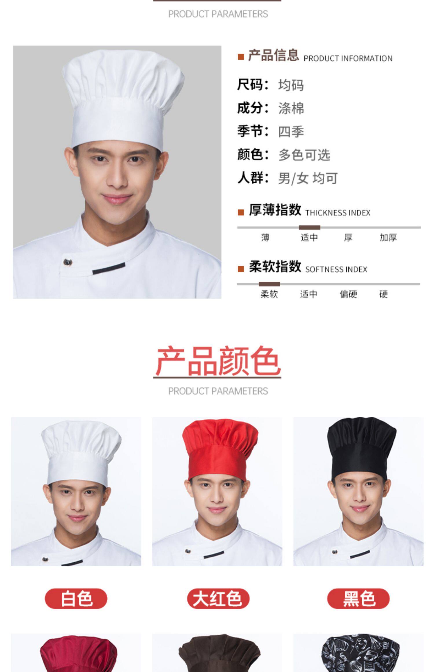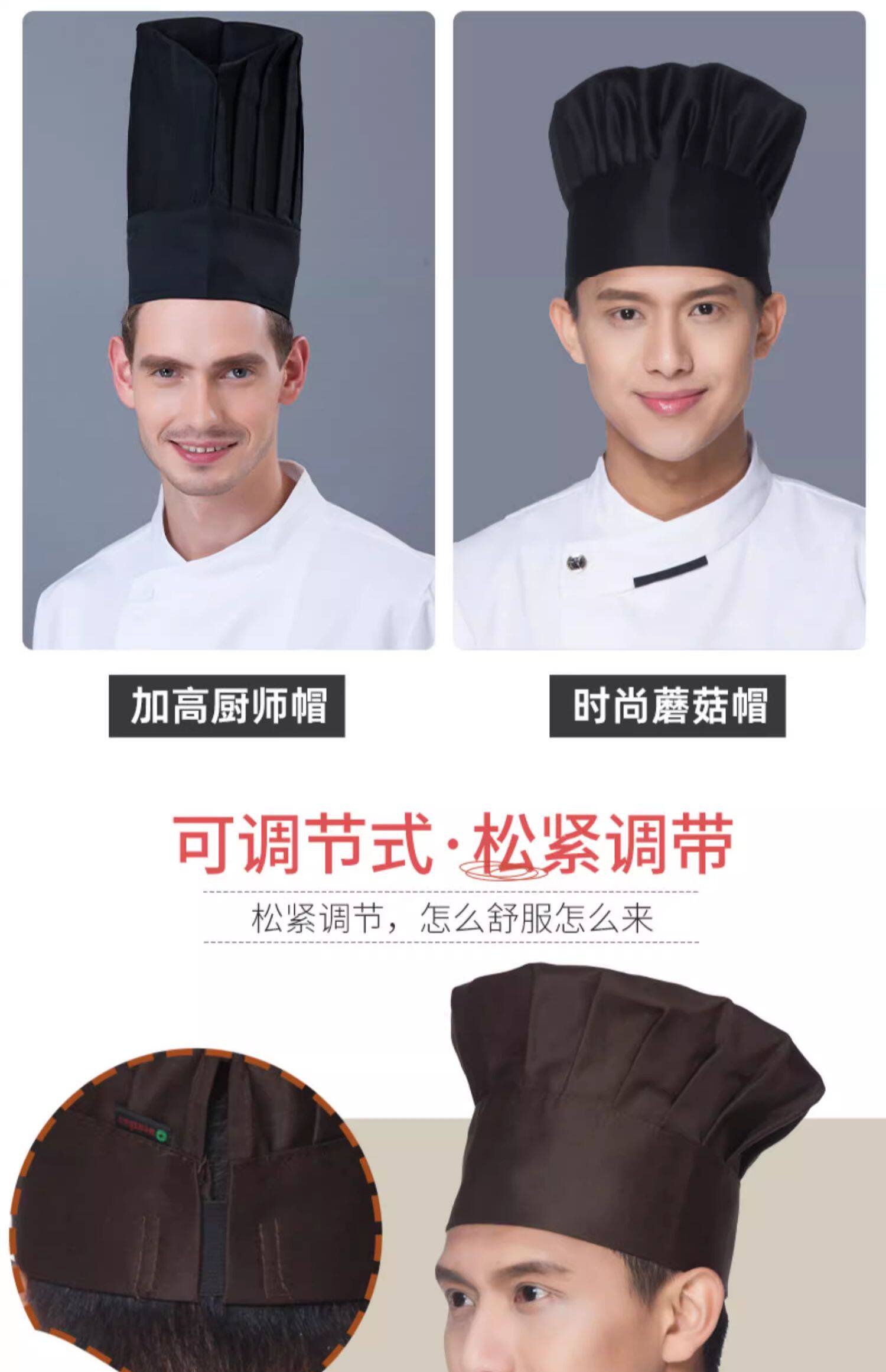 厨师工作帽定制印字餐饮厨房饭酒店食堂工厂专用蘑菇帽高帽logo男