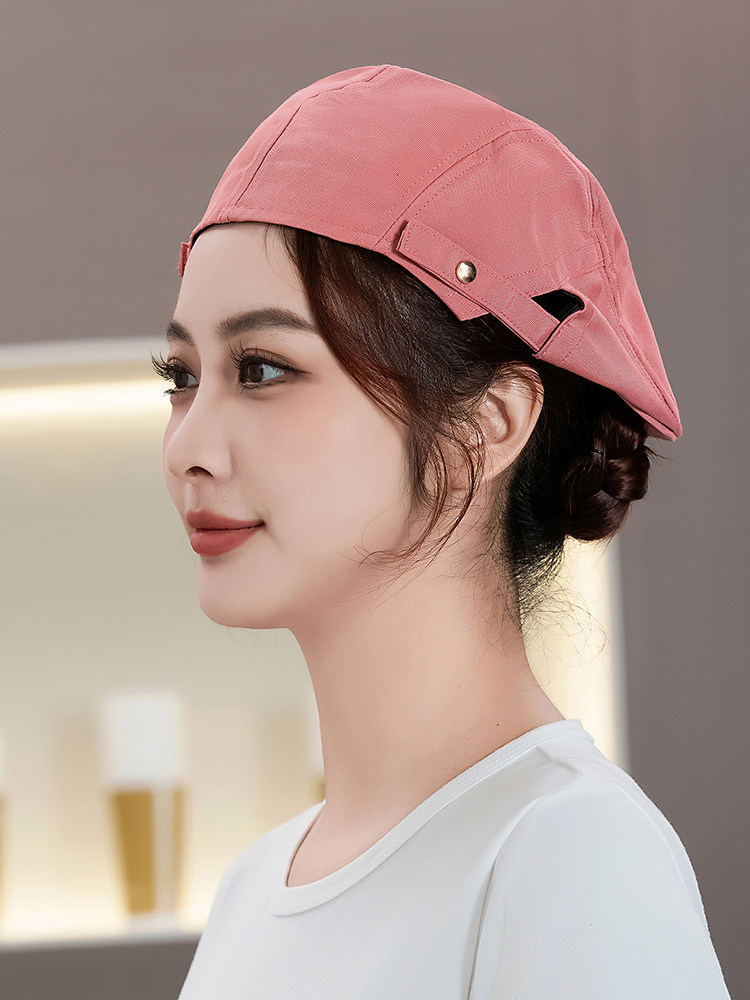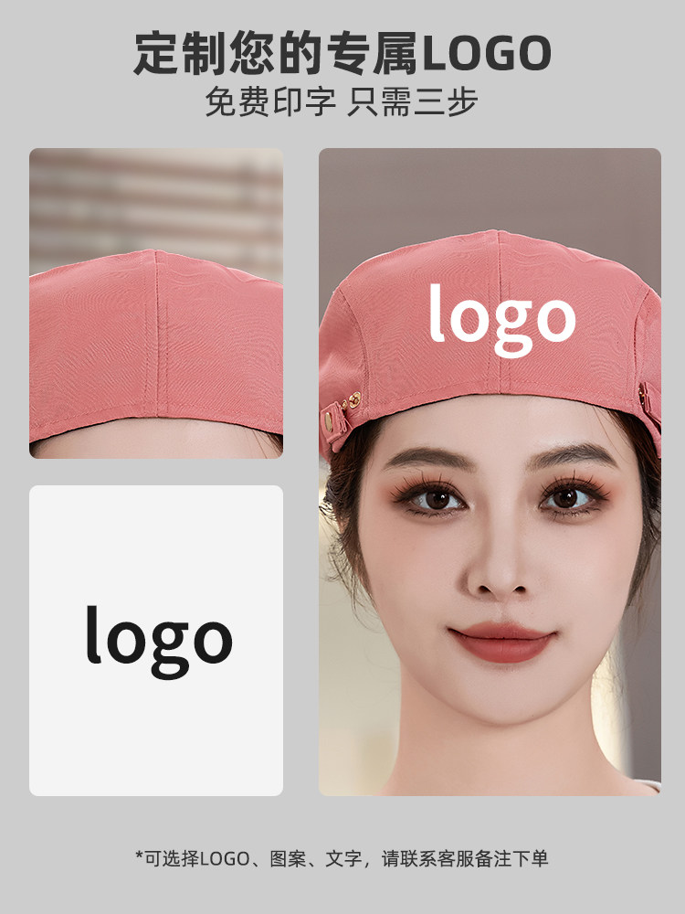 粉色帽子定制logo印字烘焙蛋糕甜品店餐饮专用防掉发工作贝雷帽女
