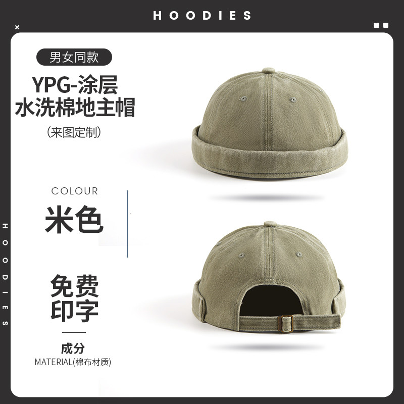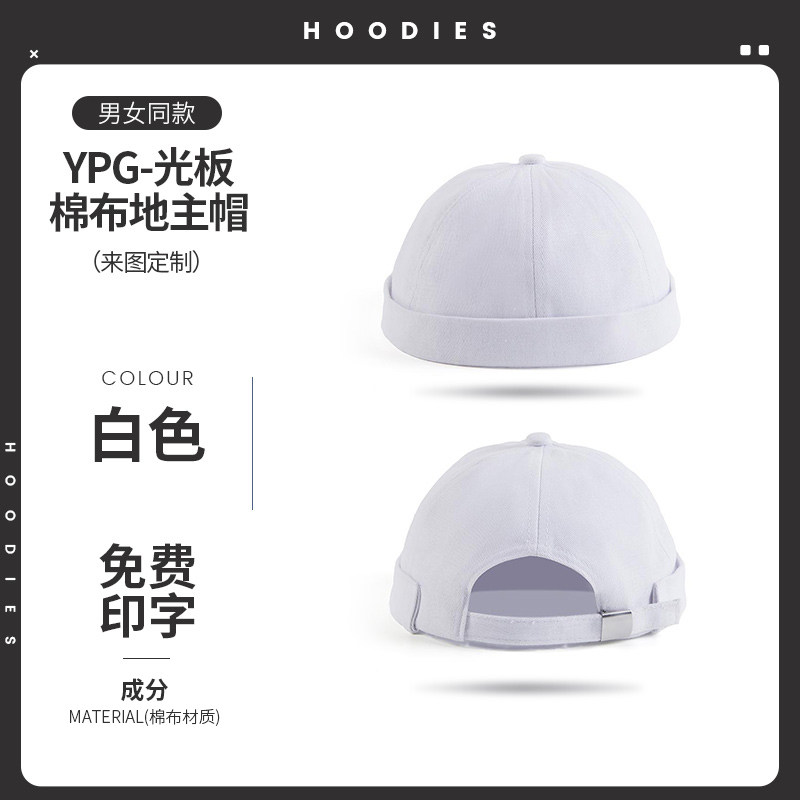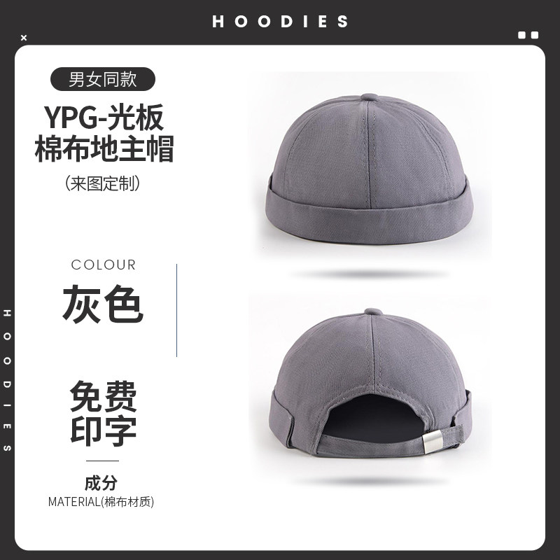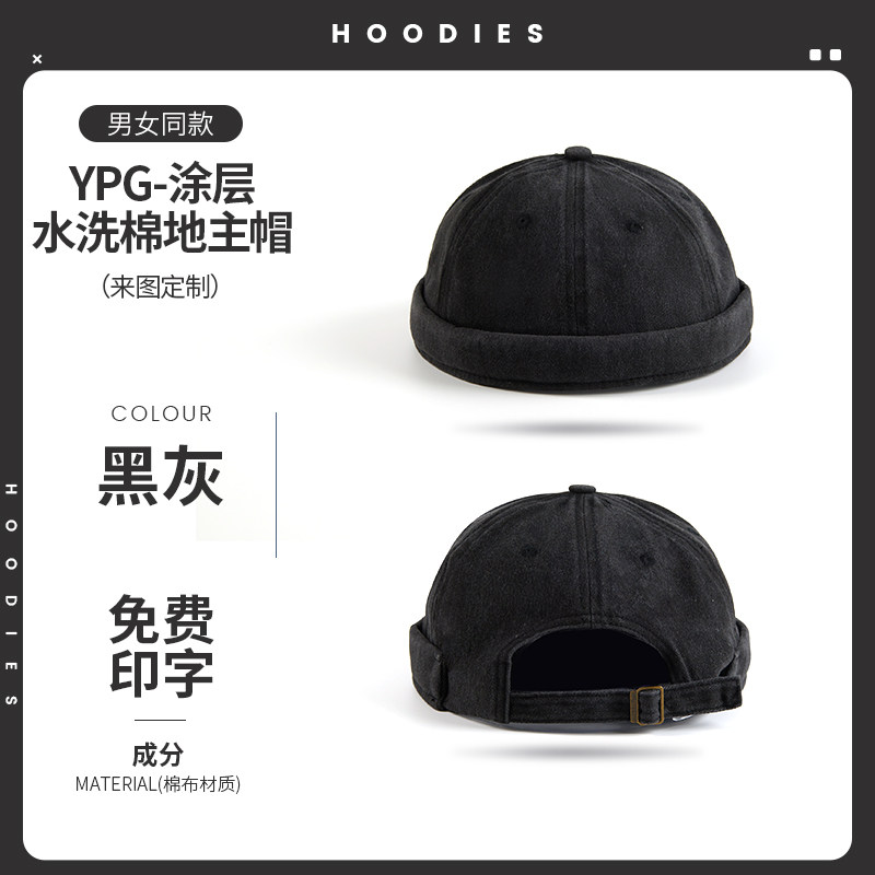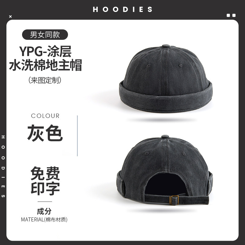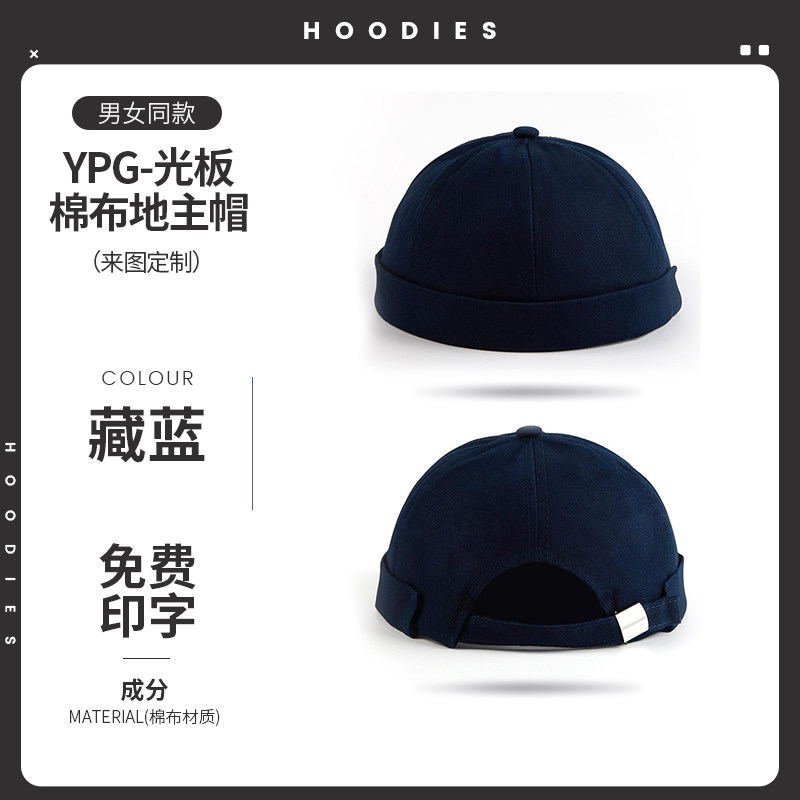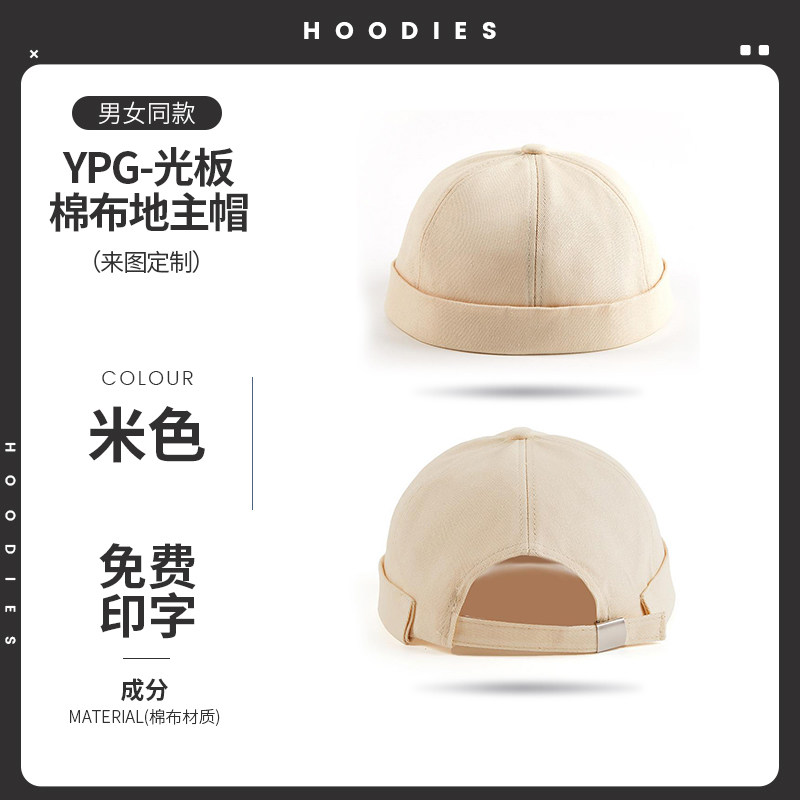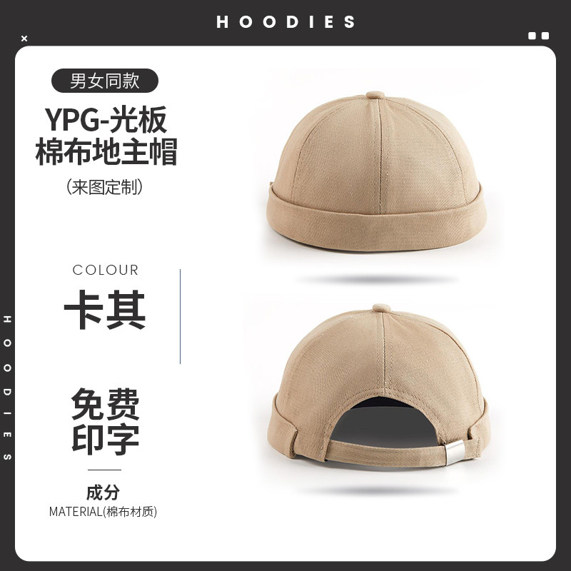 新款雅痞瓜皮地主帽子定制logo印字纯棉圆顶无檐嘻哈工作帽刺绣男