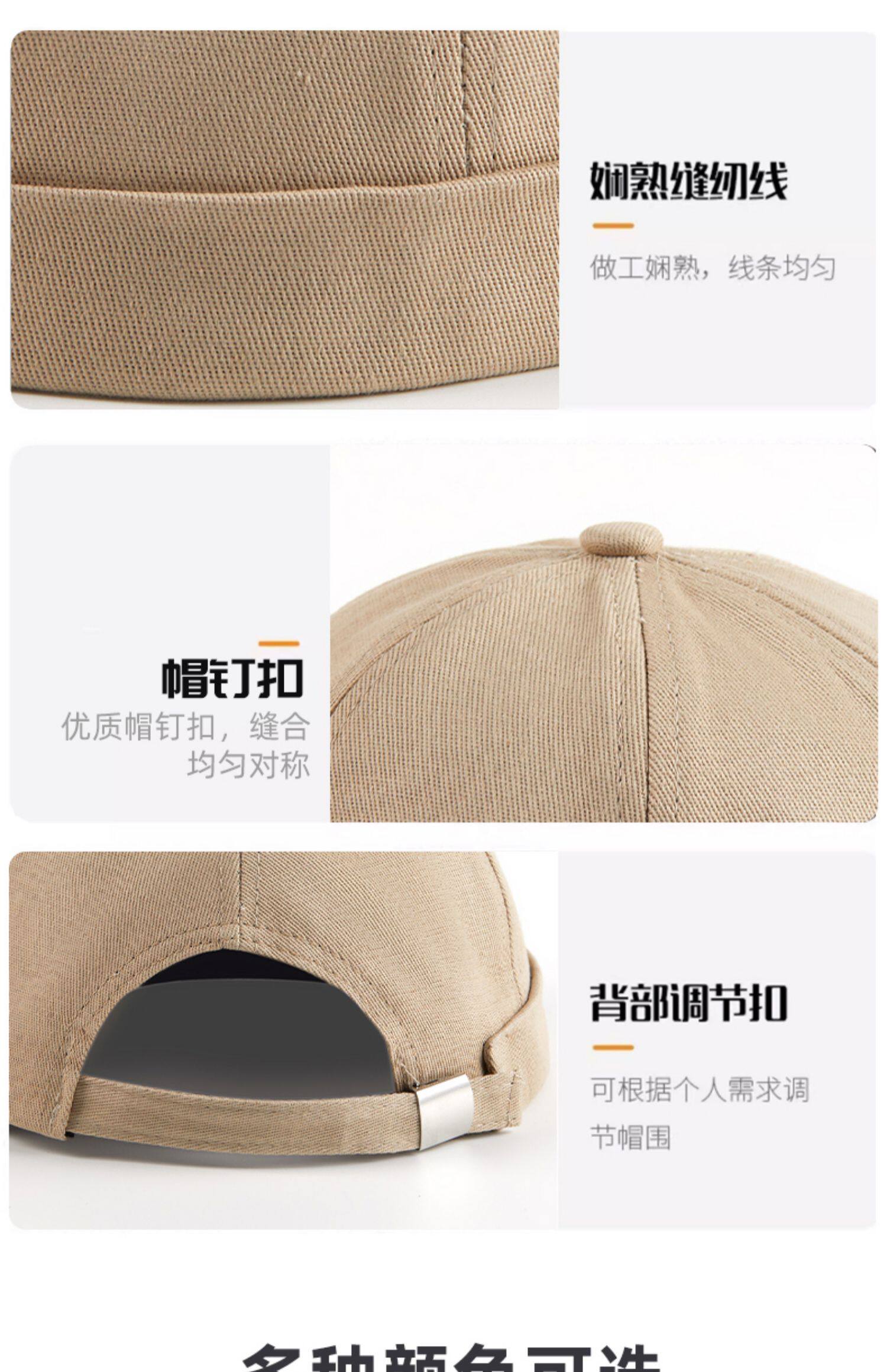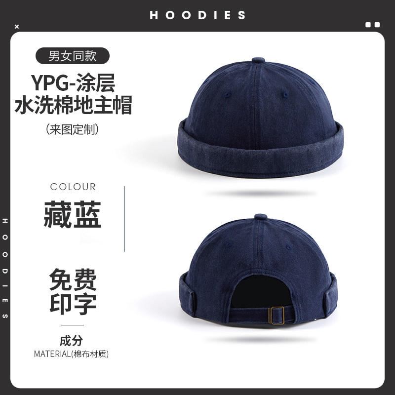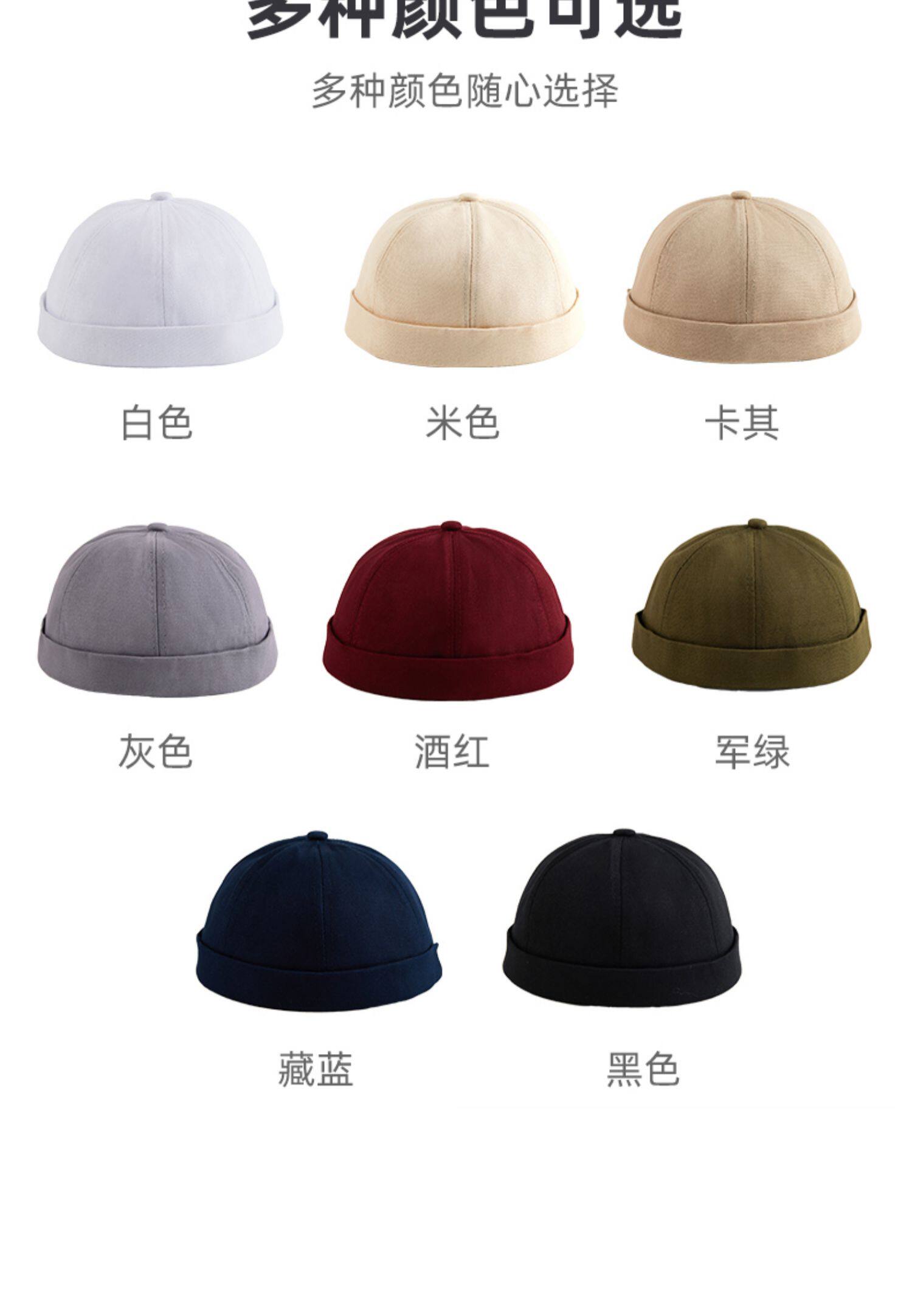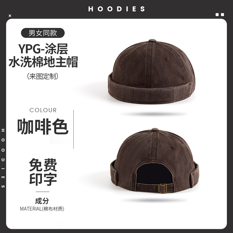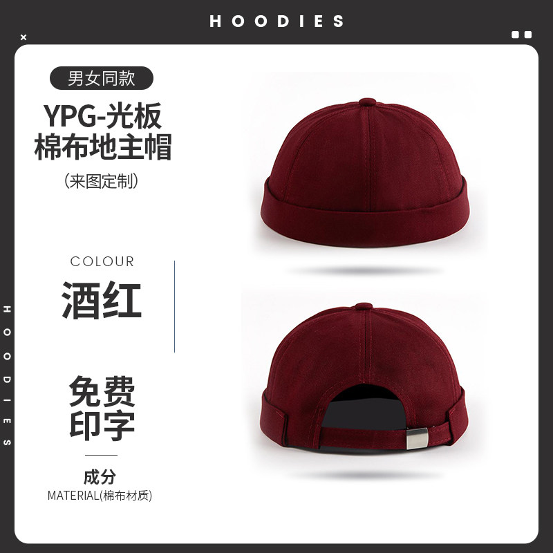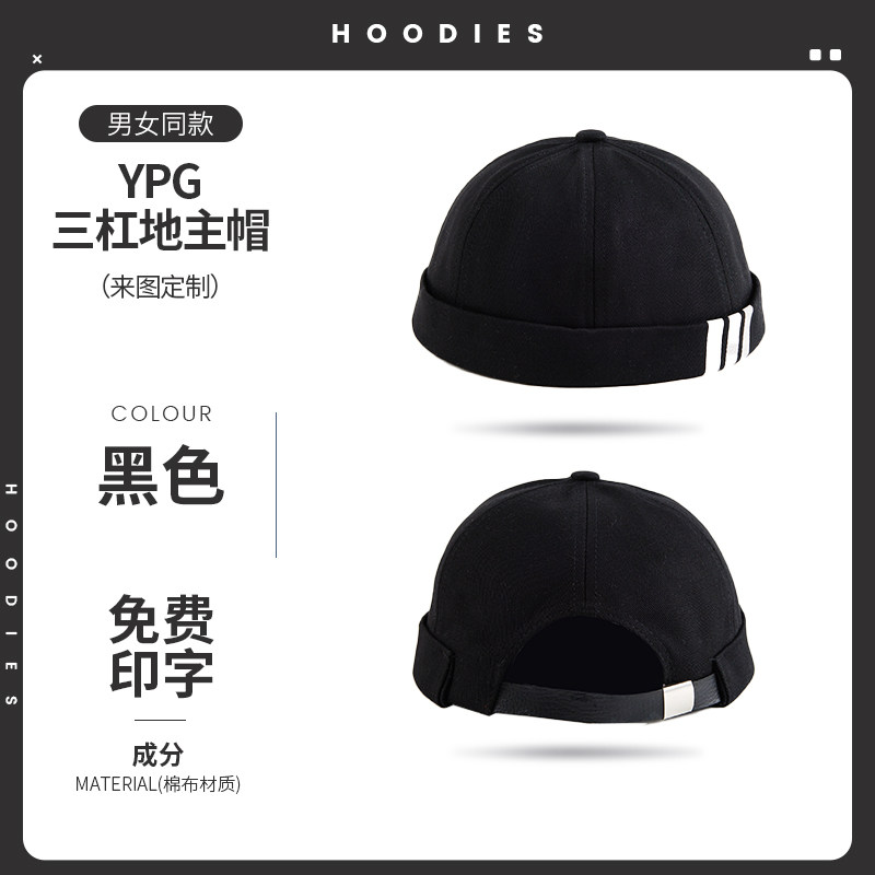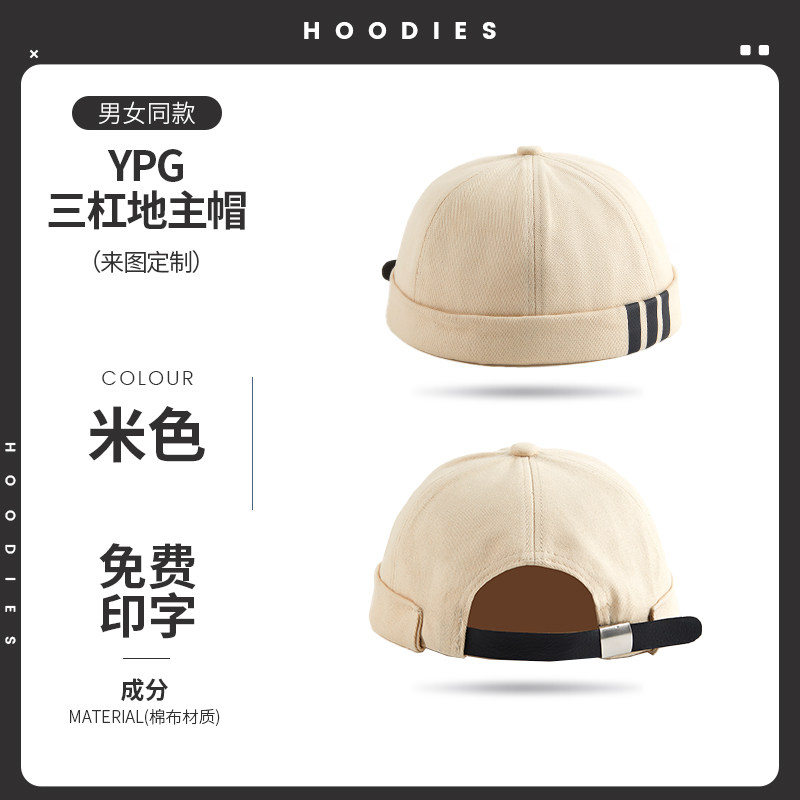 新款雅痞瓜皮地主帽子定制logo印字纯棉圆顶无檐嘻哈工作帽刺绣男