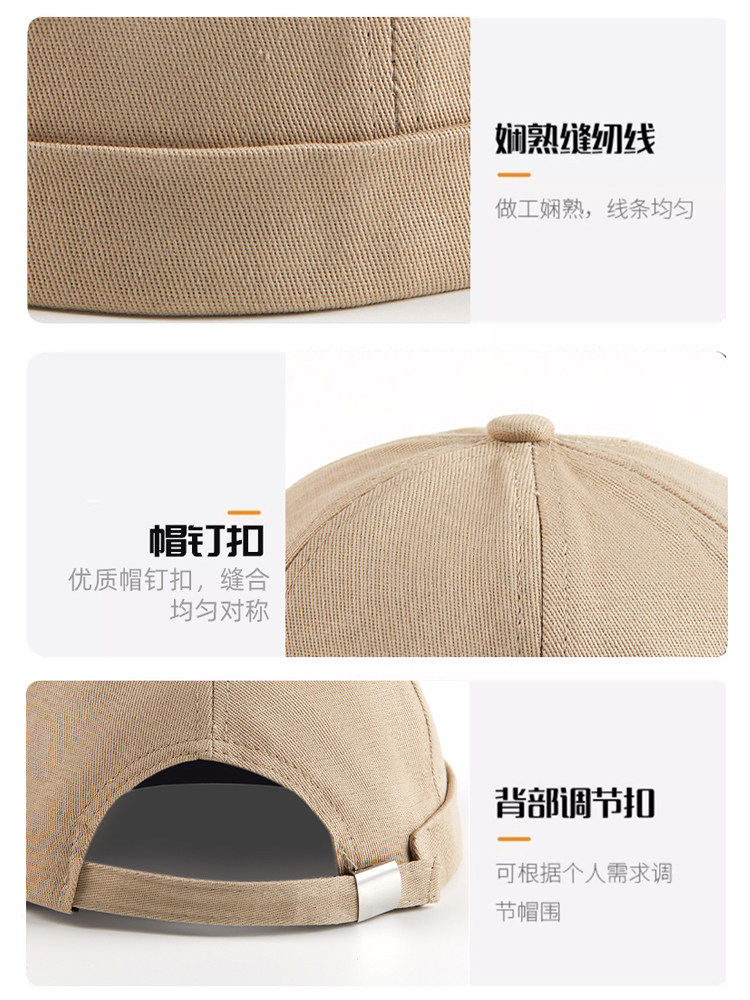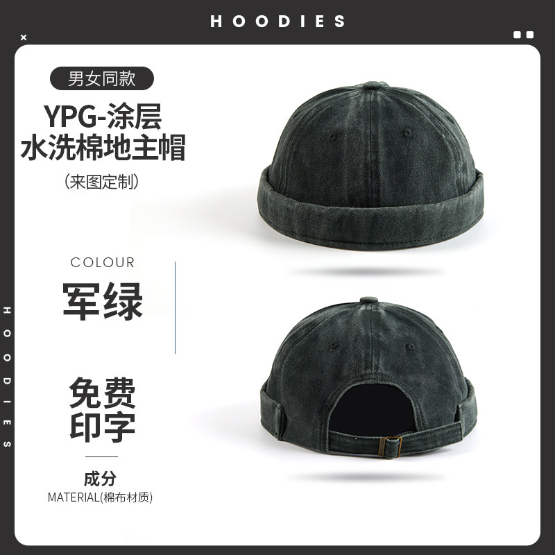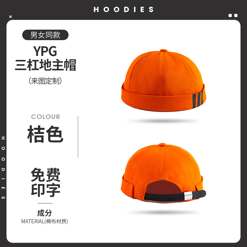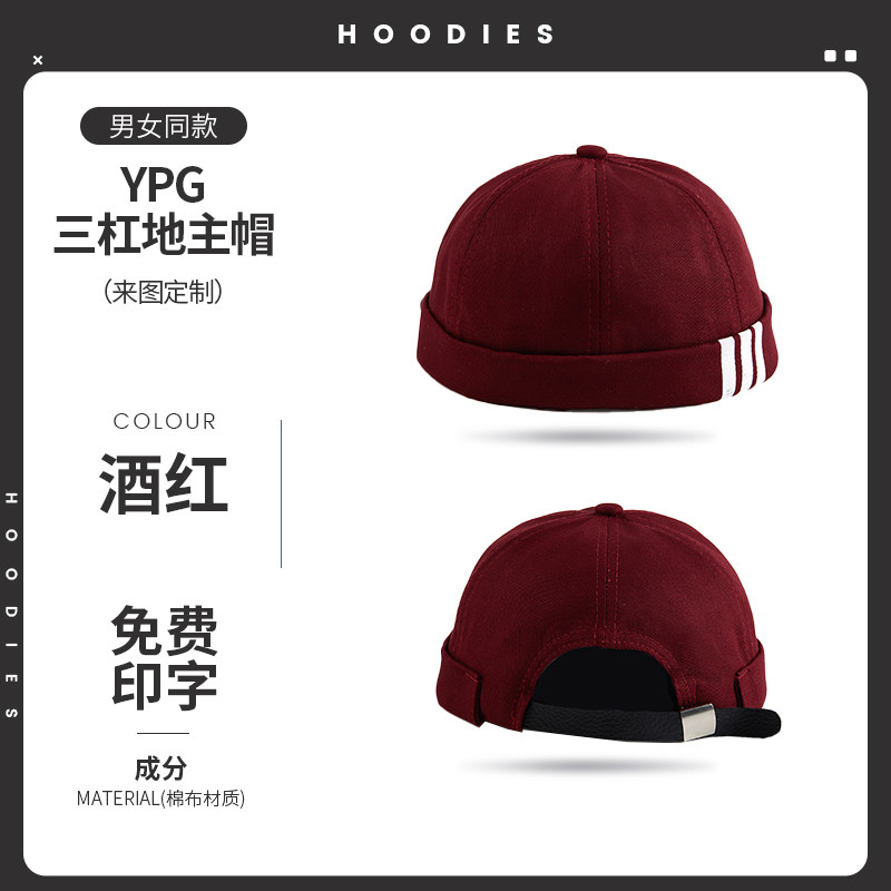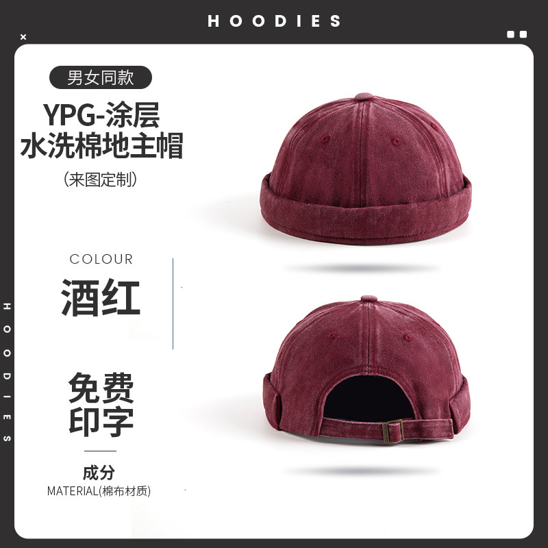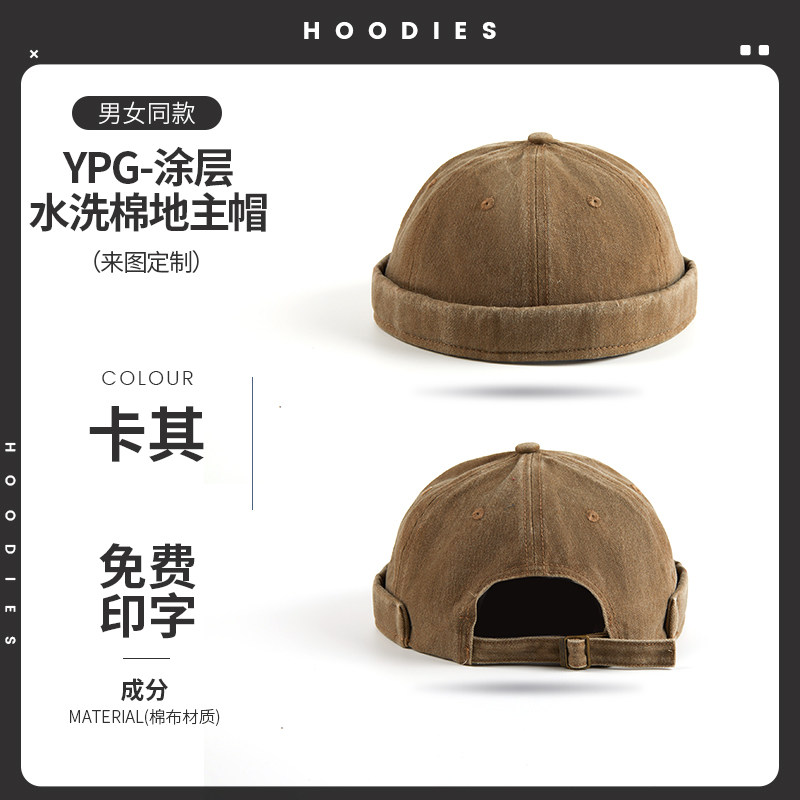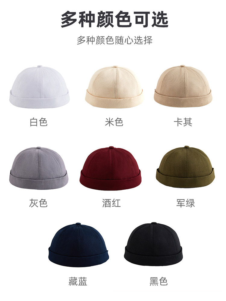 新款雅痞瓜皮地主帽子定制logo印字纯棉圆顶无檐嘻哈工作帽刺绣男