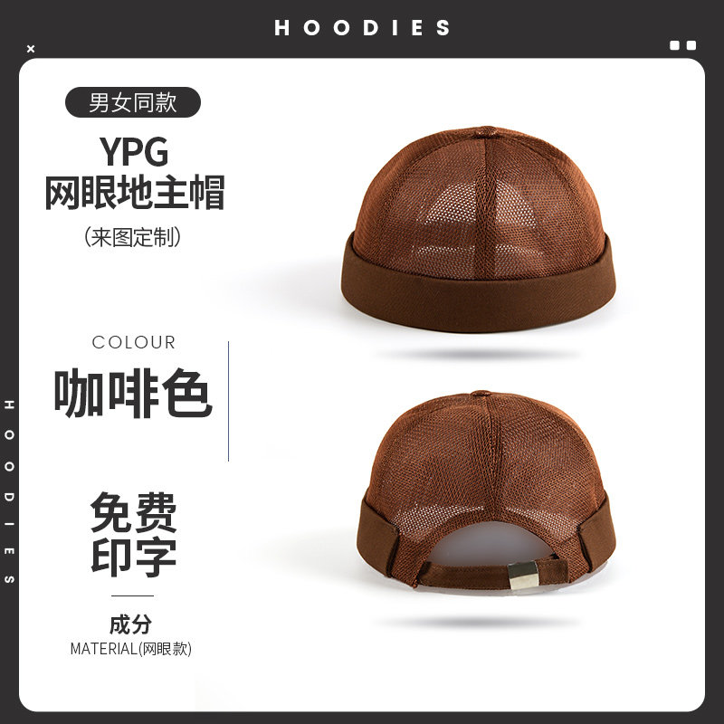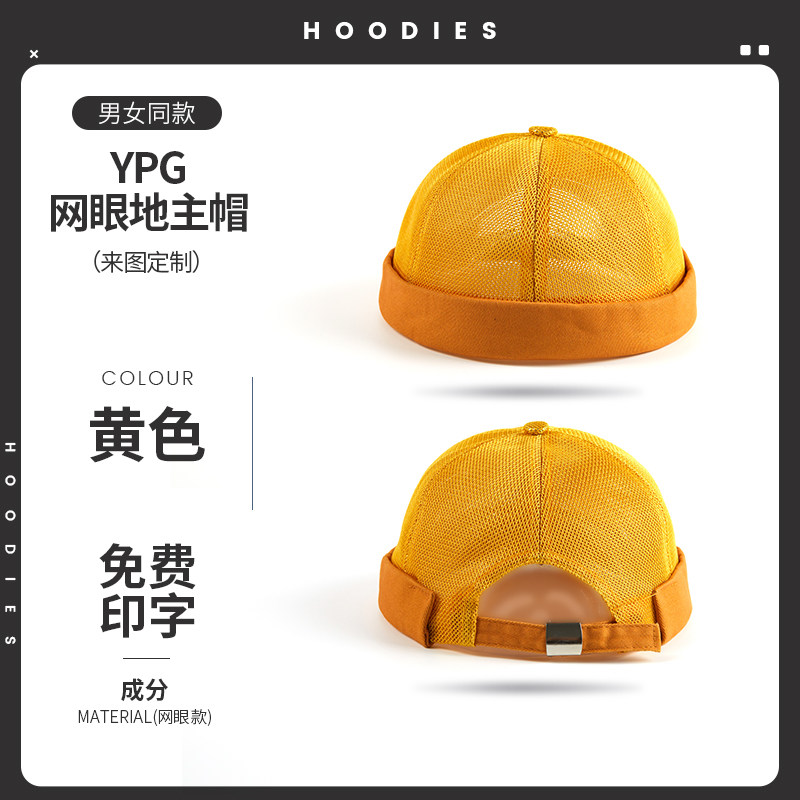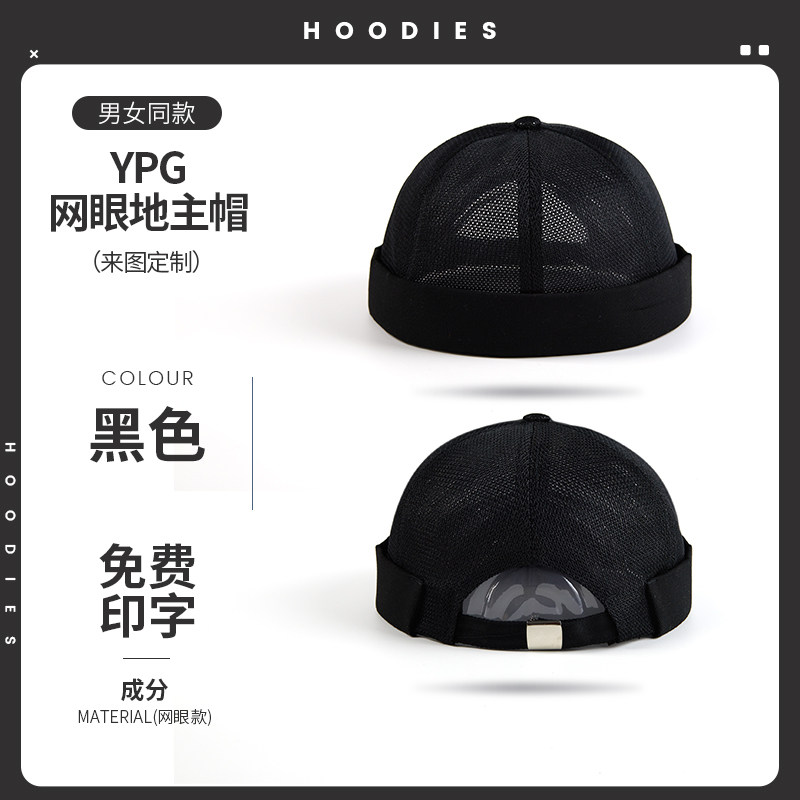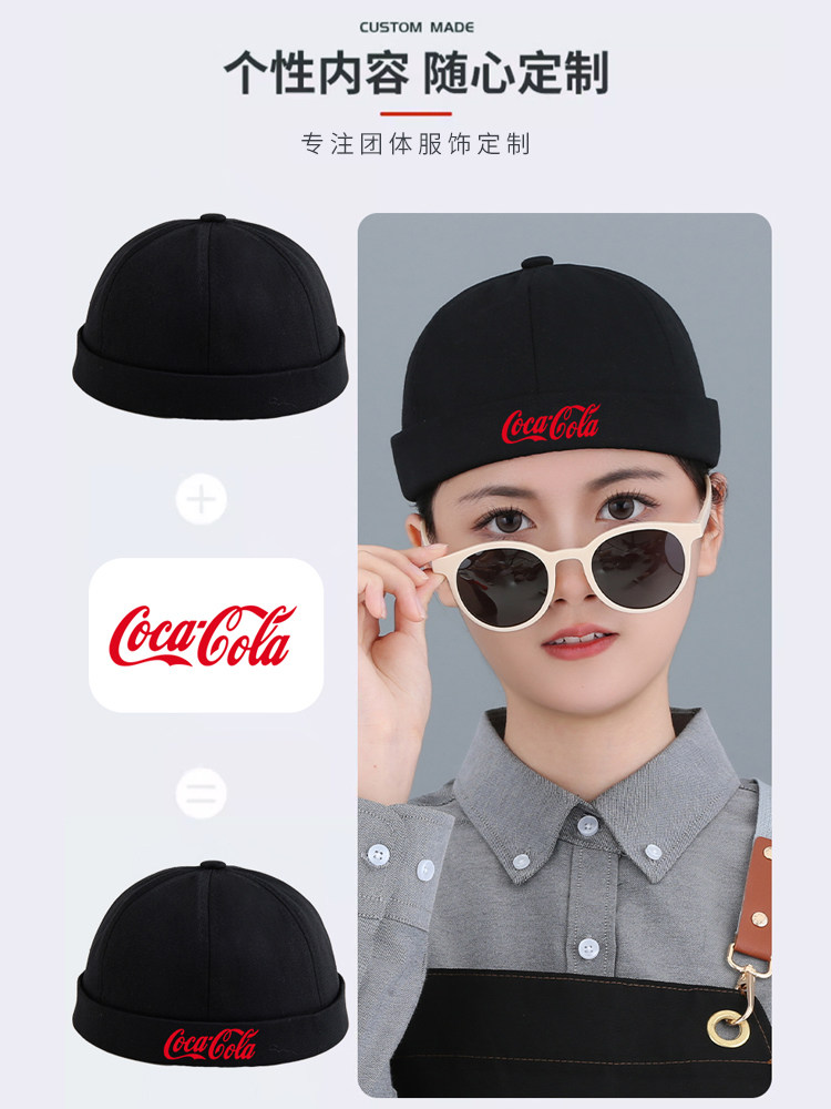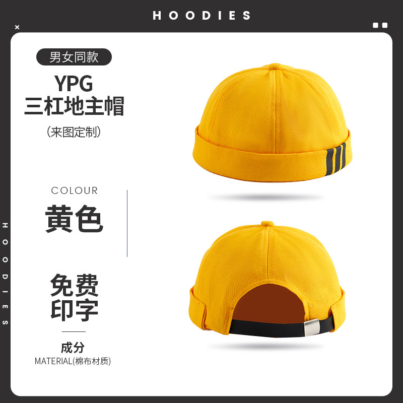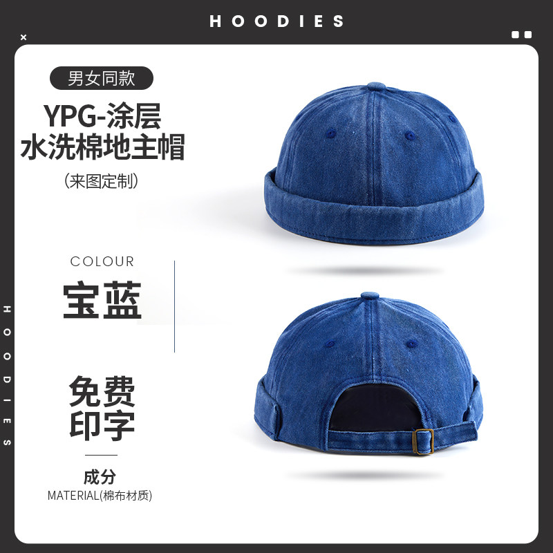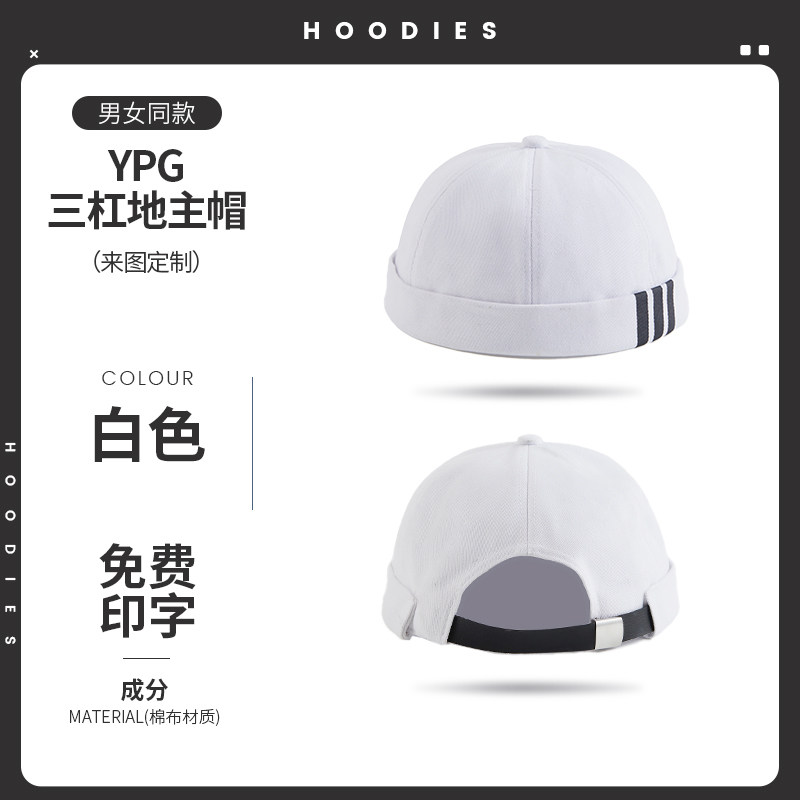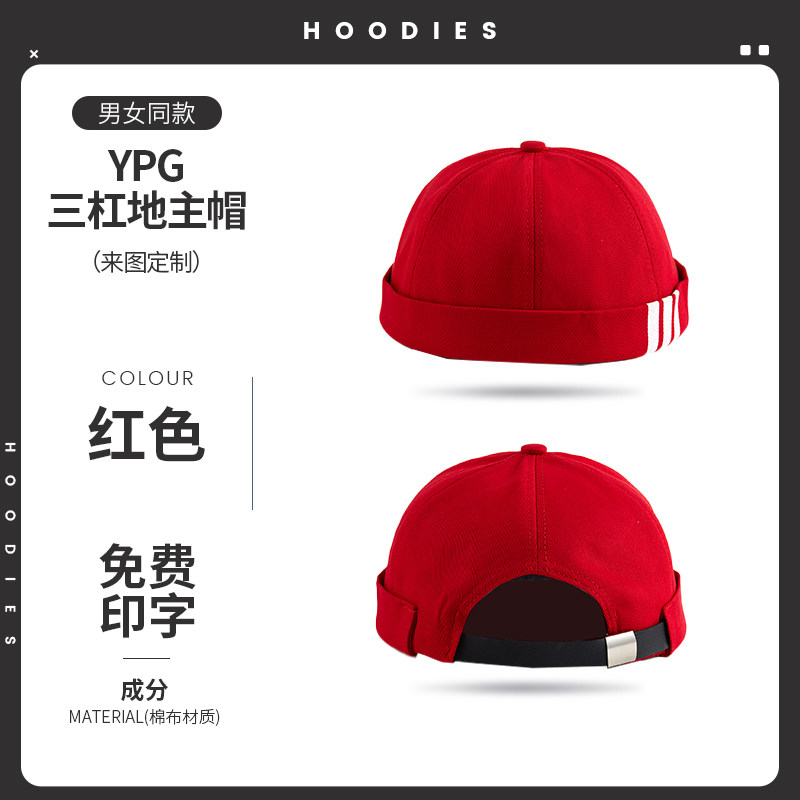 新款雅痞瓜皮地主帽子定制logo印字纯棉圆顶无檐嘻哈工作帽刺绣男