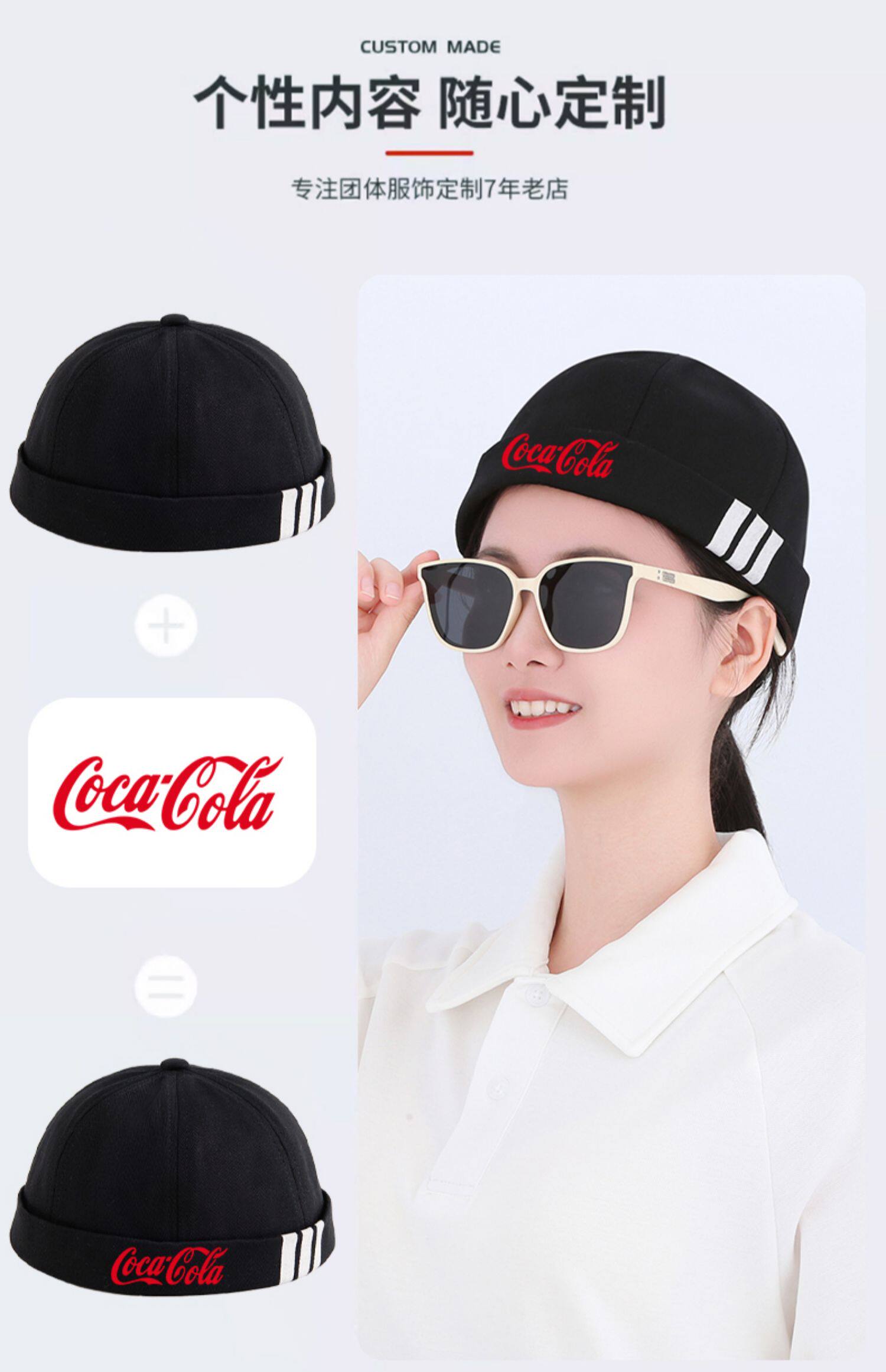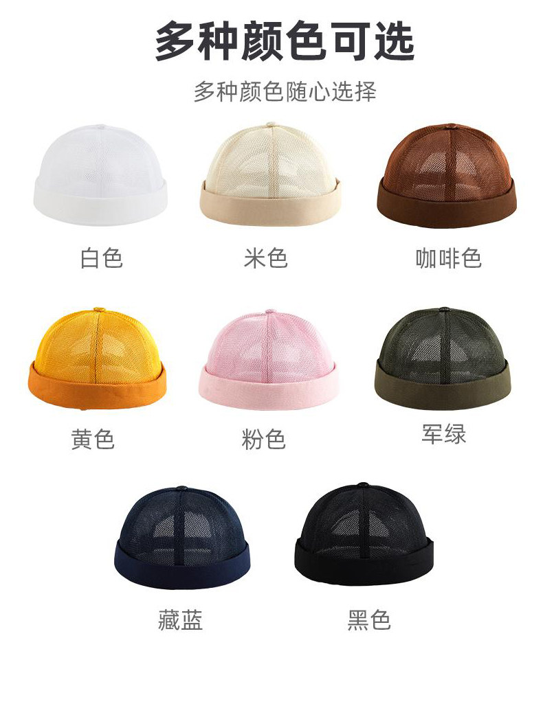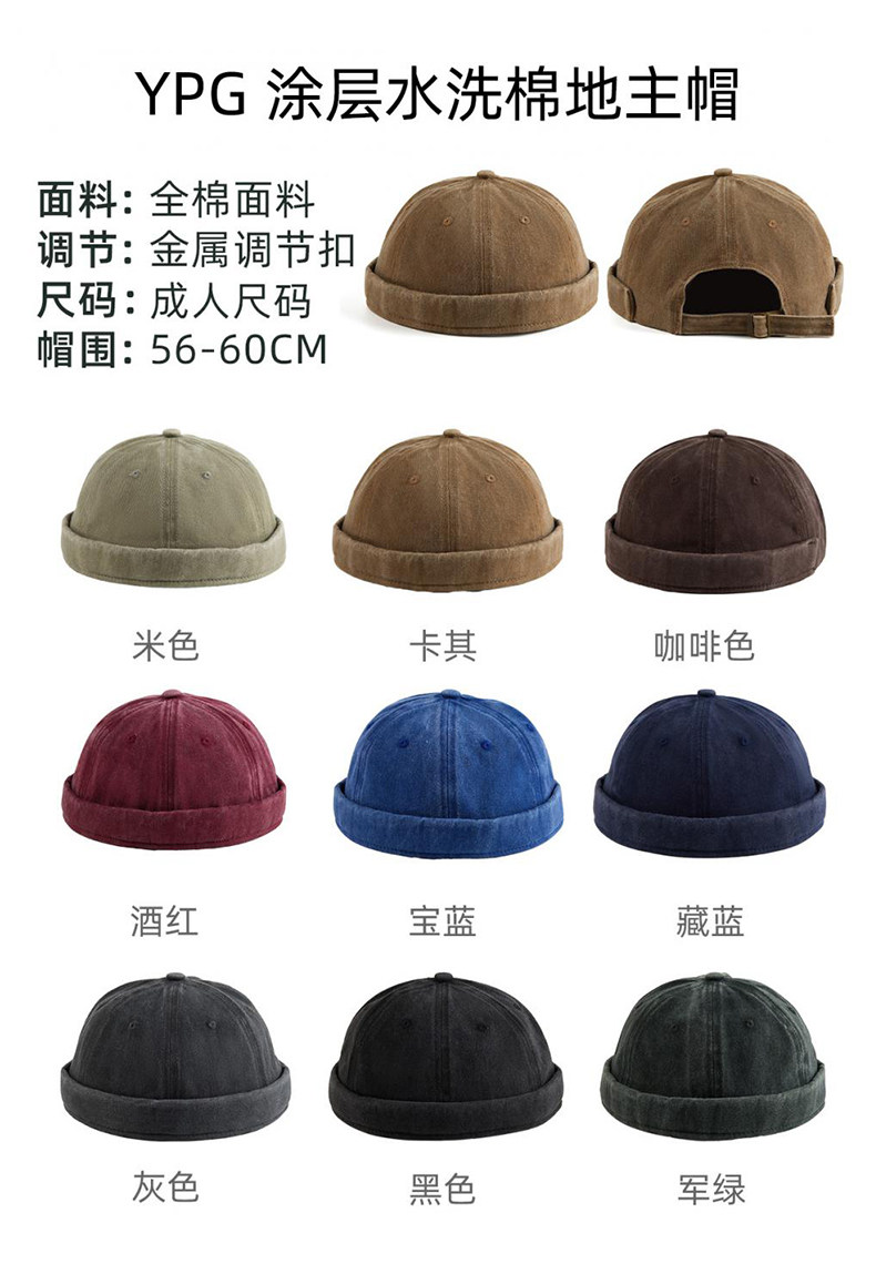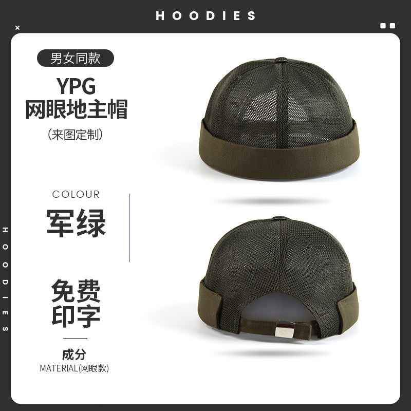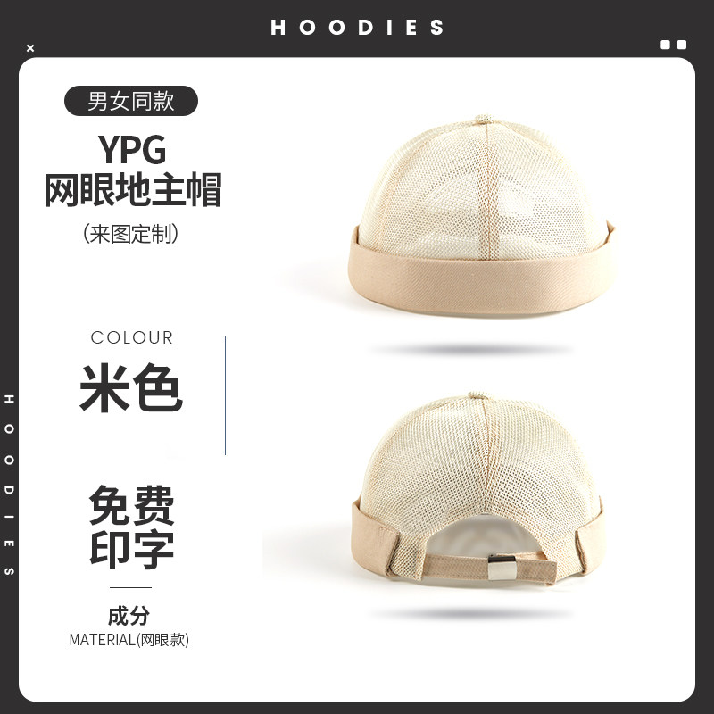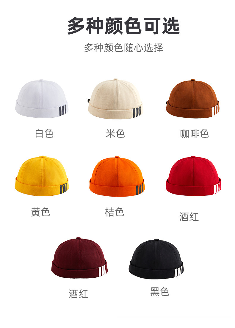 新款雅痞瓜皮地主帽子定制logo印字纯棉圆顶无檐嘻哈工作帽刺绣男