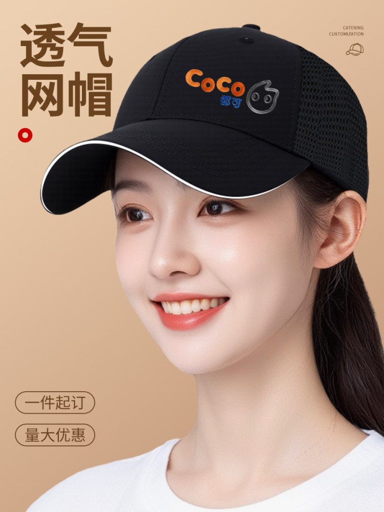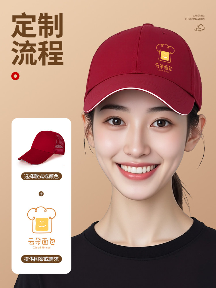 网眼透气棒球帽子定制logo印字餐饮专用奶茶店小吃摊防掉发鸭舌帽