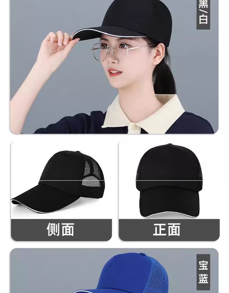 黑色网眼棒球帽定制logo印字刺绣餐饮奶茶火锅店员广告工作鸭舌帽