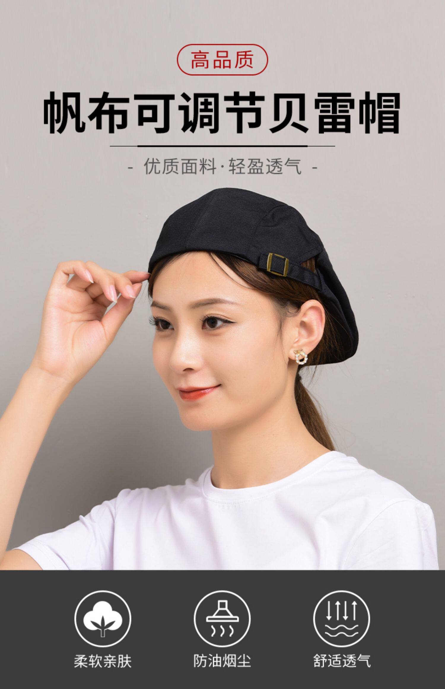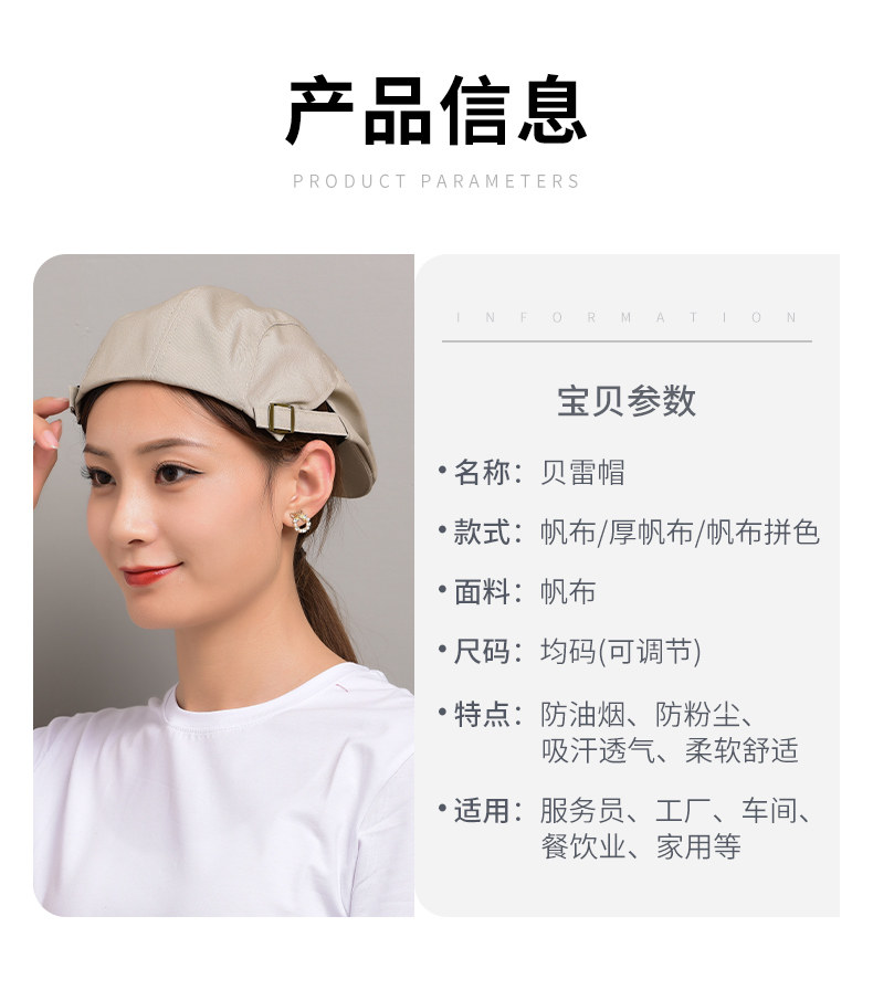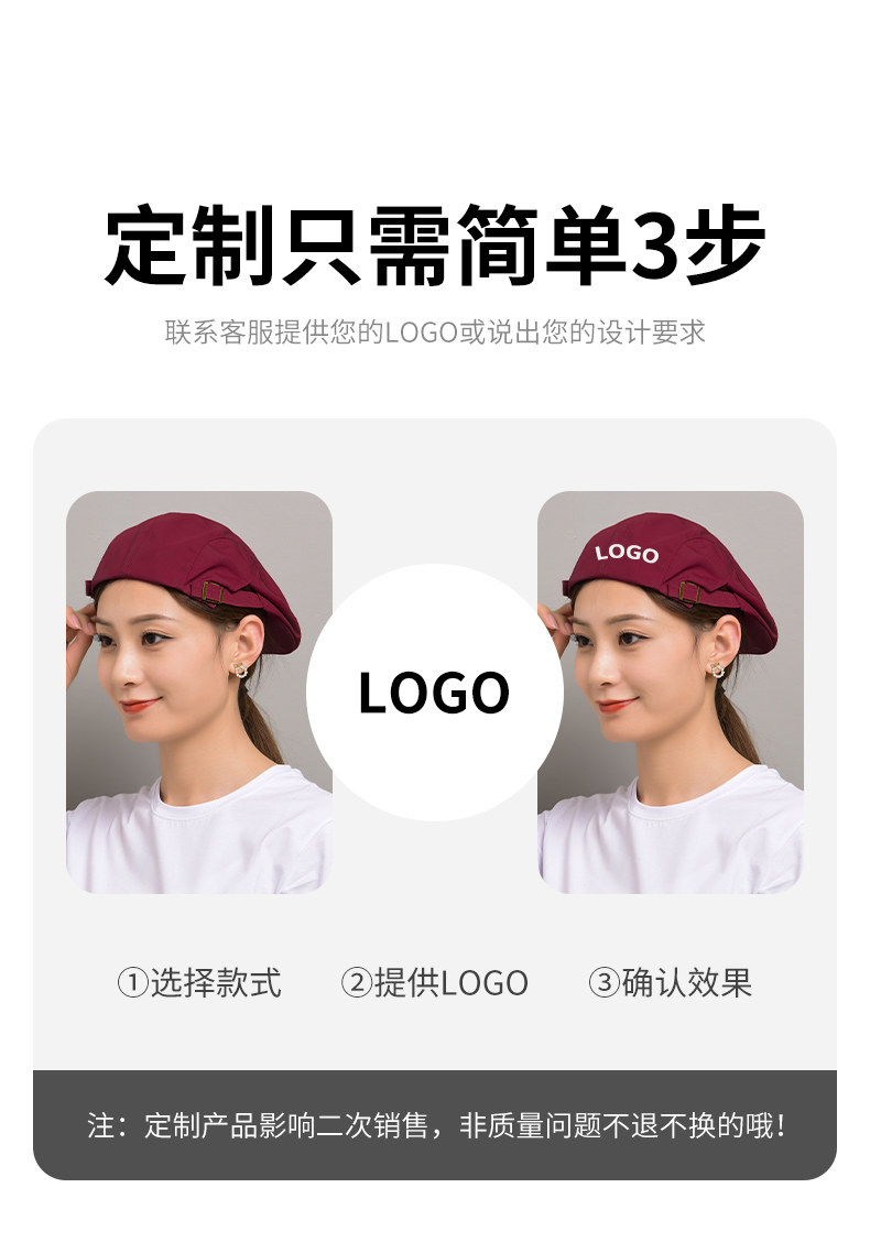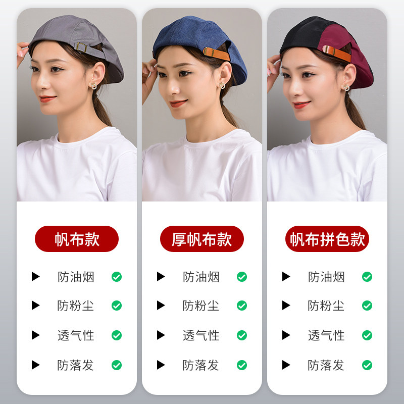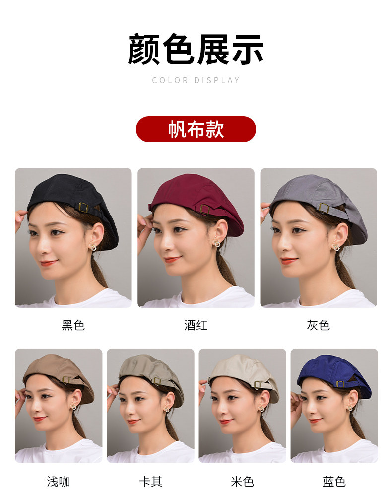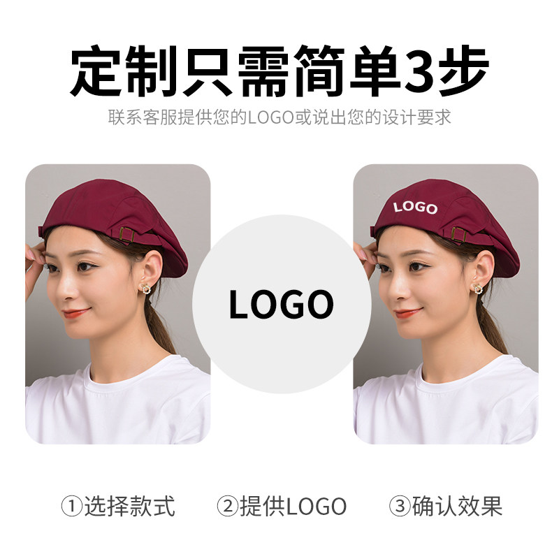 定制帆布餐饮工作帽女餐厅烘焙奶茶咖啡厅甜品烧烤店贝雷帽服务员