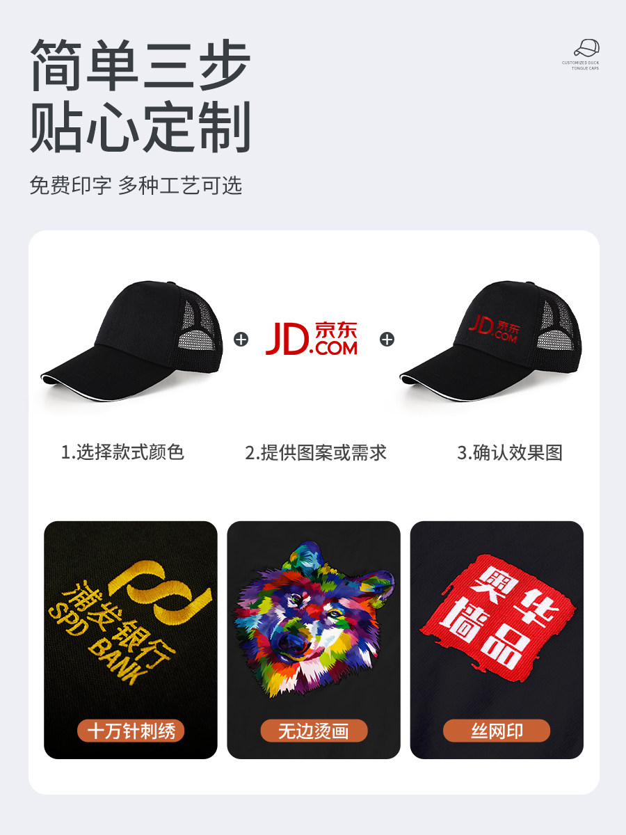 餐饮专用帽子定制logo印字工作帽奶茶店饭店服务员团建棒球鸭舌帽