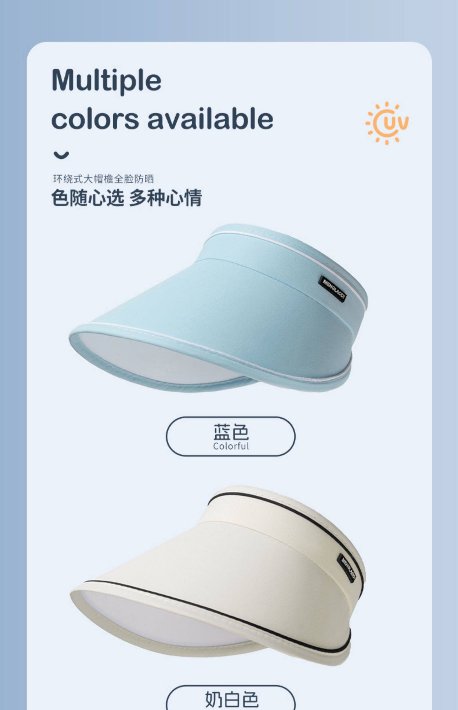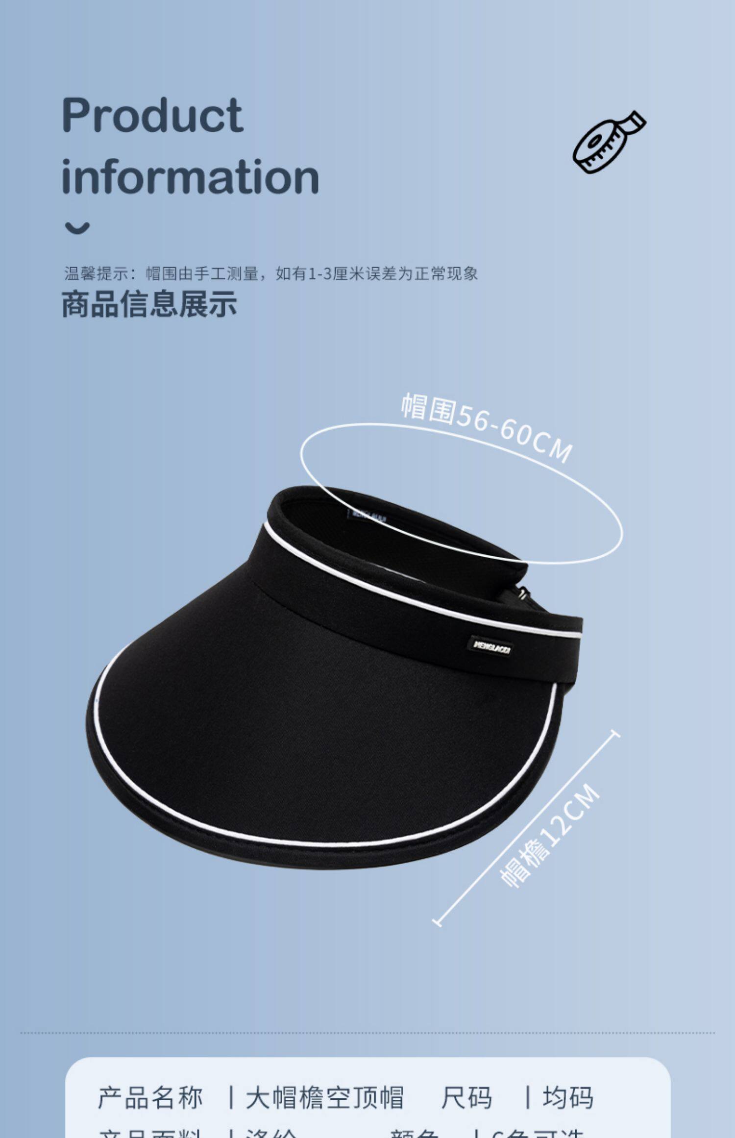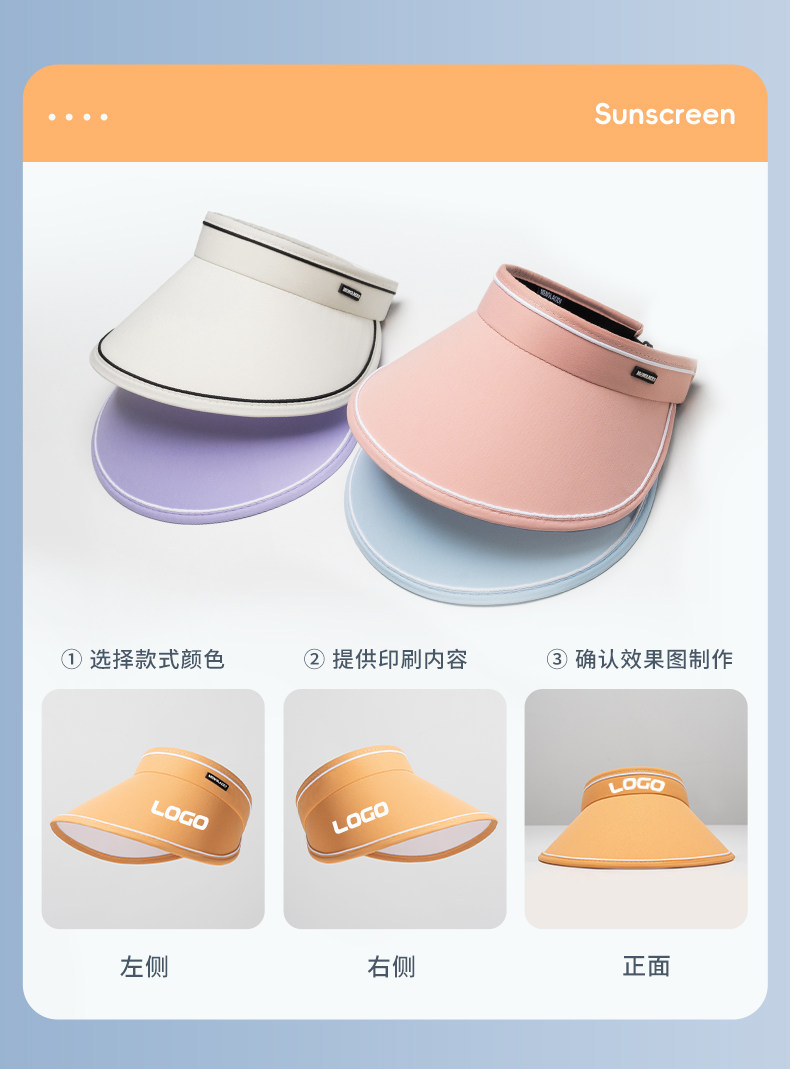 防晒大檐空顶帽子定制印logo夏季出游遮阳帽可折叠户外运动太阳帽
