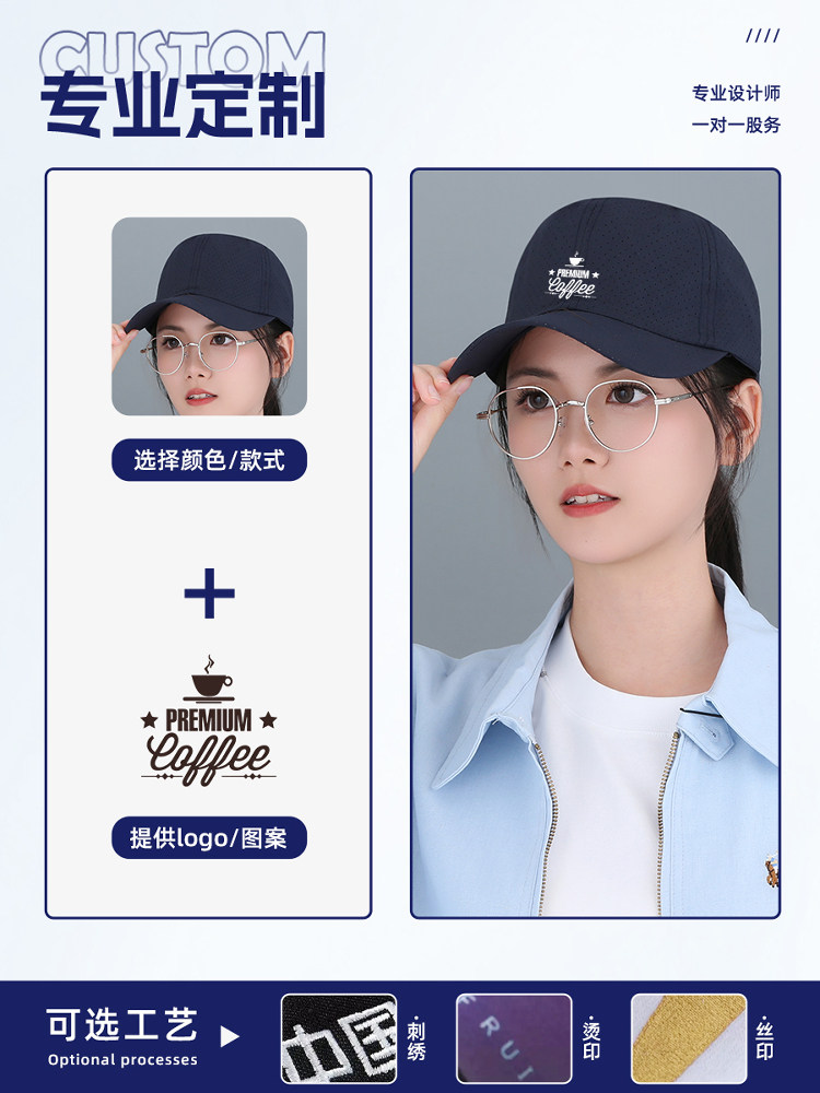 网眼速干帽子定制logo印字餐饮专用咖啡奶茶店服务员鸭舌棒球帽夏