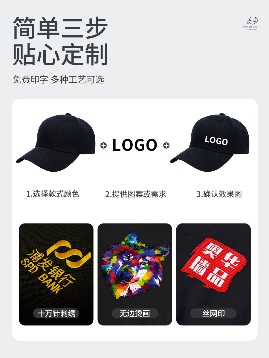 工作帽子定制logo印字餐饮专用咖啡奶茶店服务员大头围鸭舌棒球帽